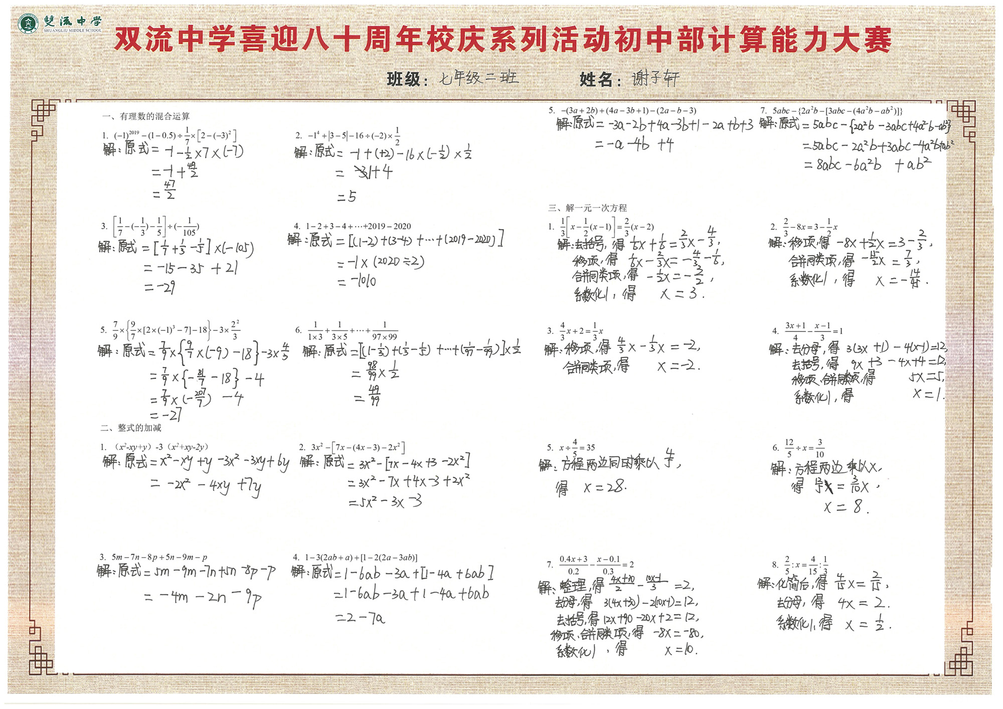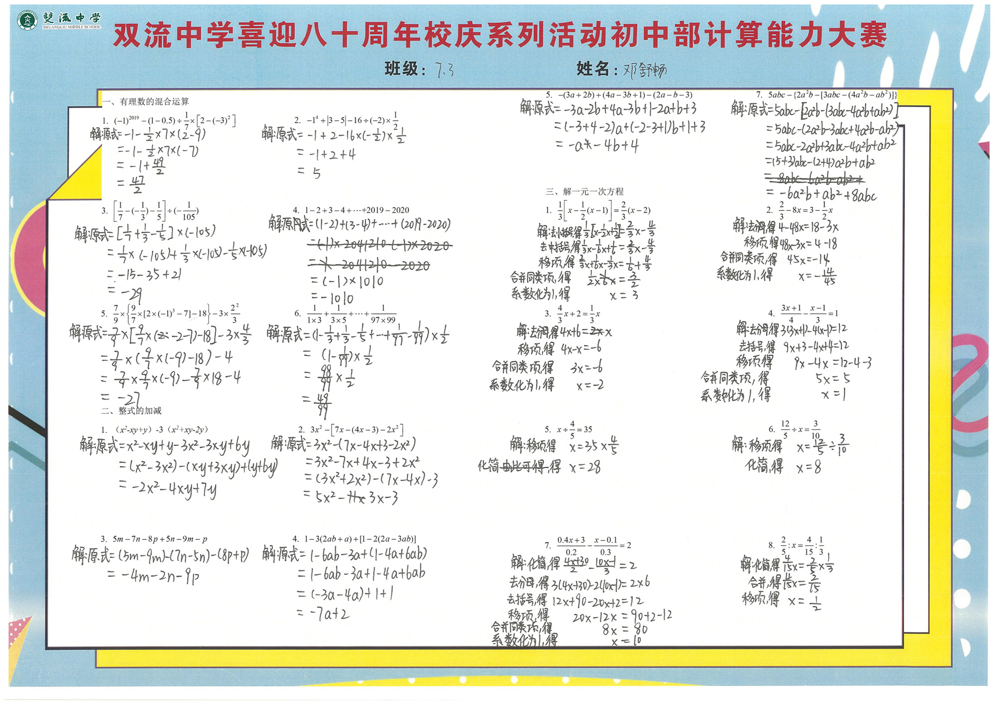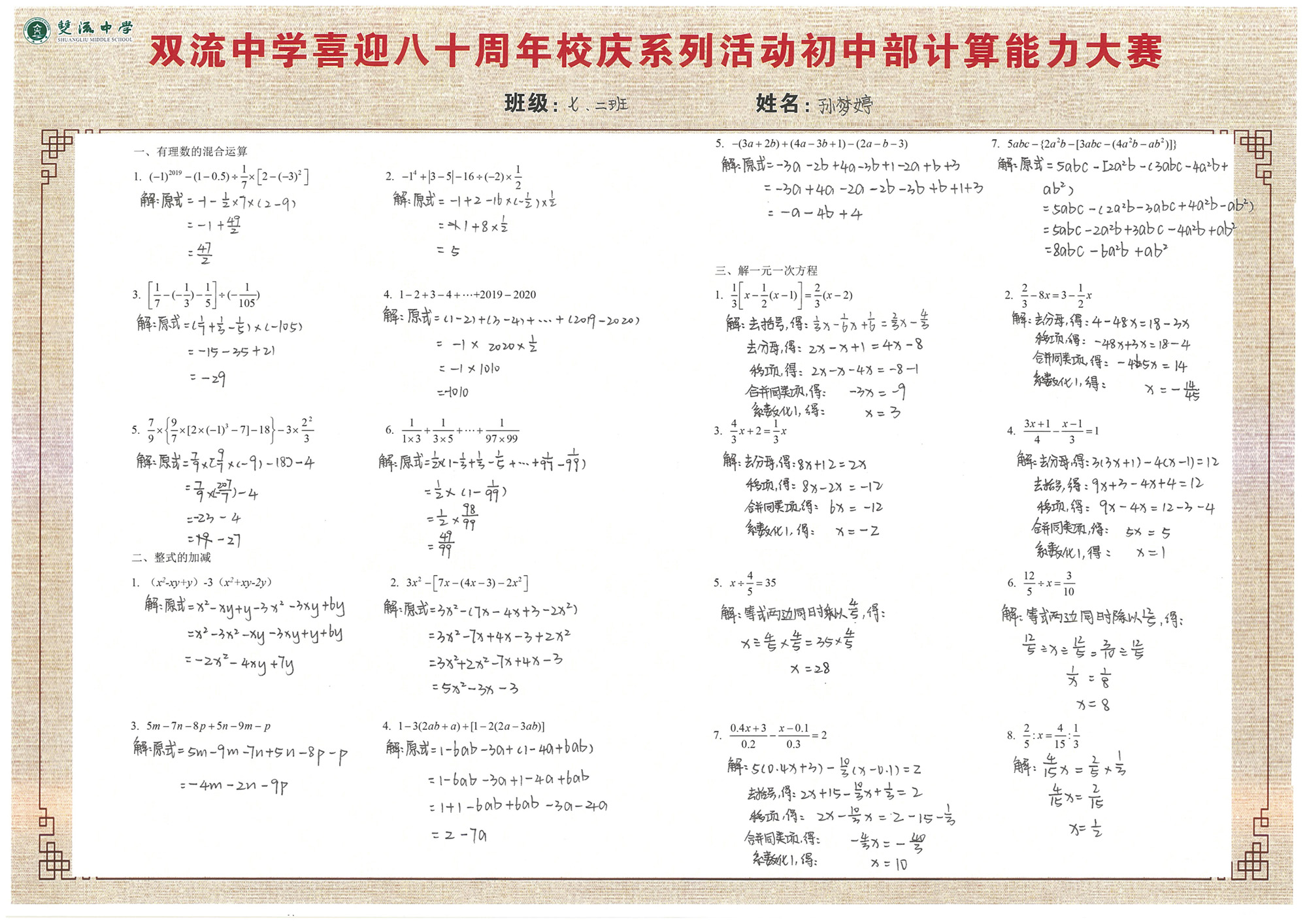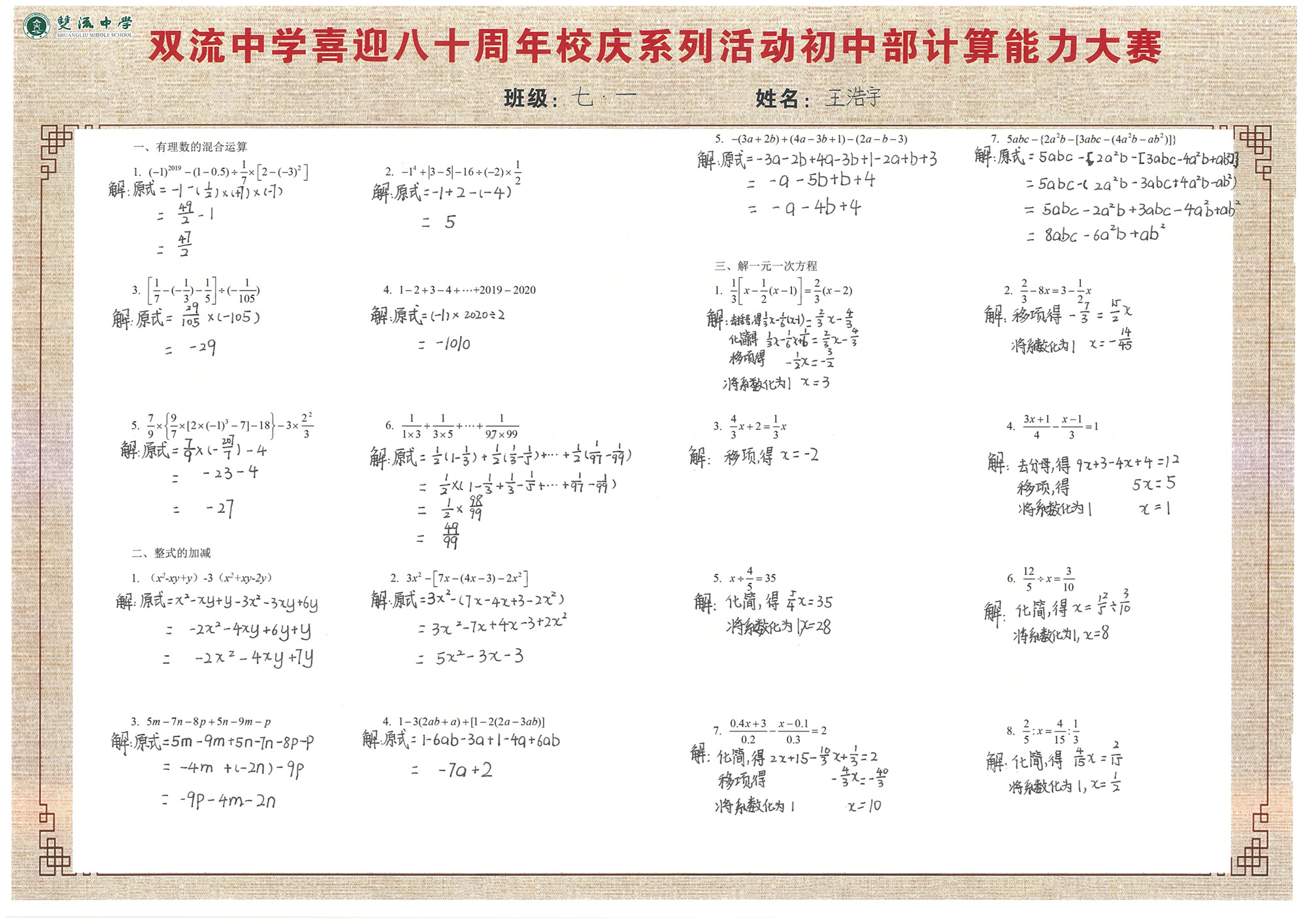 ——雙流中學(xué)初中部數(shù)學(xué)計算大賽