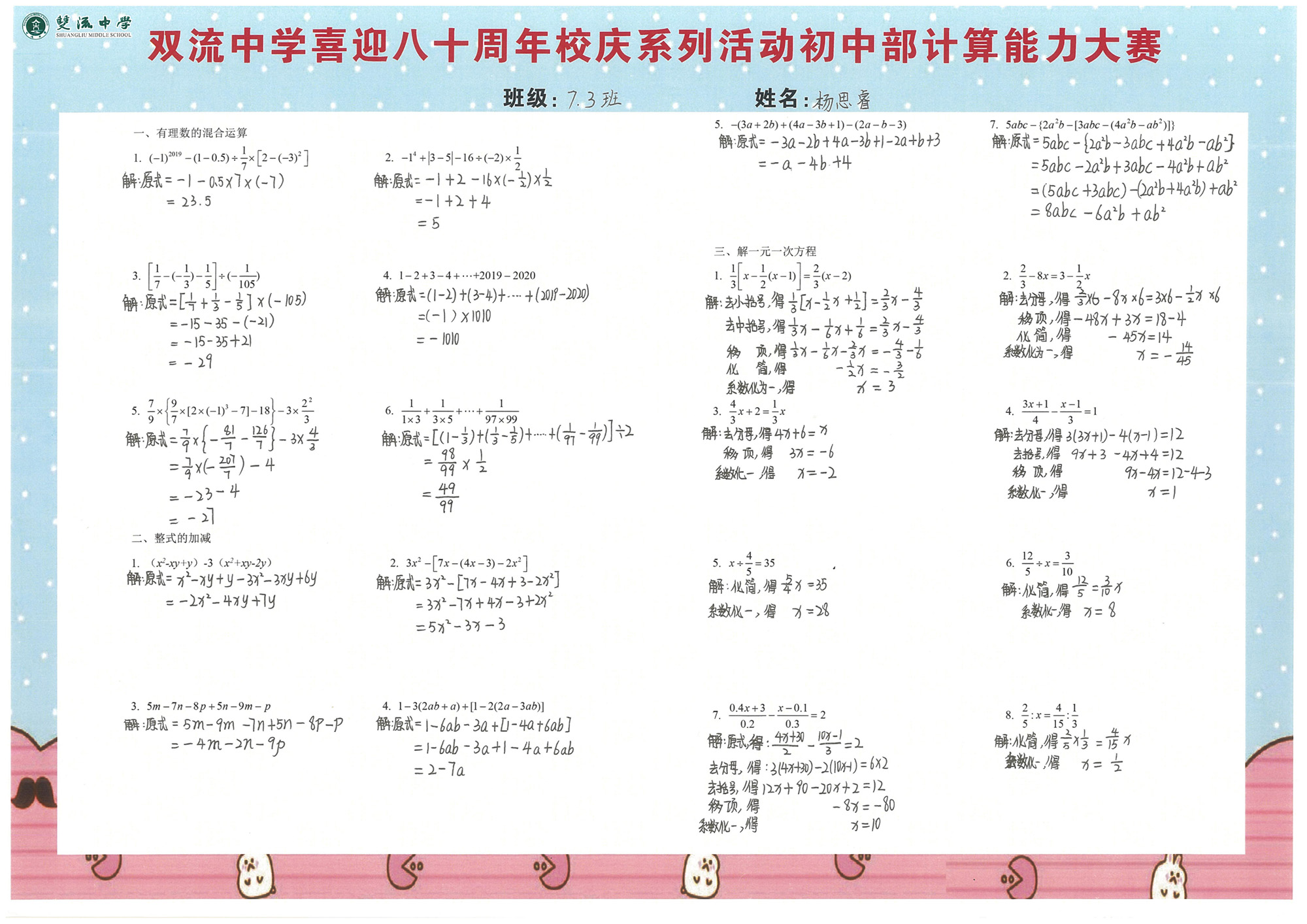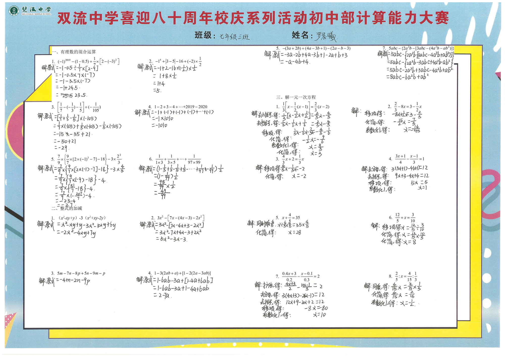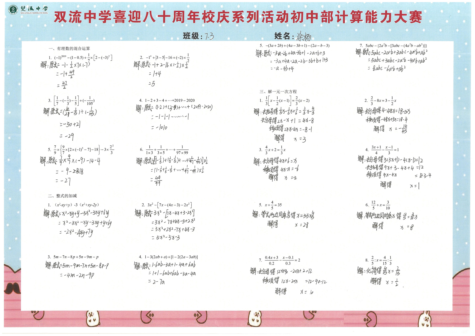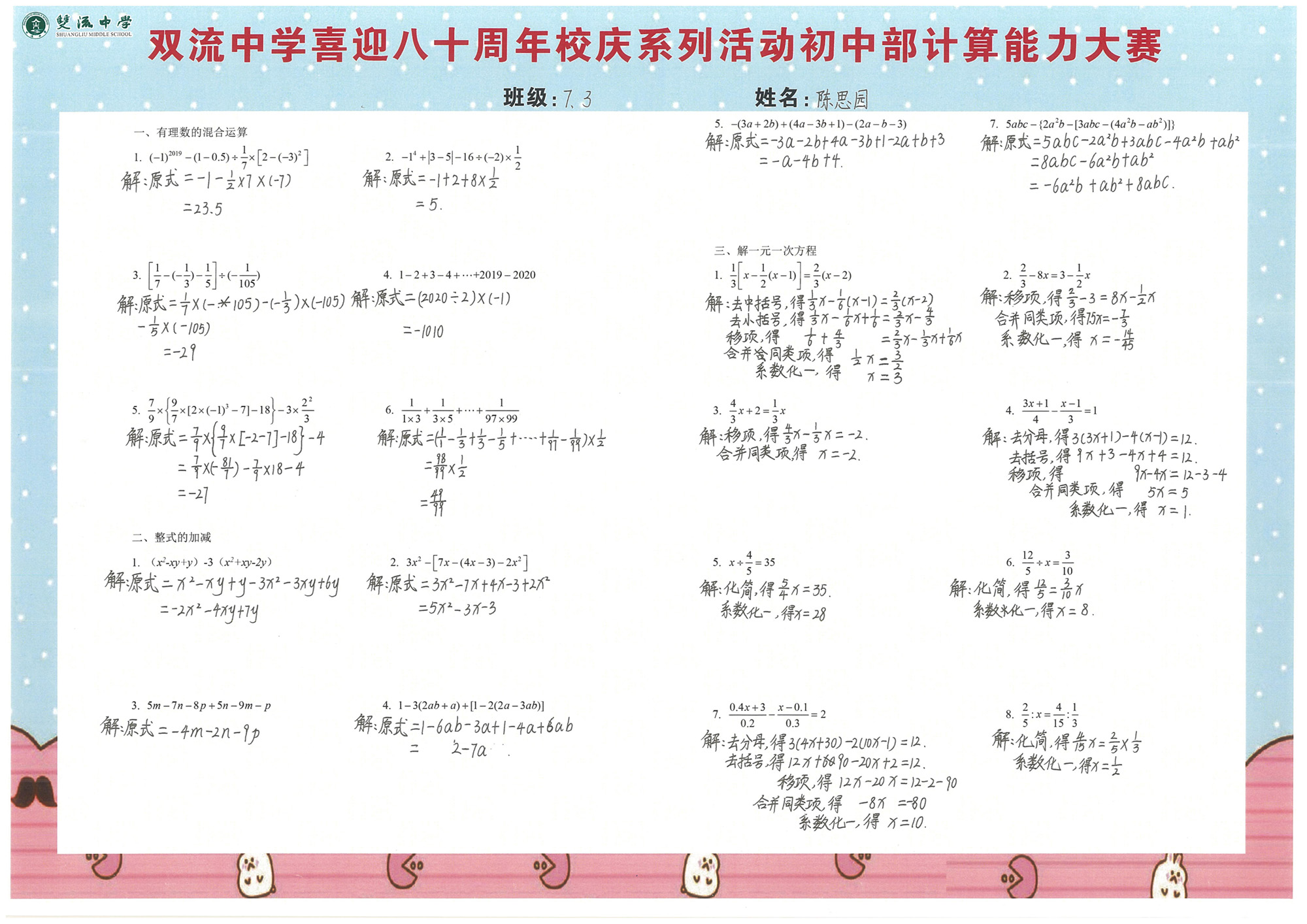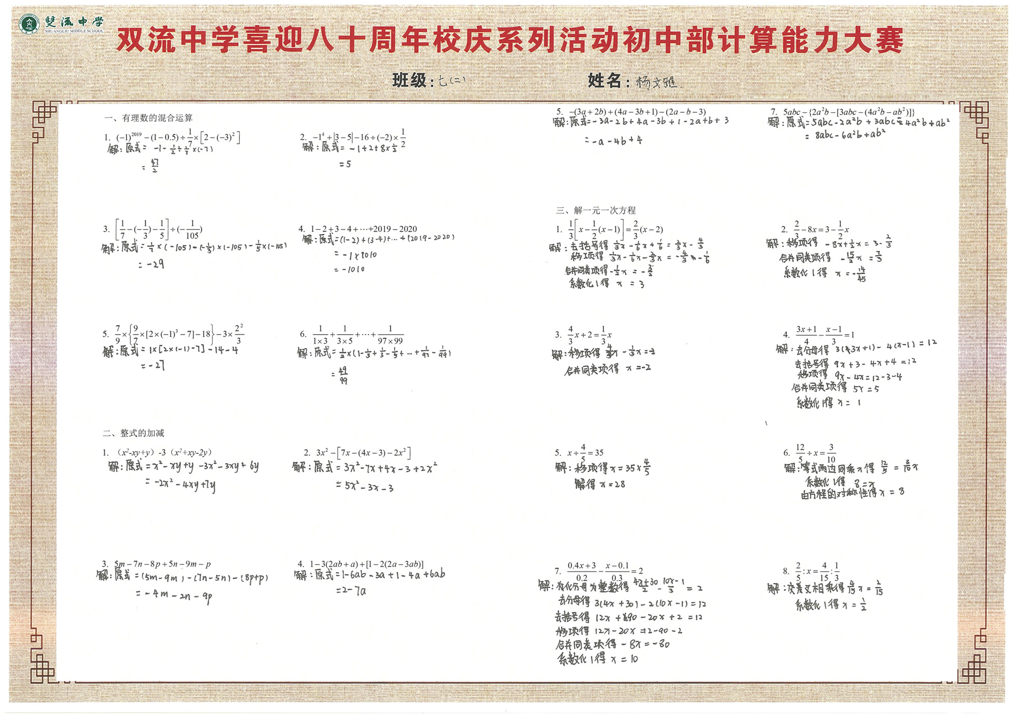 ——雙流中學(xué)初中部數(shù)學(xué)計算大賽