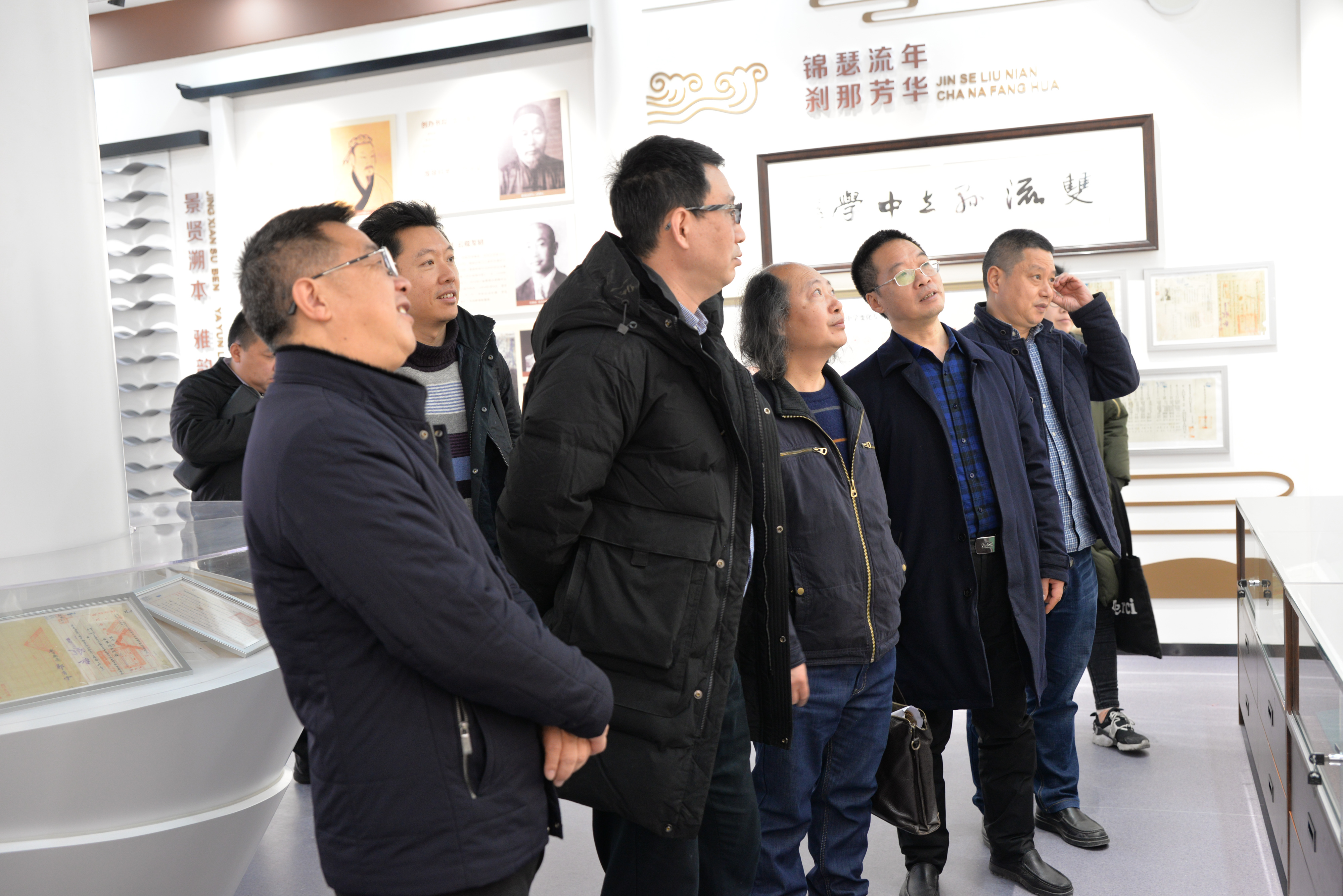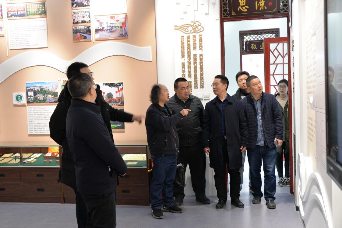 龍清明校長(zhǎng)帶領(lǐng)藝術(shù)家們參觀校史陳列館