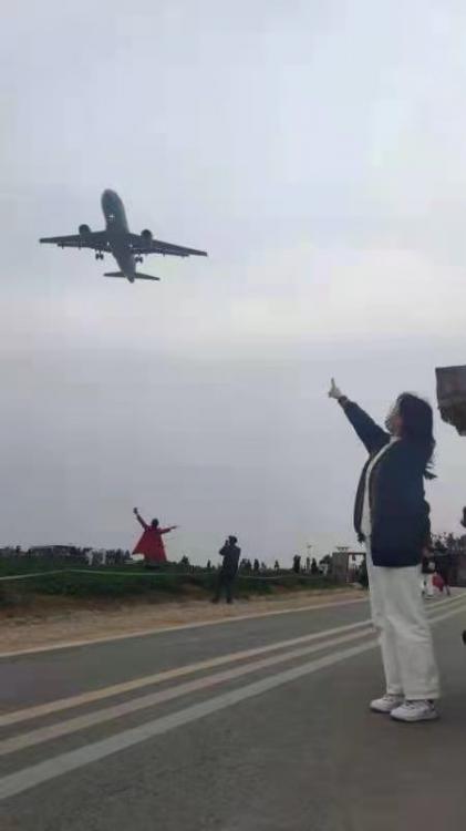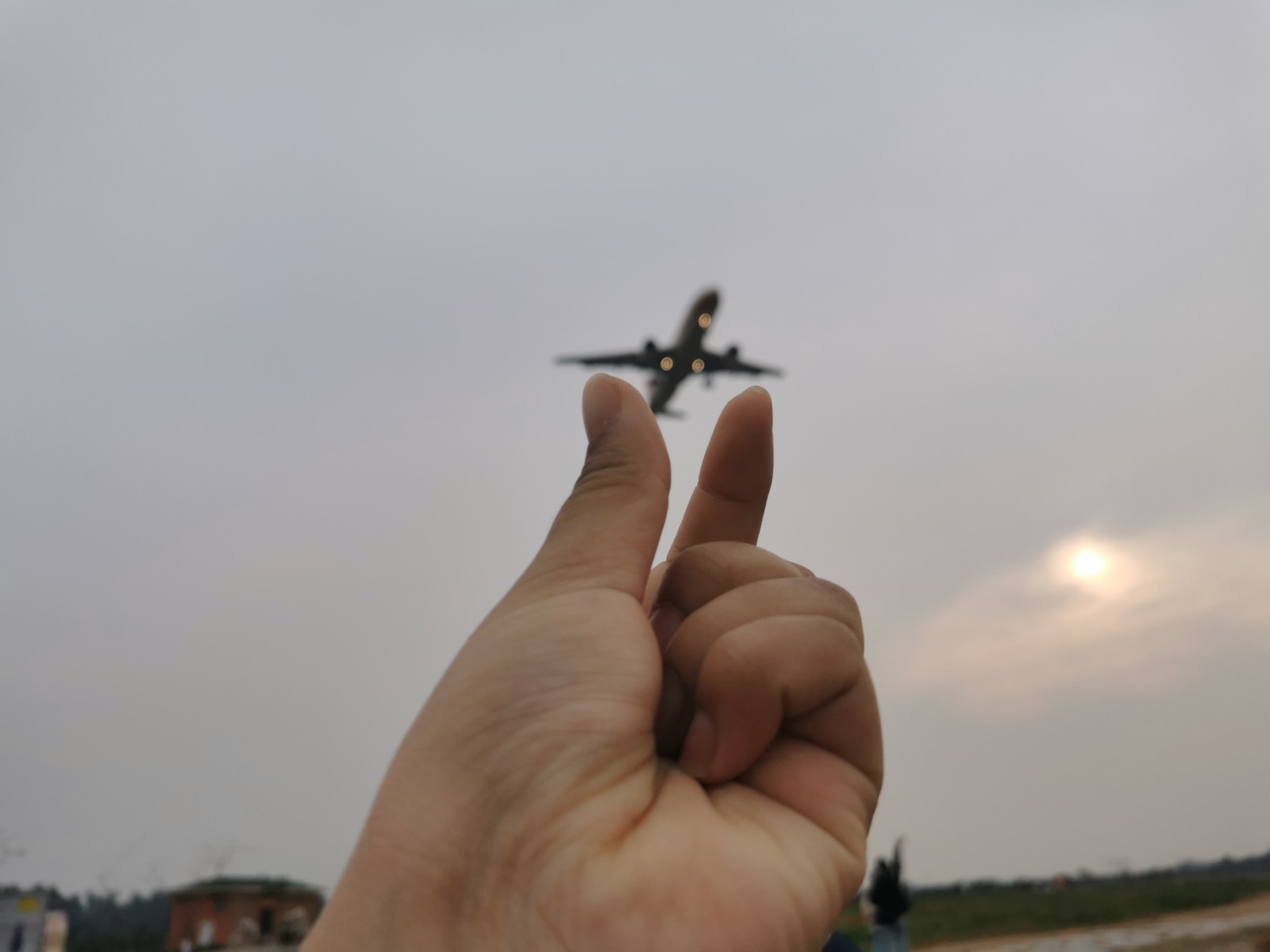 在雙流的空港花田捕捉飛機(jī)的軌跡