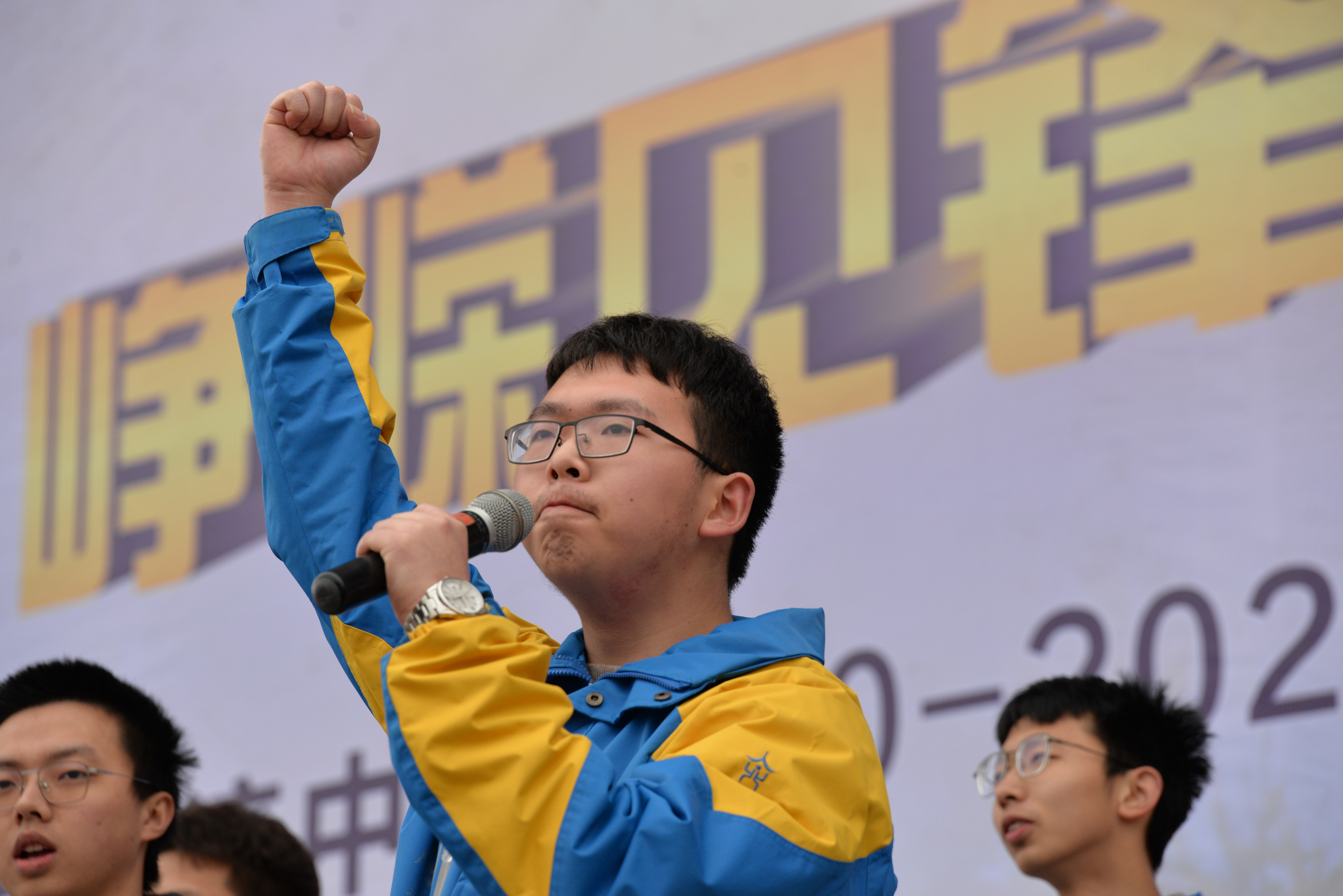 學(xué)生代表帶領(lǐng)本班呼喊沖刺口號(hào)