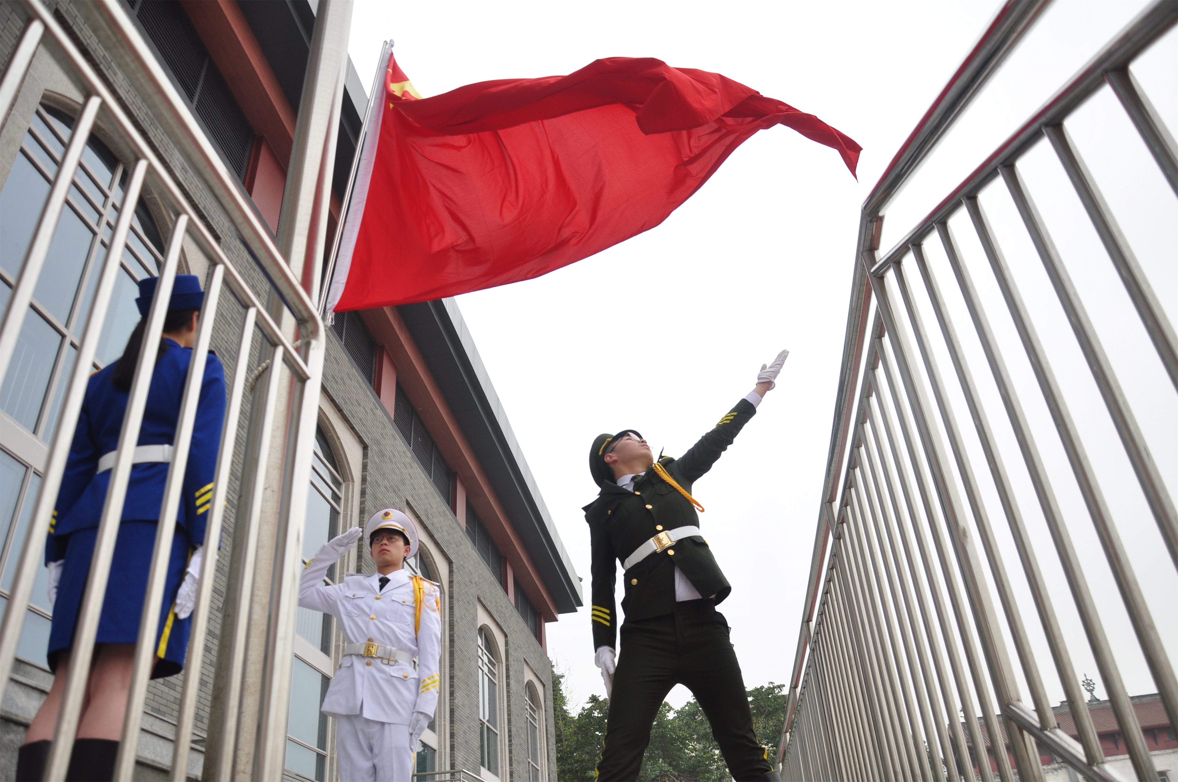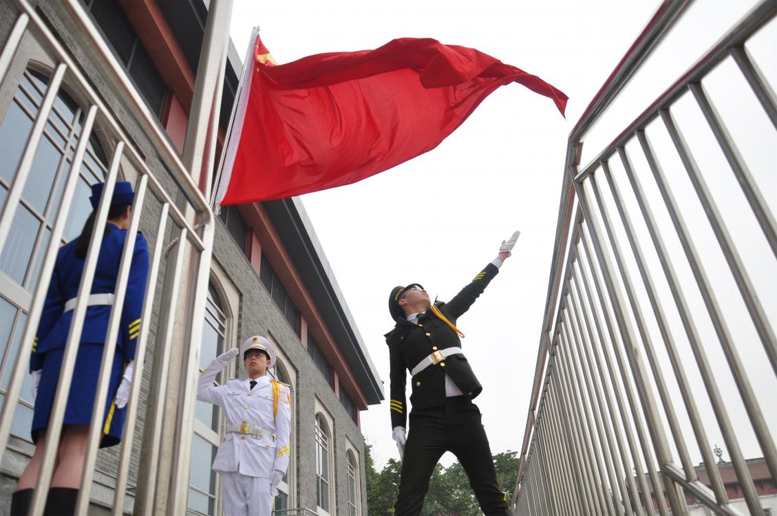 班主任是教師中的排頭兵,更是樹人的中堅力量,為感謝班主任老師的心血和付出,雙流中學(xué)特意將3月12日植樹節(jié)設(shè)定為“班主任節(jié)”,寓意著“樹木樹人”。(圖為升旗儀式)
