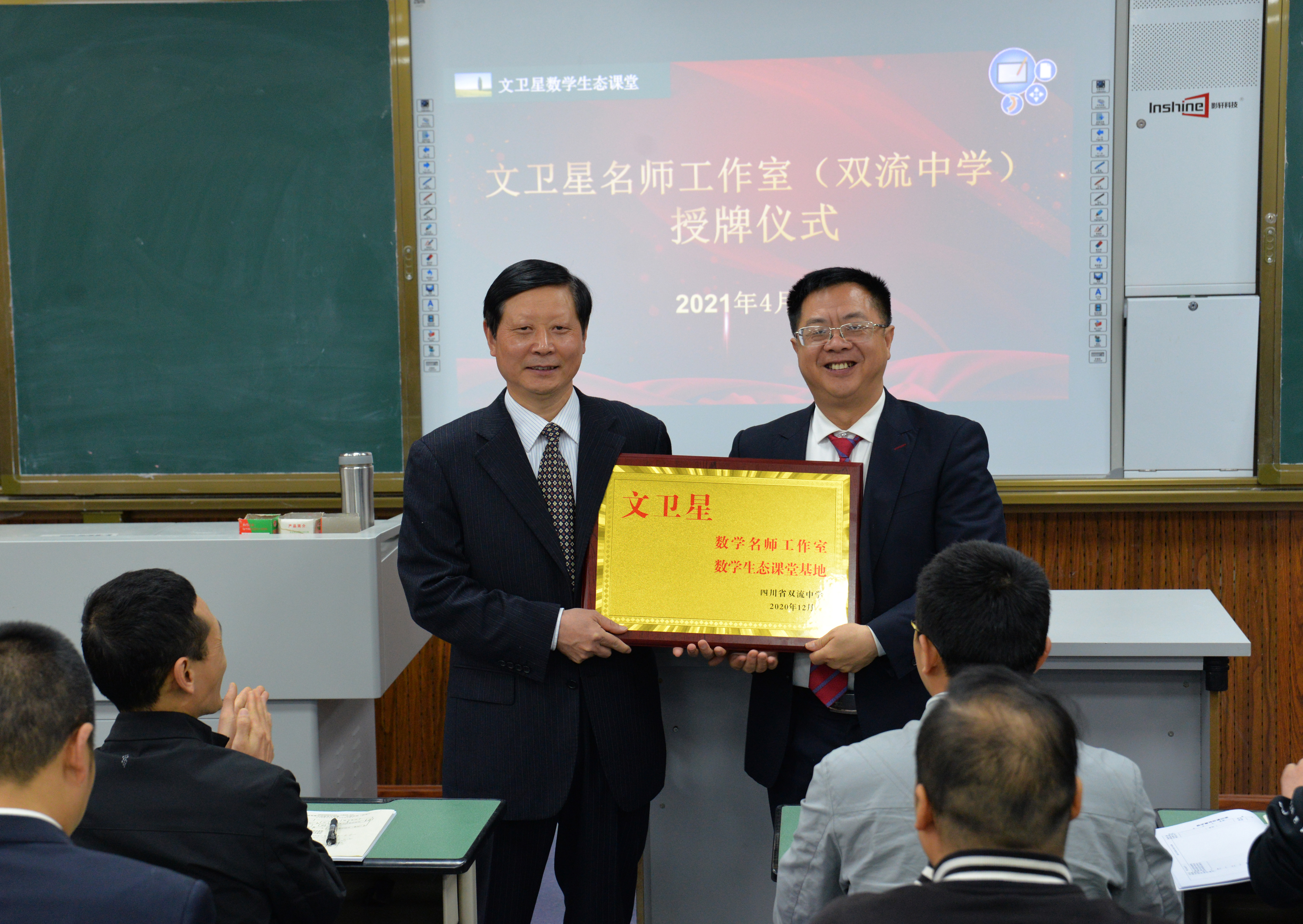 2021年4月8日,文衛(wèi)星名師工作室授牌儀式在雙流中學(xué)舉行,龍校長為工作室授牌。