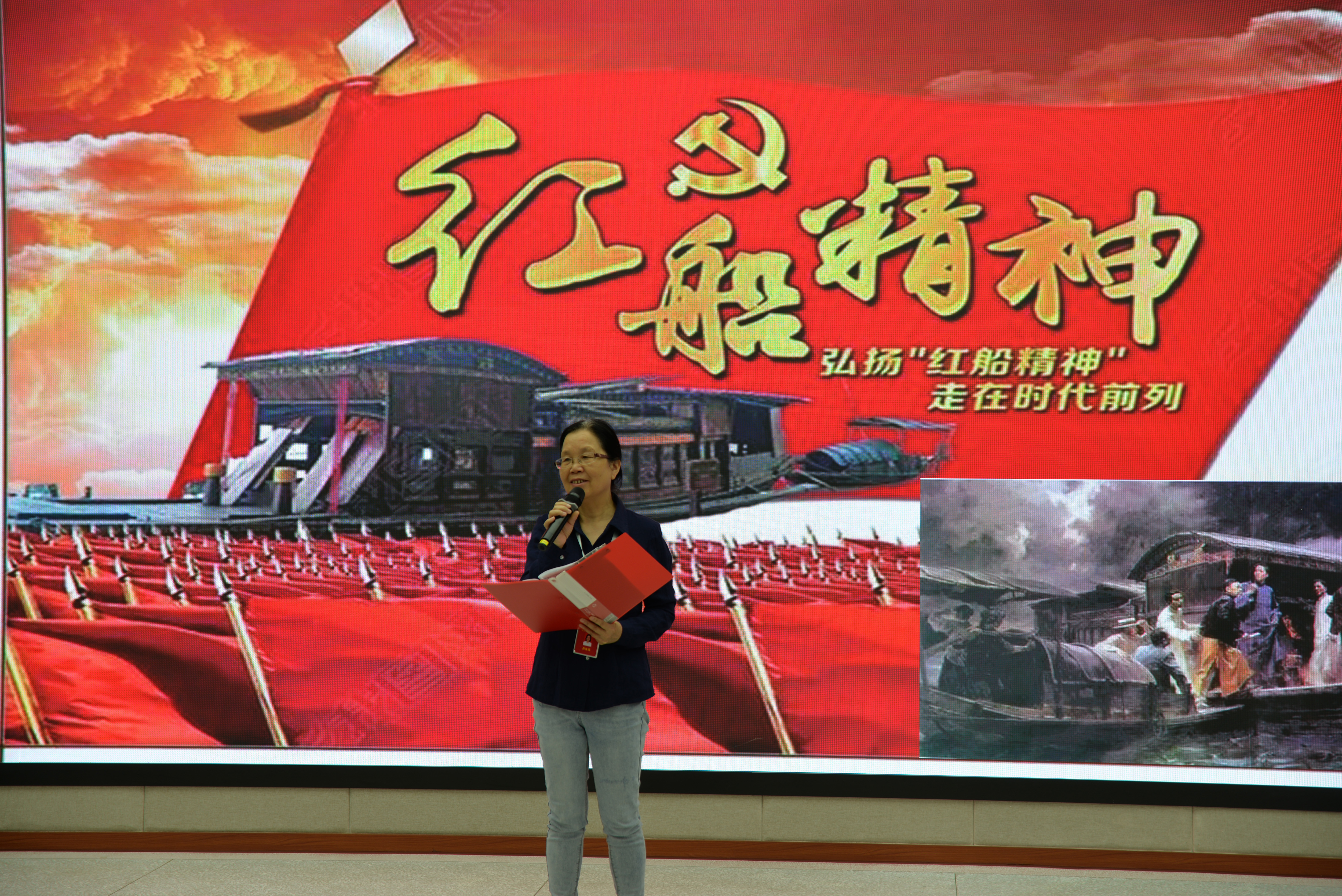 隨后,肖漢英老師則聚焦“紅船精神”,由嘉興南湖的小船展開講述,明確“紅船精神”實為開天辟地、敢為人先的首創(chuàng)精神,堅定理想、百折不撓的奮斗精神和立黨為公、忠誠為民的奉獻(xiàn)精神,這些精神,至今引領(lǐng)著我們前進(jìn)。