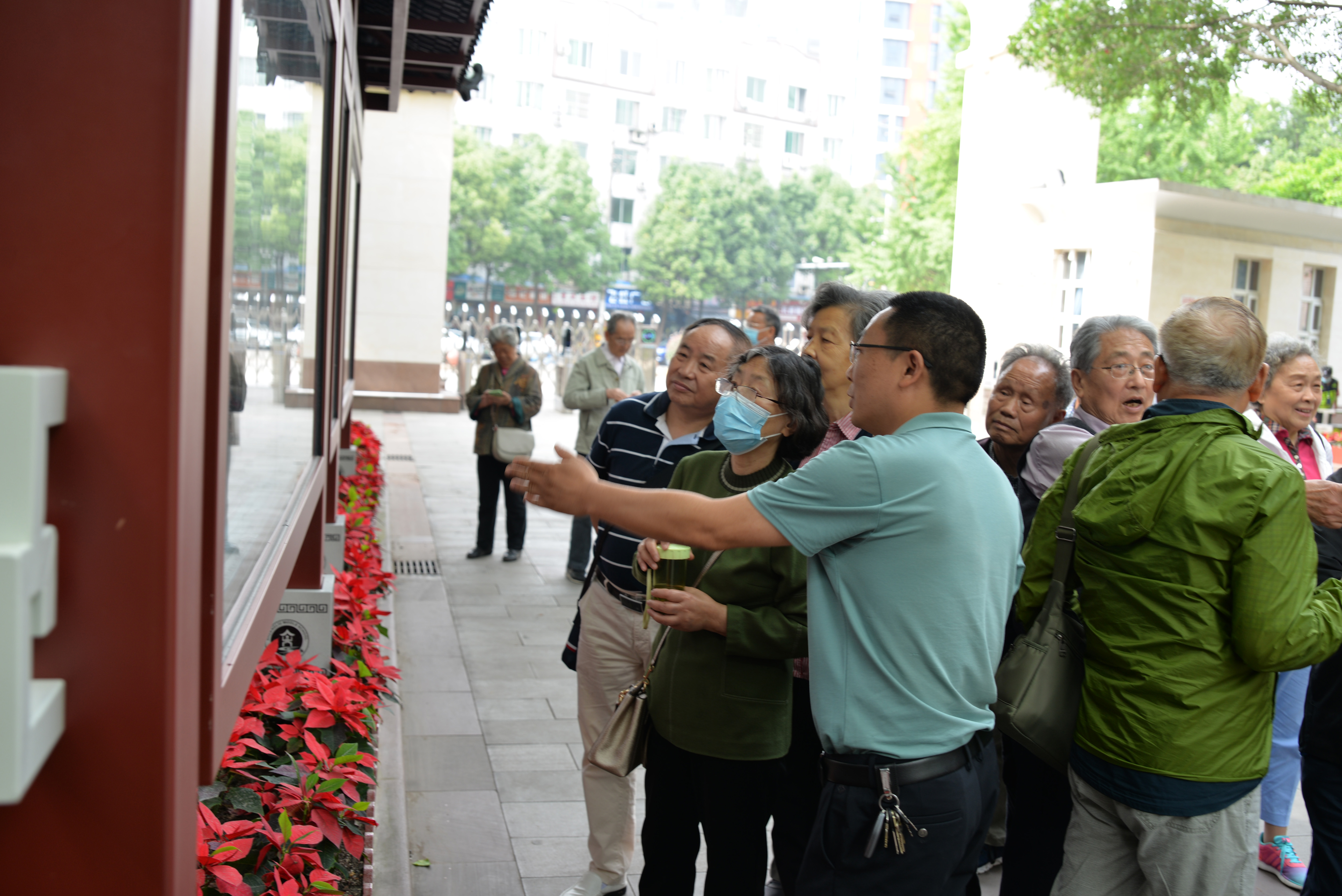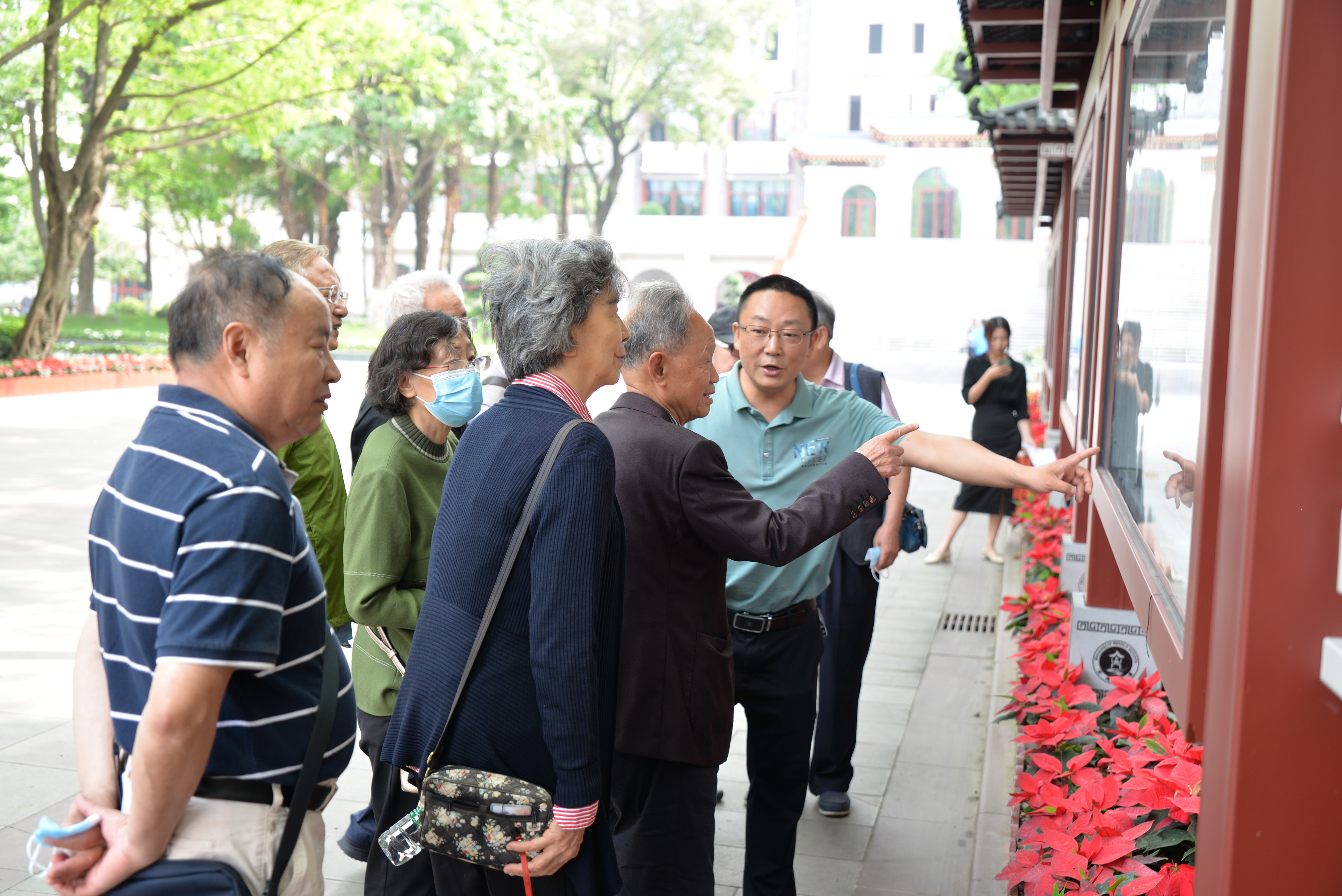 24位老校長在彭春暉主任的帶領下參觀校園,在彭主任的講解下,老校長們大致了解了雙中80年來的辦學歷史和辦學成果。彭春暉主任向24位退休校長介紹學校辦學成果