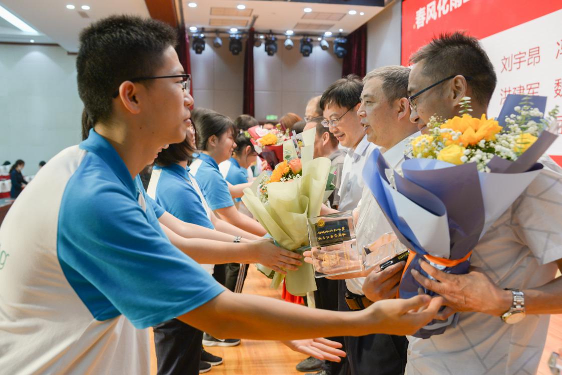 雙流中學(xué)黨委書記龍清明、黨委副書記向發(fā)友、副校長徐天福等學(xué)校領(lǐng)導(dǎo)為各位受到表彰的老師們獻(xiàn)花,表達(dá)真摯祝福。是他們,見證了雙中的發(fā)展變化,傾注了畢生心血與極大熱忱。