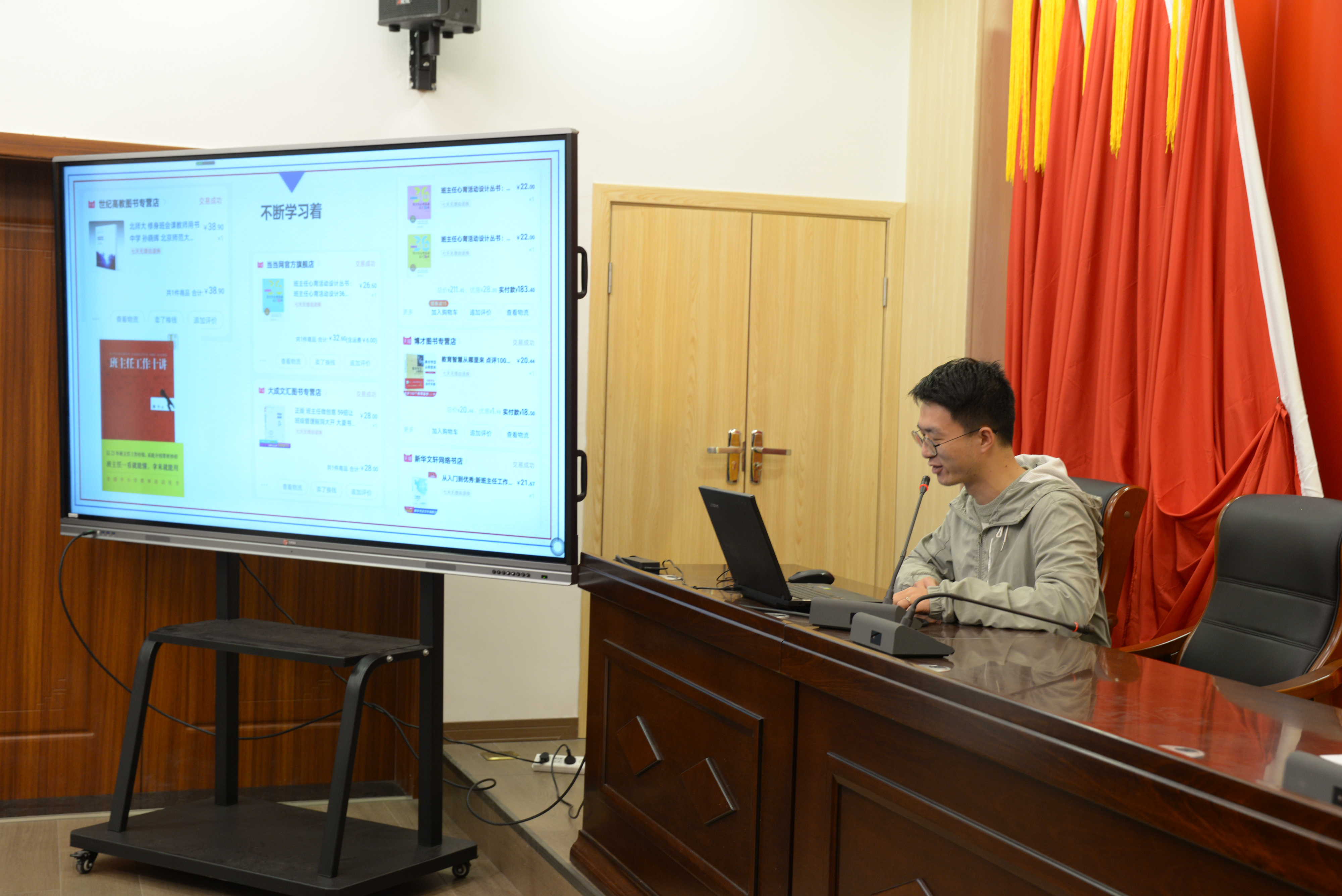 會(huì)議開始,首先是由高三化學(xué)老師嚴(yán)曉港老師帶來(lái)他的經(jīng)驗(yàn)分享。嚴(yán)老師為大家展示了他近年來(lái)購(gòu)買的書籍,他表示,青年教師要不斷尋求進(jìn)步,就一定要多讀書,從書籍中獲得智慧。嚴(yán)老師擔(dān)任了班主任,他從個(gè)人經(jīng)驗(yàn)出發(fā),細(xì)致地為大家講解了班級(jí)管理工作,與此同時(shí),他也建議青年教師們應(yīng)該多上公開課,要有成果意識(shí),才能將經(jīng)驗(yàn)轉(zhuǎn)換為更為長(zhǎng)久的發(fā)展。