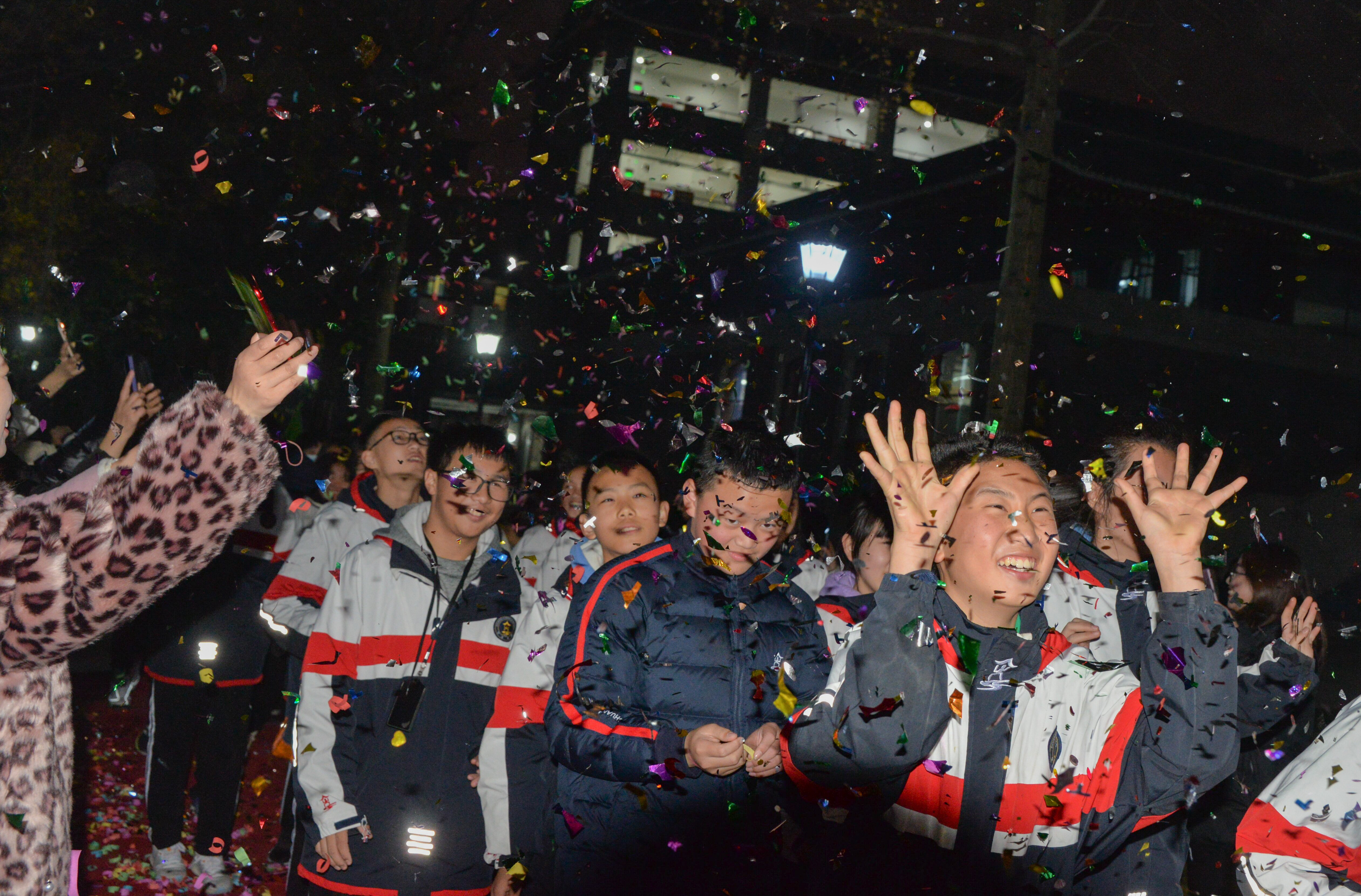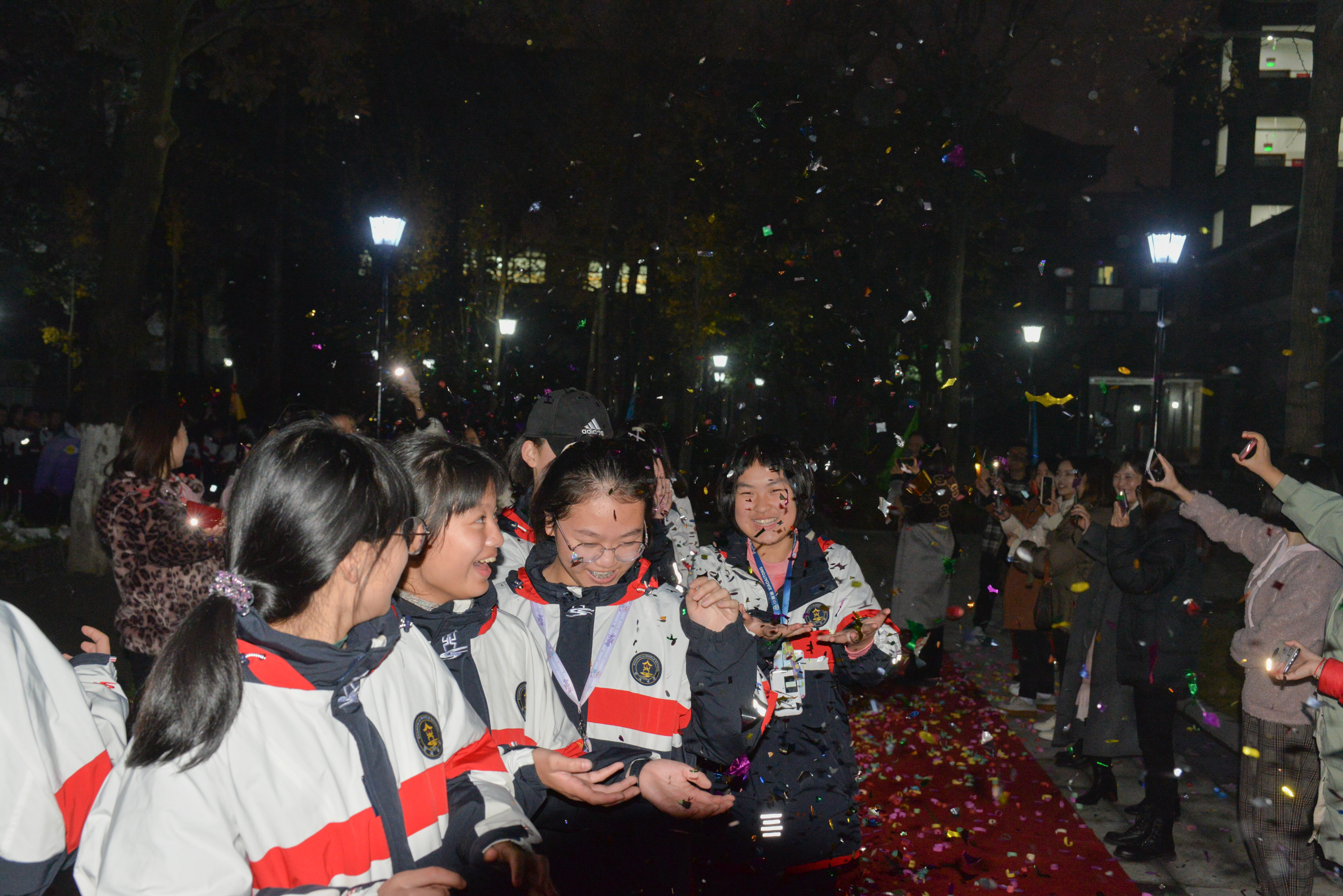 拋起氣球的瞬間活動結束后,同學們按班級列隊,依次進入教學樓,初中的老師們,等候在樓前,用掌聲和絢爛的禮花迎接他們,愿他們今后的學習生活,像這禮花一樣,絢爛多姿!