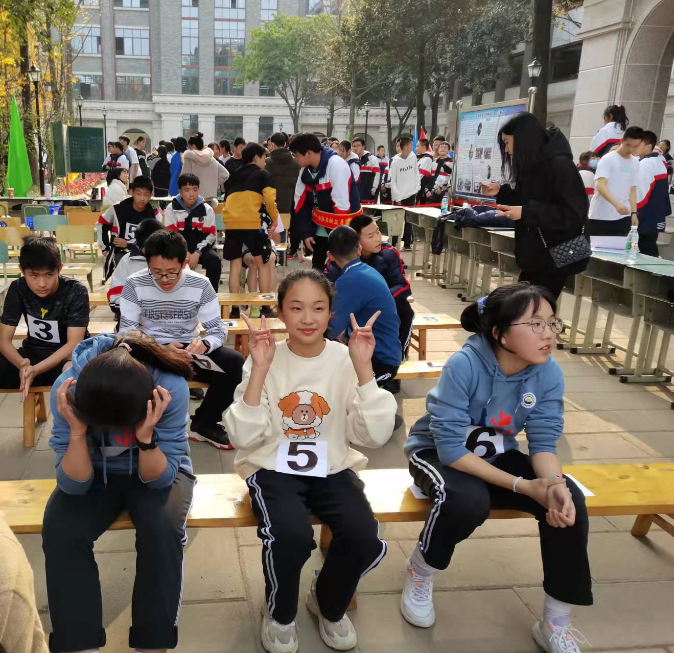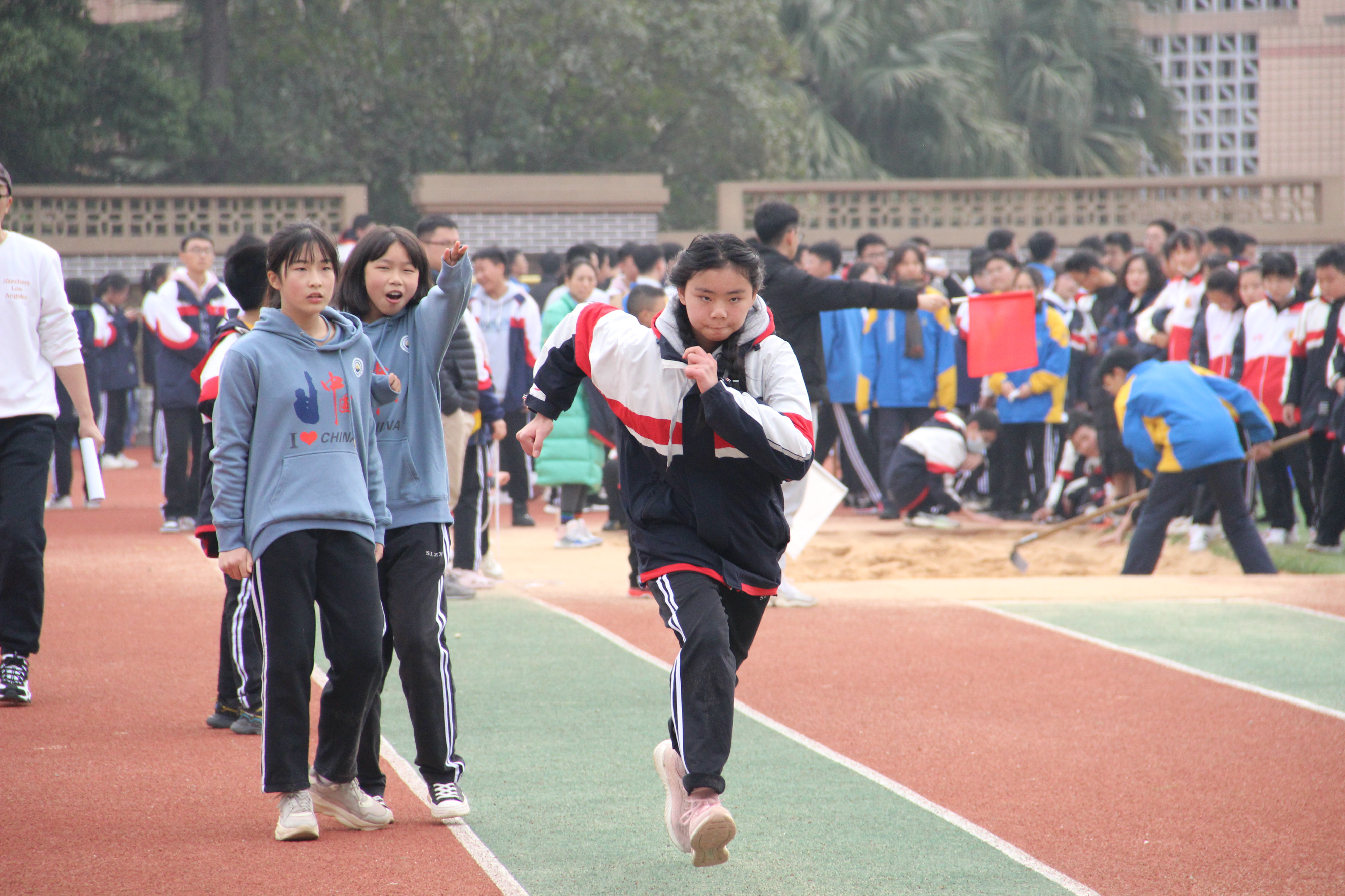 八三班班主任孔曉雪老師:“其實,孩子們只要能夠在這次運動會中收獲快樂,自己能有所體悟,我就很開心了。”有意思的是,孔老師話音剛落,她班上的吳鈺杉同學便獲得了女子跳遠第一名。