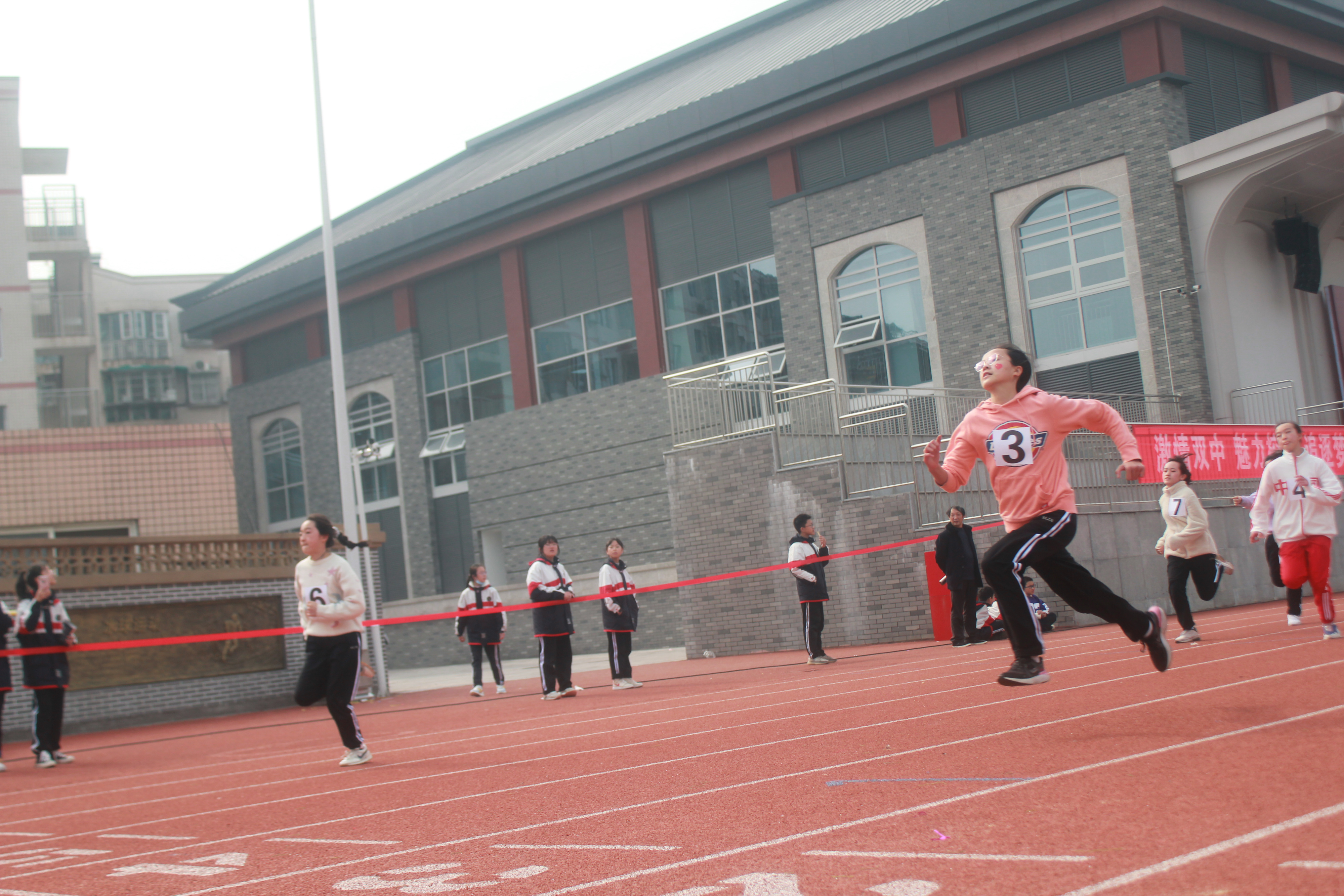 七年級六班的吳雨思同學在女子四百米賽中奪得第一,面對鏡頭她有些不敢置信地說:“跑完后我就聽我們班同學說四道跑的很快,但是我卻反超了她,我特別驚訝,超級開心!”