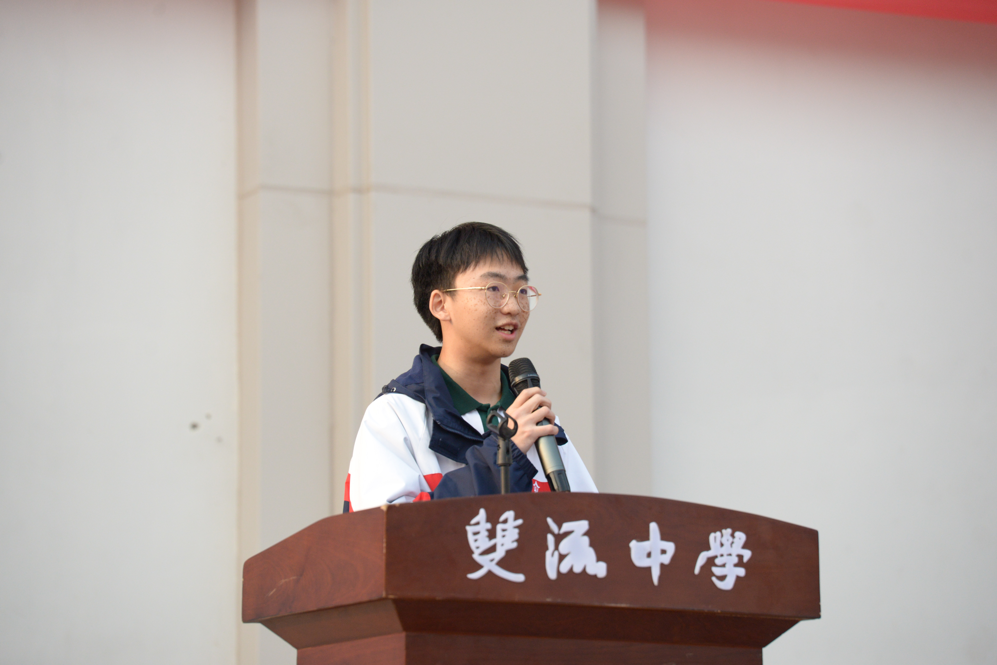 高一20班肖鵬楊同學(xué)作為學(xué)生代表發(fā)言