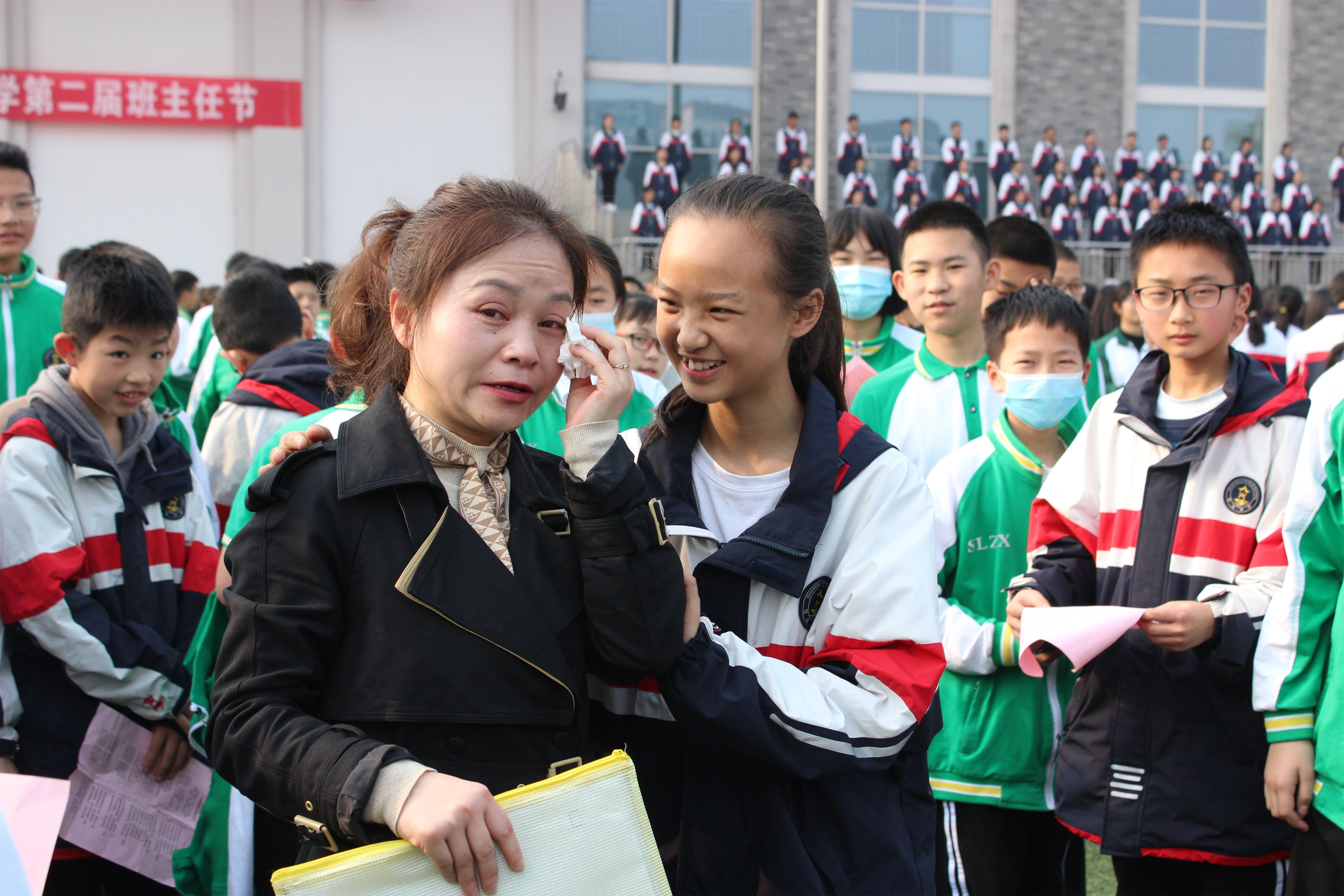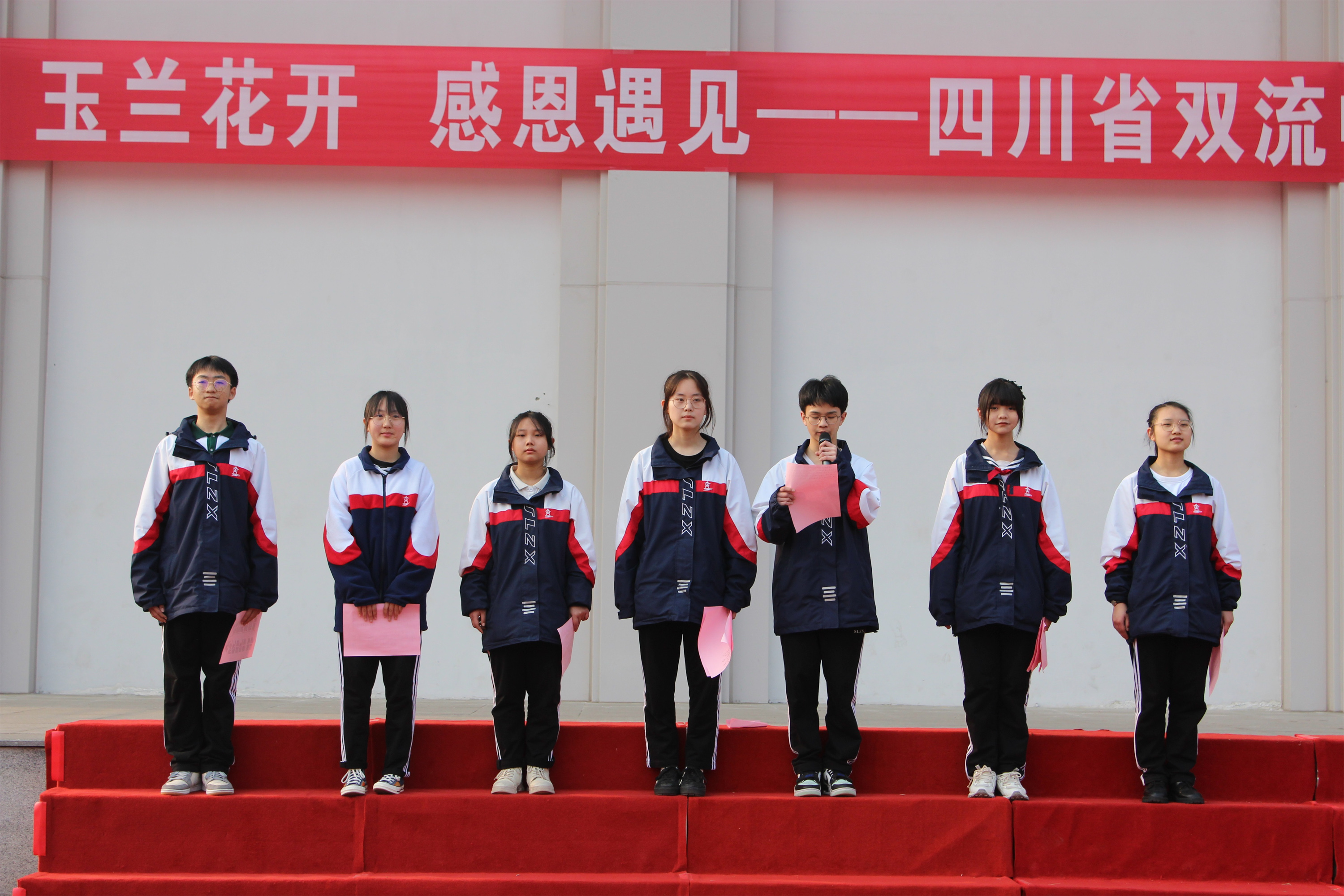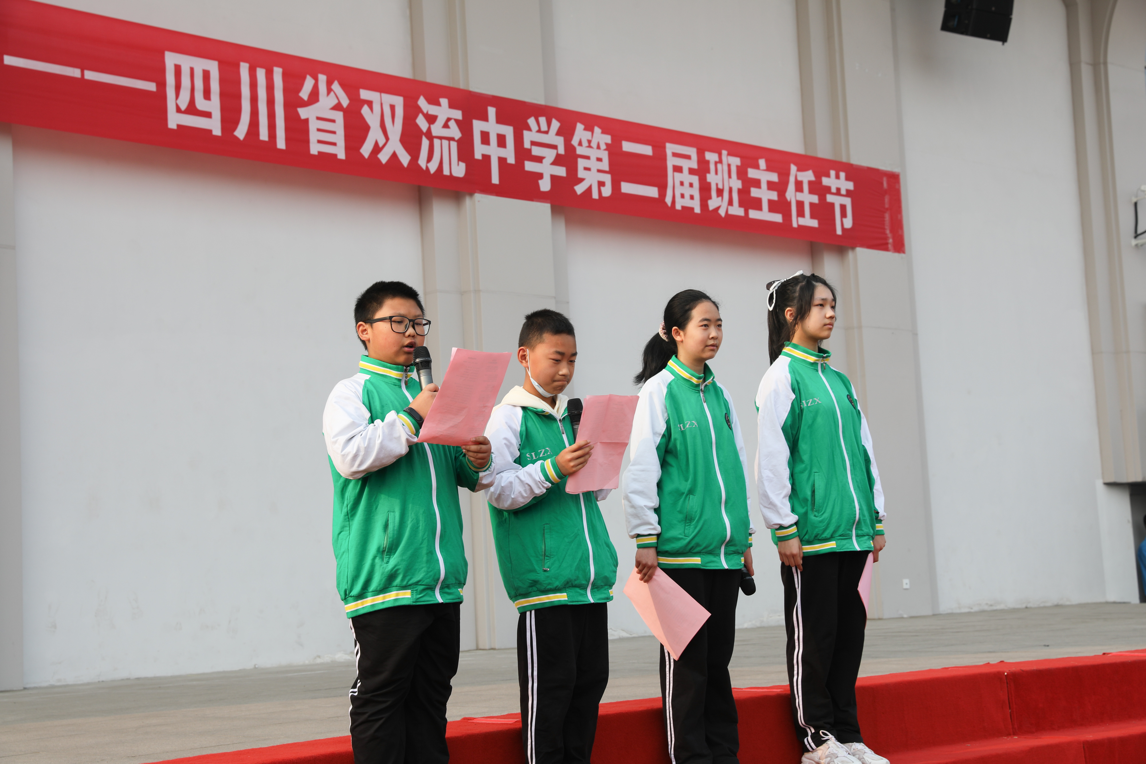 2022年3月12日,雙流中學(xué)第二屆班主任節(jié)在升國旗、奏國歌中拉開了帷幕。隨后,高一20班肖鵬楊同學(xué)作為學(xué)生代表發(fā)言,他說,每一位班主任都是“三年皆是高三”的忙碌,七點二十到班,深夜十一點回家,這是我們的三年,卻是班主任的三十年,表達了對班主任的理解和謝意。七年級6班盧可欣同學(xué)家長作為家長代表發(fā)言,她感謝道,在千千萬萬老師中,班主任總是沖在第一線,班級群里有班主任的深夜回復(fù),周末休假有溫馨叮嚀,感恩讓我的孩子遇到最好的班主任,最好的老師。緊接著,楊睿、張佳藝老師演唱《班主任之歌:玉蘭花開》,這是一首由學(xué)生填詞、改編的歌曲,傳遞了學(xué)生對班主任濃濃的真情。