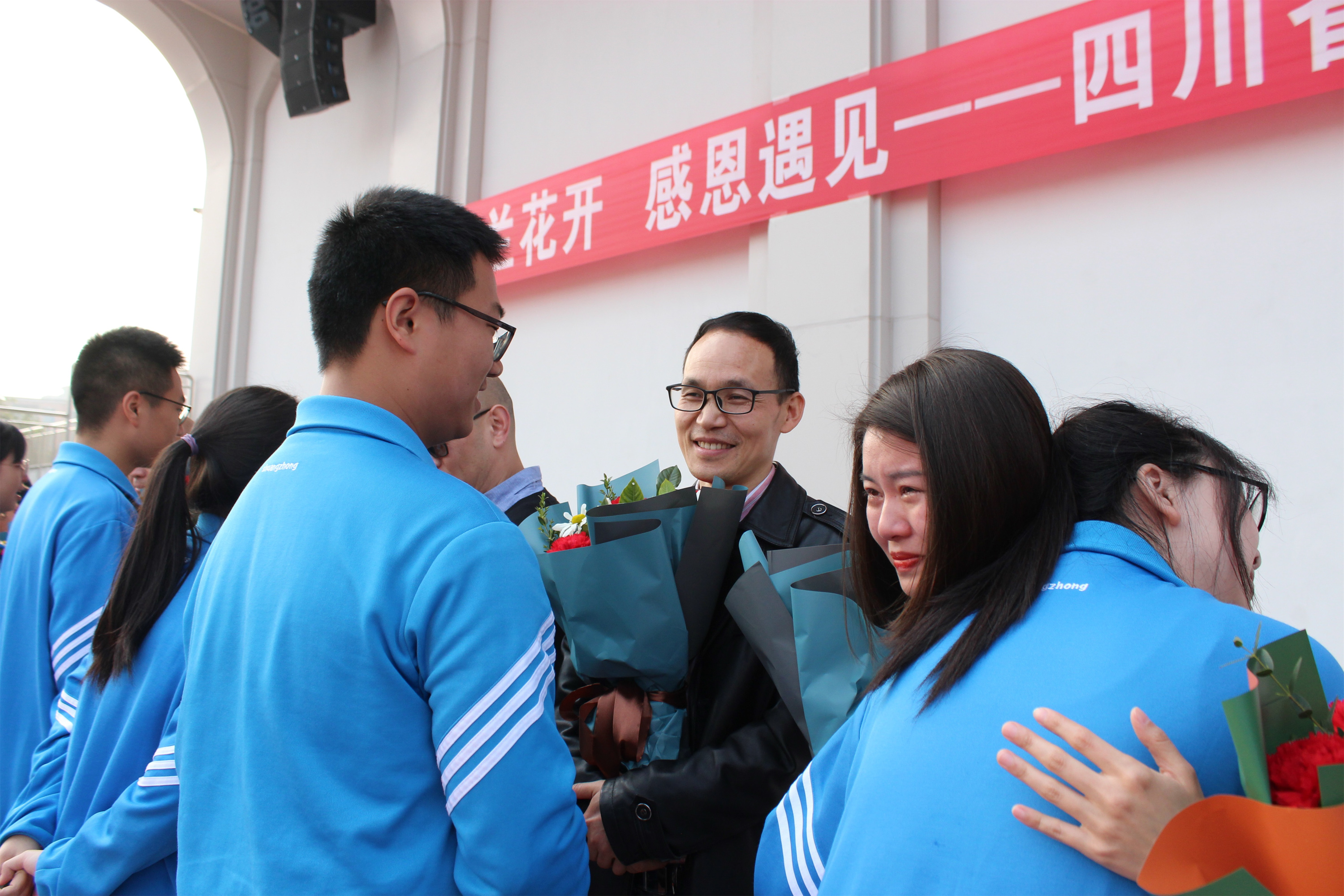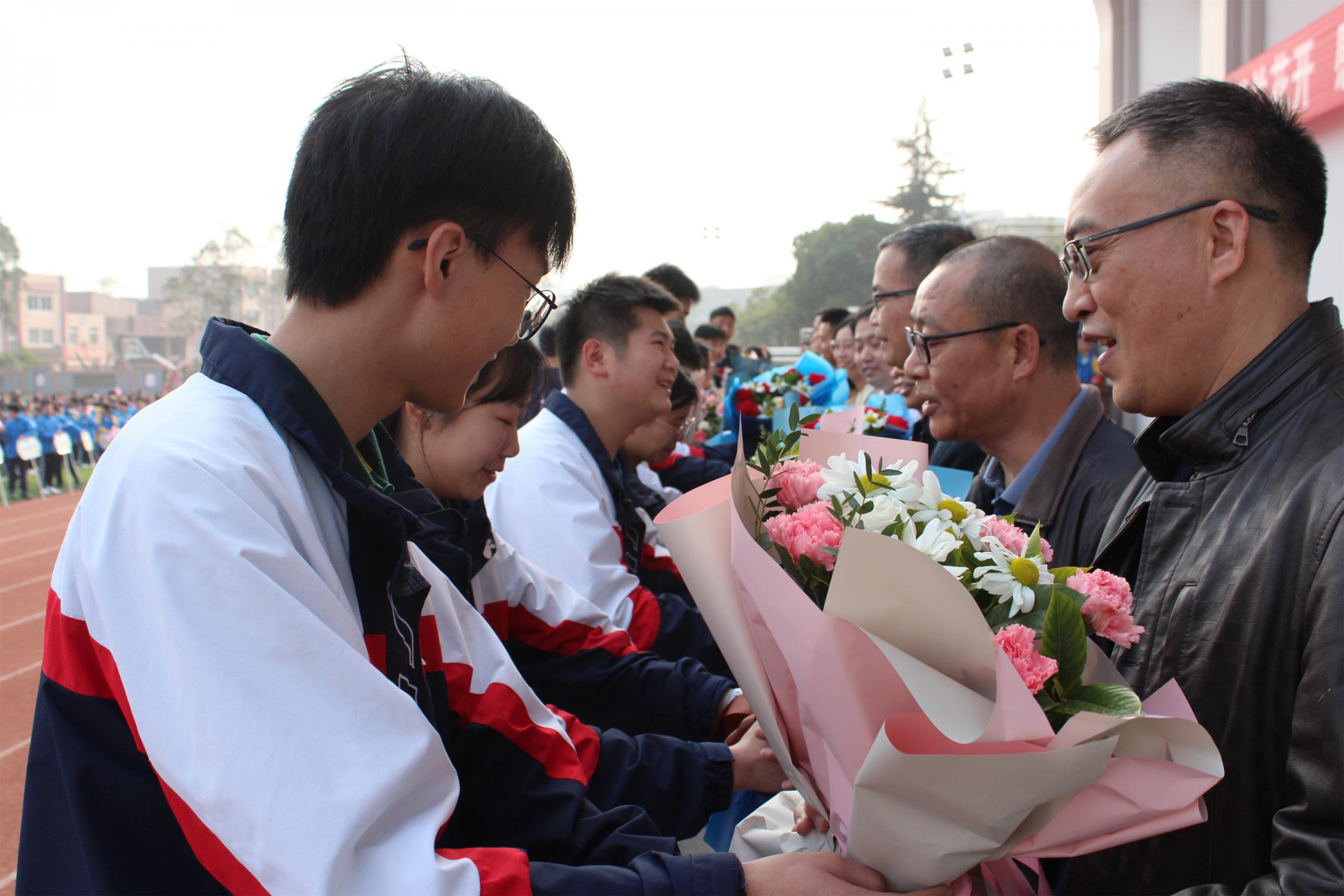 高一學(xué)生代表為班主任獻花
