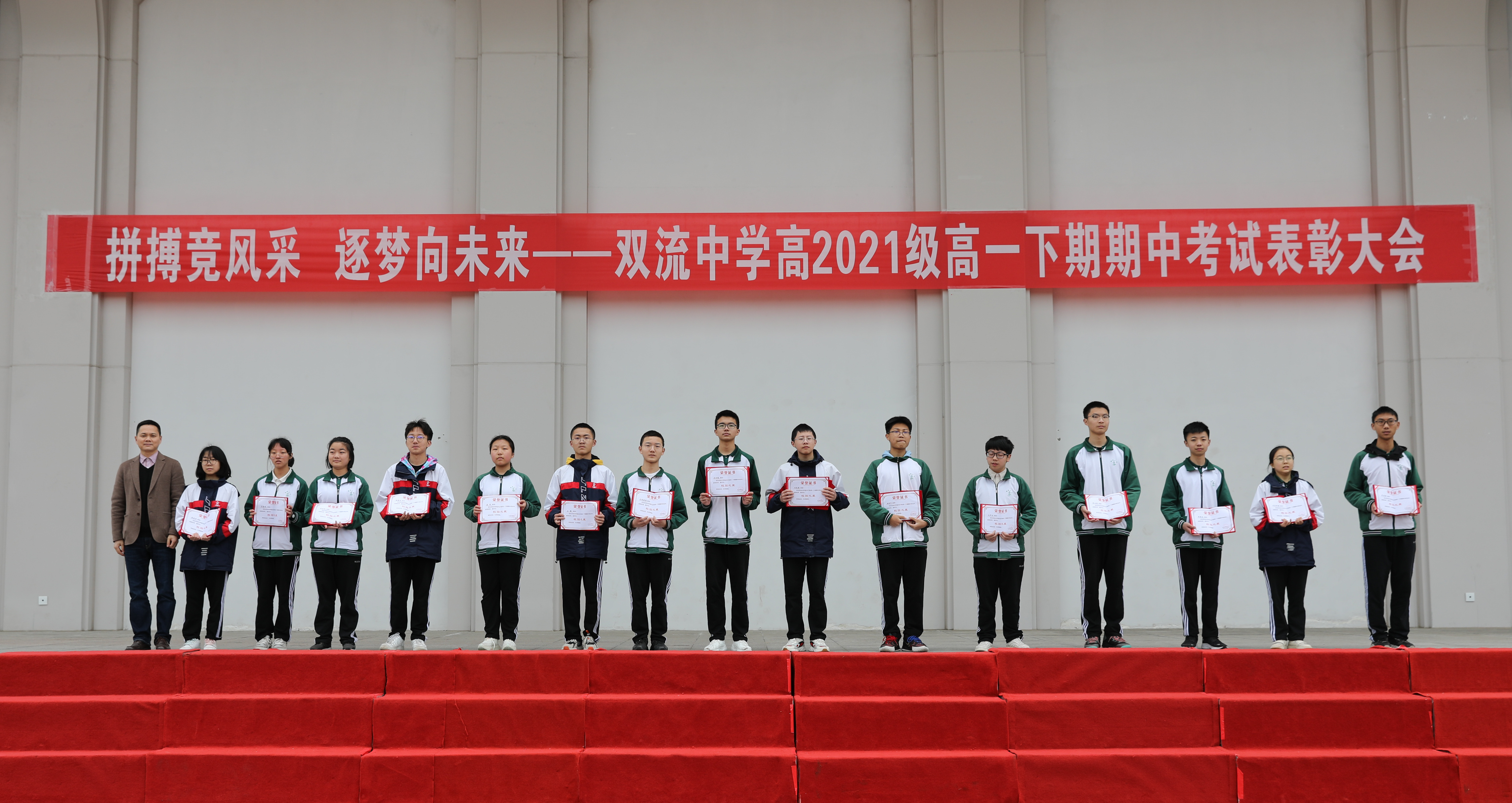 春日遲遲,卉木萋萋,為表彰先進,樹立榜樣,振奮精神,增強高一學(xué)生半期考試后學(xué)習的決心與信心,2022年4月16日上午,雙流中學(xué)高2021級在操場隆重舉行了“拼搏競風采,逐夢向未來”主題表彰大會。副校長徐天福、高一年級管理團隊全體成員、科任老師和全體學(xué)生參加了本次表彰大會,下面就讓我們直擊現(xiàn)場。
