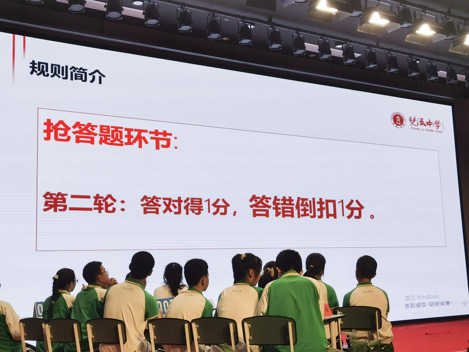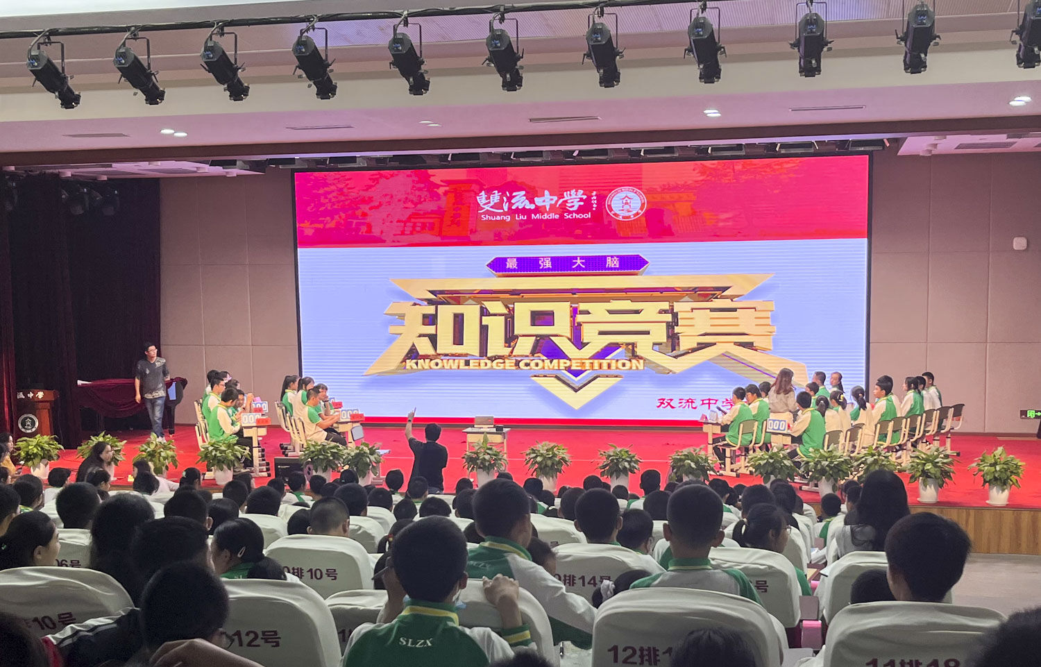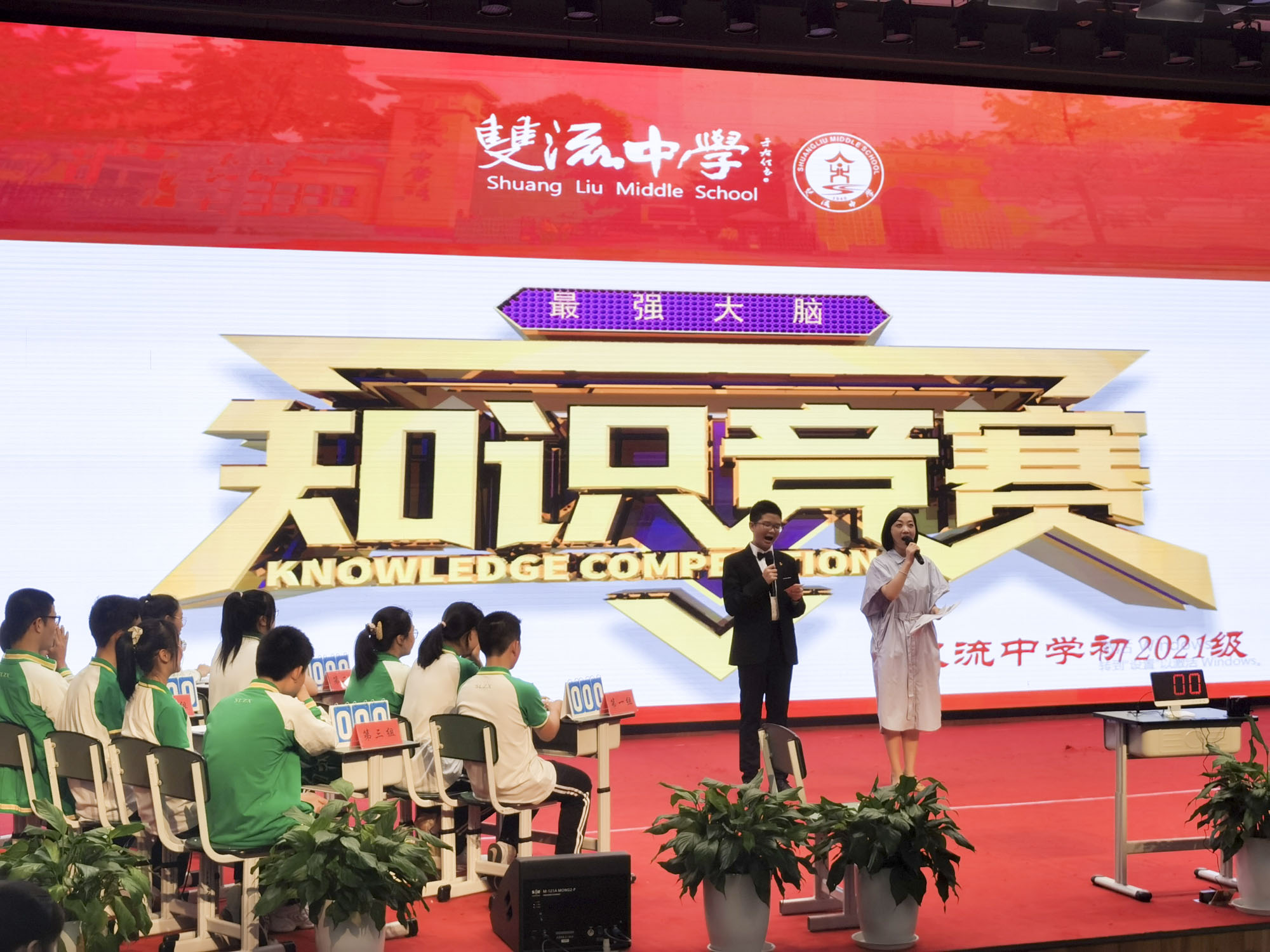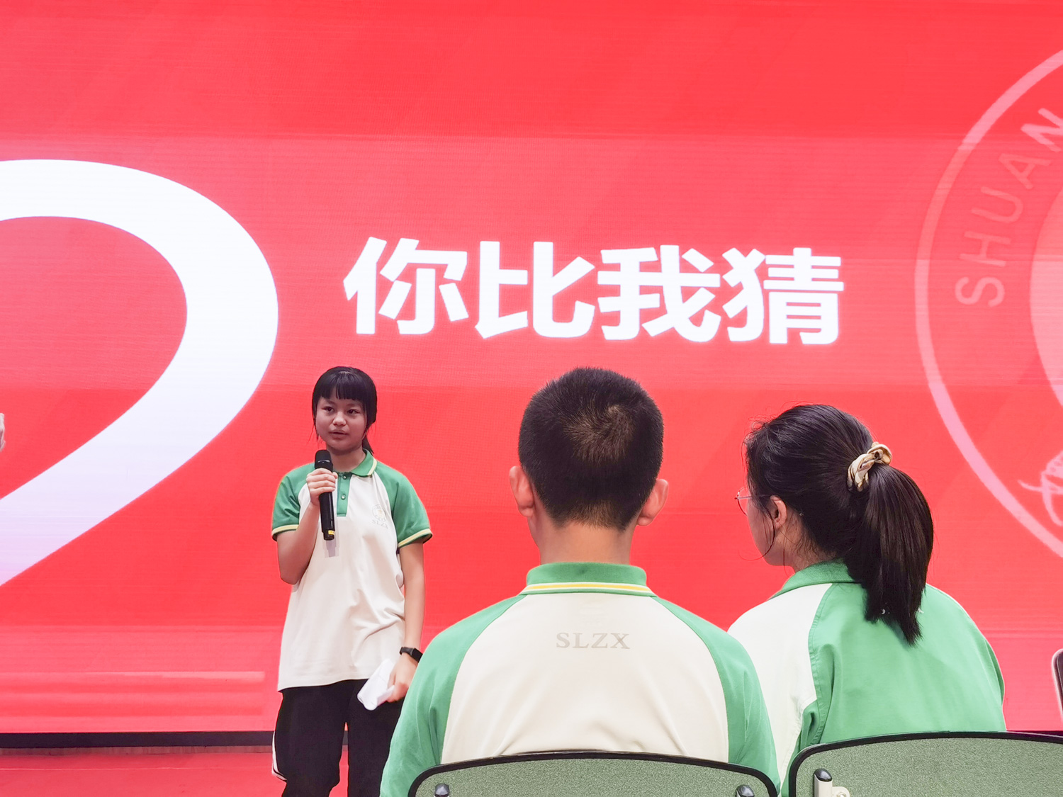 最強(qiáng)大腦活動2022年5月23日,為豐富學(xué)生校園生活,提高學(xué)生文化素養(yǎng),雙流中學(xué)初一年級“最強(qiáng)大腦”知識競賽在玉蘭廳如期舉行,雙流中學(xué)工會主席田明建、德育安全處副主任郝碧婭、研培處副主任王亞莉參加了本次活動。本次活動由初一年級語文組、綜合組共同承辦,并由語文老師楊婉妮和初一(6)班學(xué)生何泓江共同主持?;顒臃譃楸卮痤}、你比我猜、搶答題、飛花令、決賽再搶答五個環(huán)節(jié)。