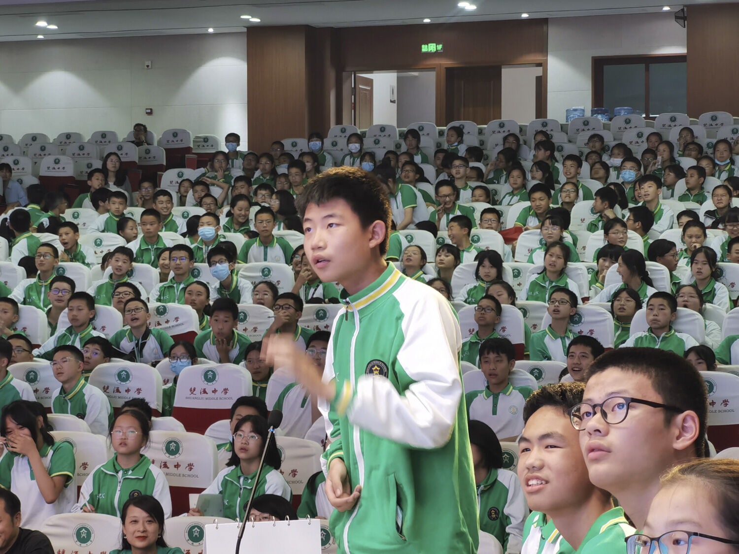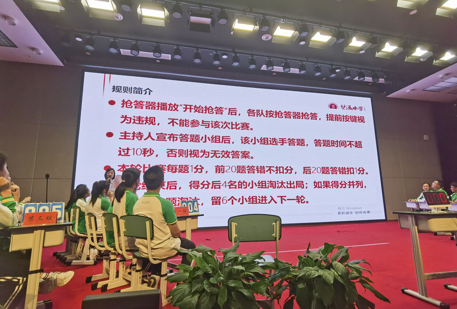 他提出,“最強(qiáng)大腦”活動能拓展學(xué)生的文化視野、培養(yǎng)健康高雅的審美情趣;他強(qiáng)調(diào),新時代的中學(xué)生要有時代的使命和擔(dān)當(dāng),要有文化自信,要了解并傳承中國的傳統(tǒng)文化,更要與時俱進(jìn),熟知生活中常見的科學(xué)文化知識,要有守正意識和創(chuàng)新精神。他希望,通過本次活動,每位同學(xué)都能體驗(yàn)到精彩的初中生活,感悟到青春時光的魅力。最后,他預(yù)祝參賽選手能在本次比賽中收獲佳績,展現(xiàn)優(yōu)秀的自己。