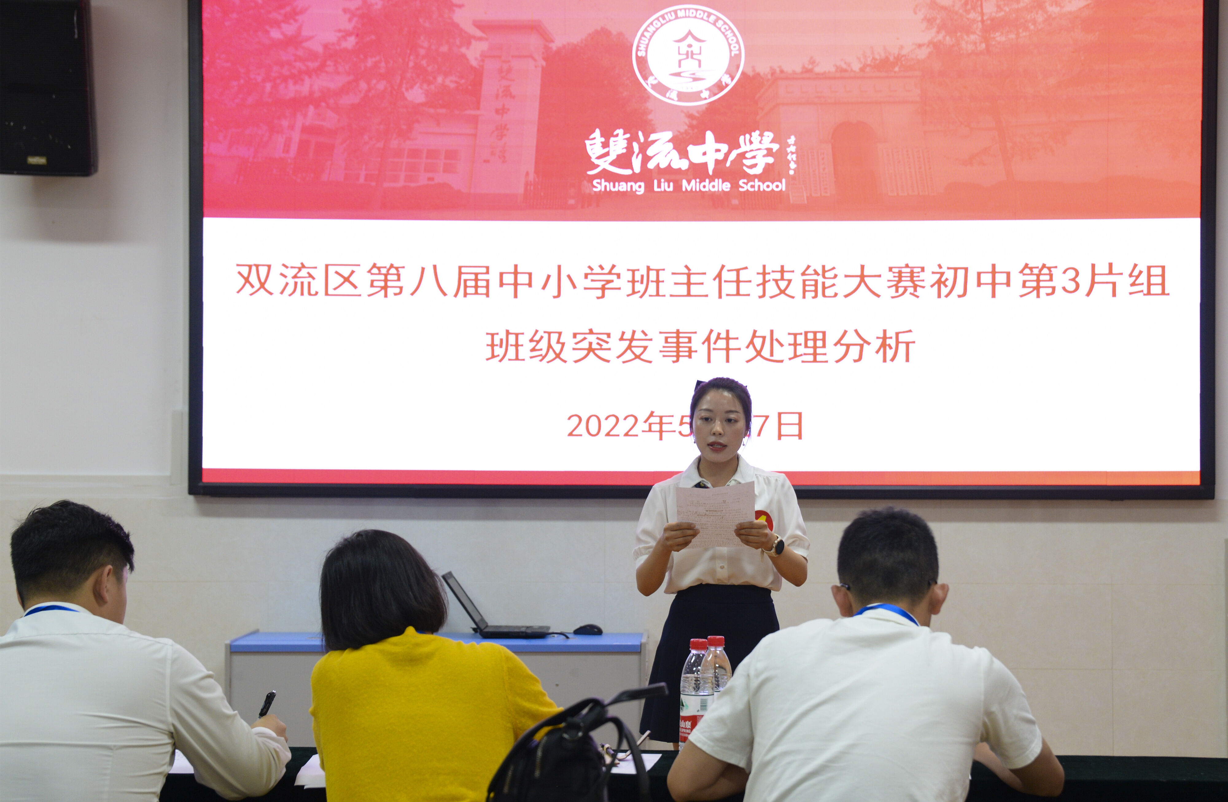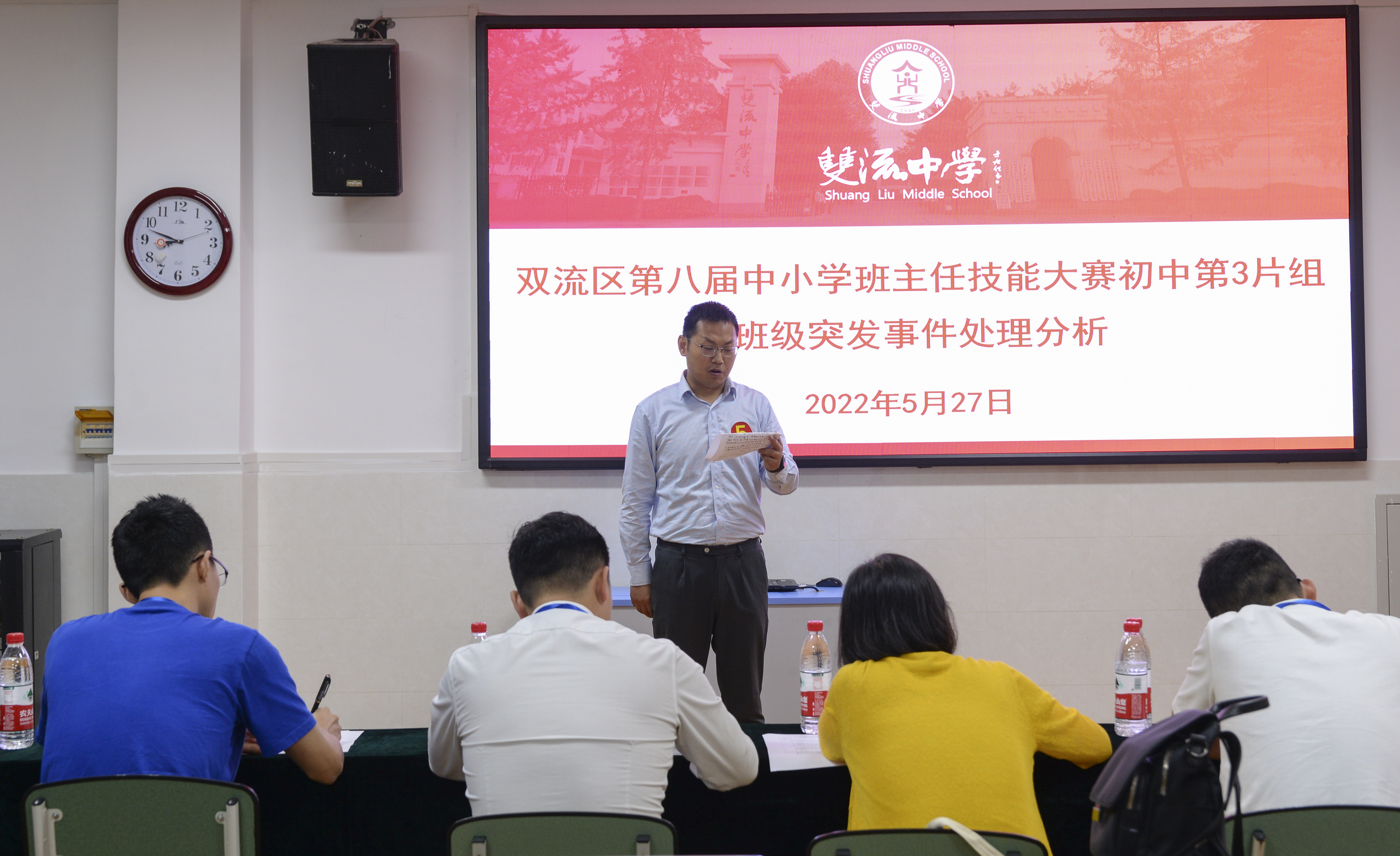 2022年5月27日,雙流區(qū)“‘雙減’背景下的自主管理”班主任技能大賽初中組第3片組的比賽在雙流中學(xué)舉行。(圖為 參賽教師)