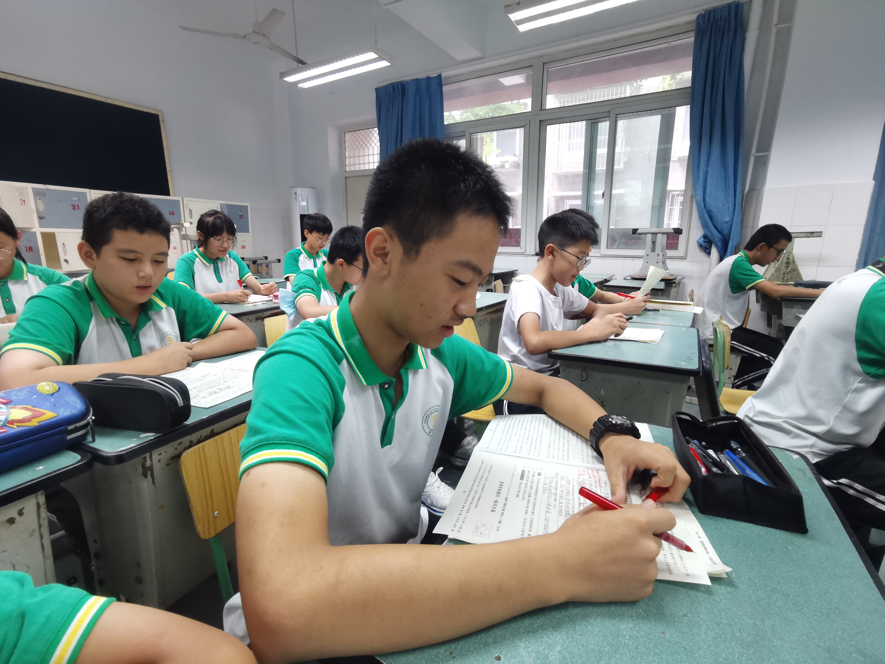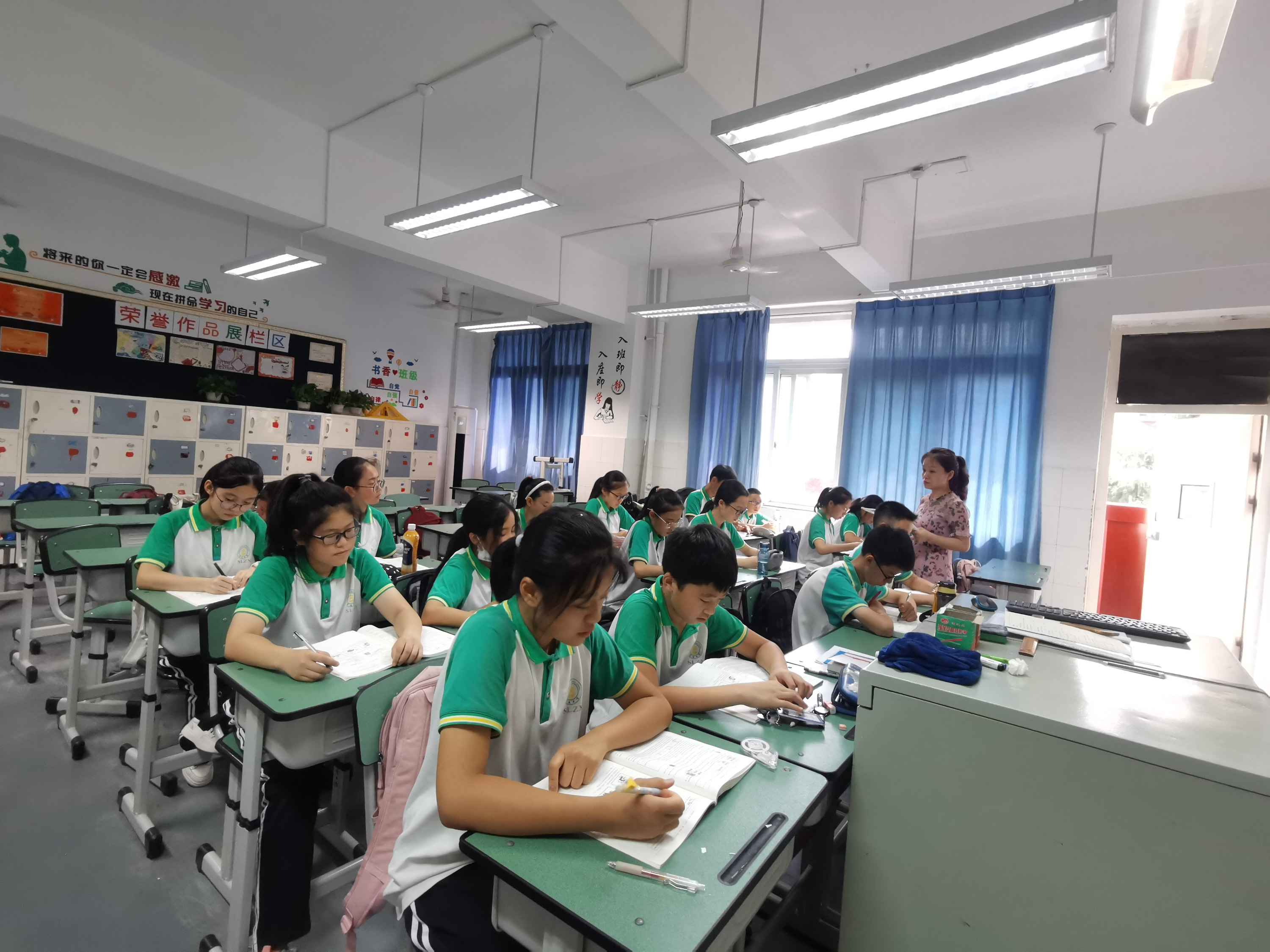 1:秦圣懿老師守著同學(xué)們做作業(yè)