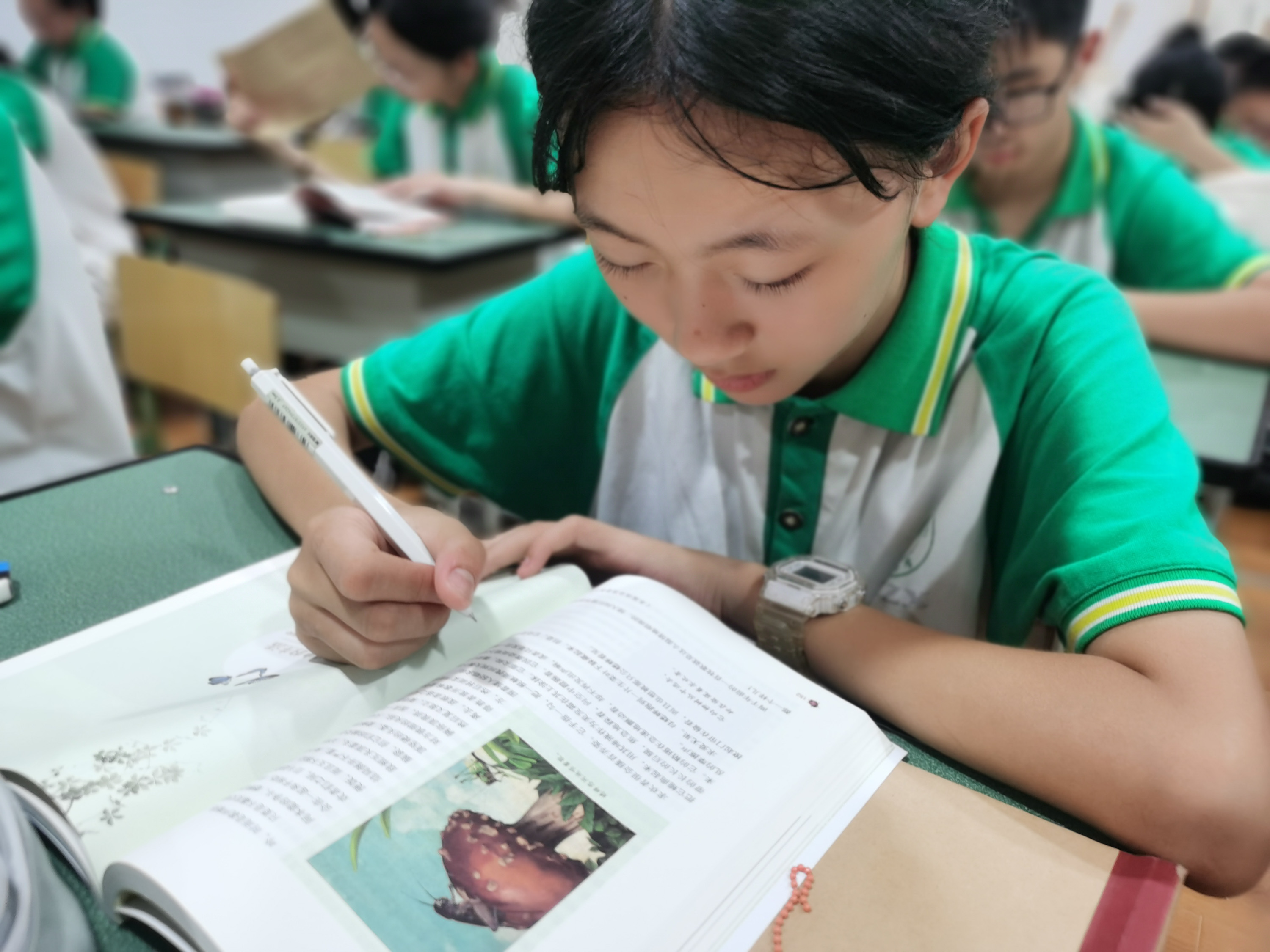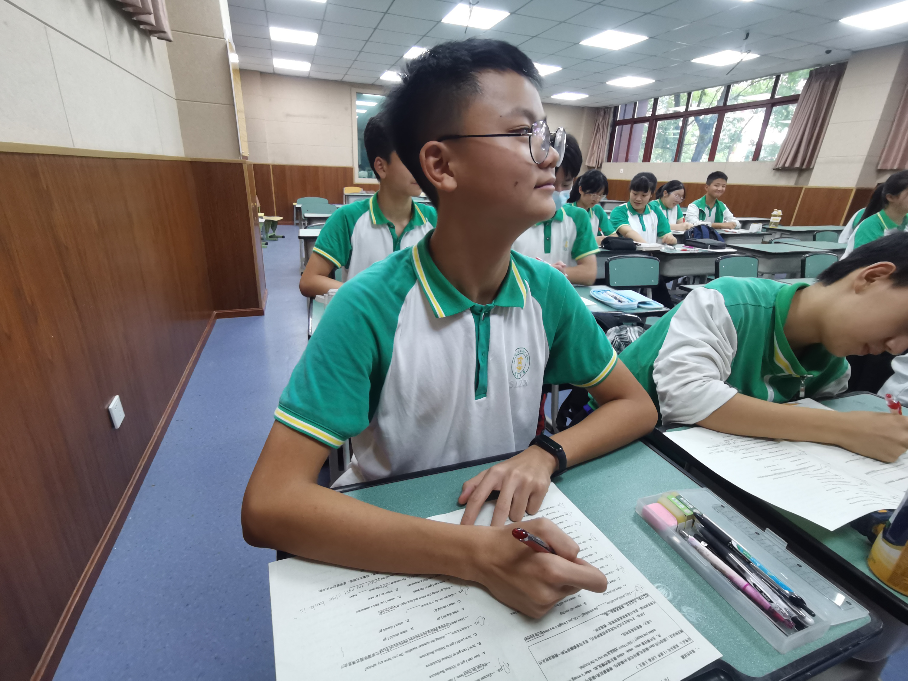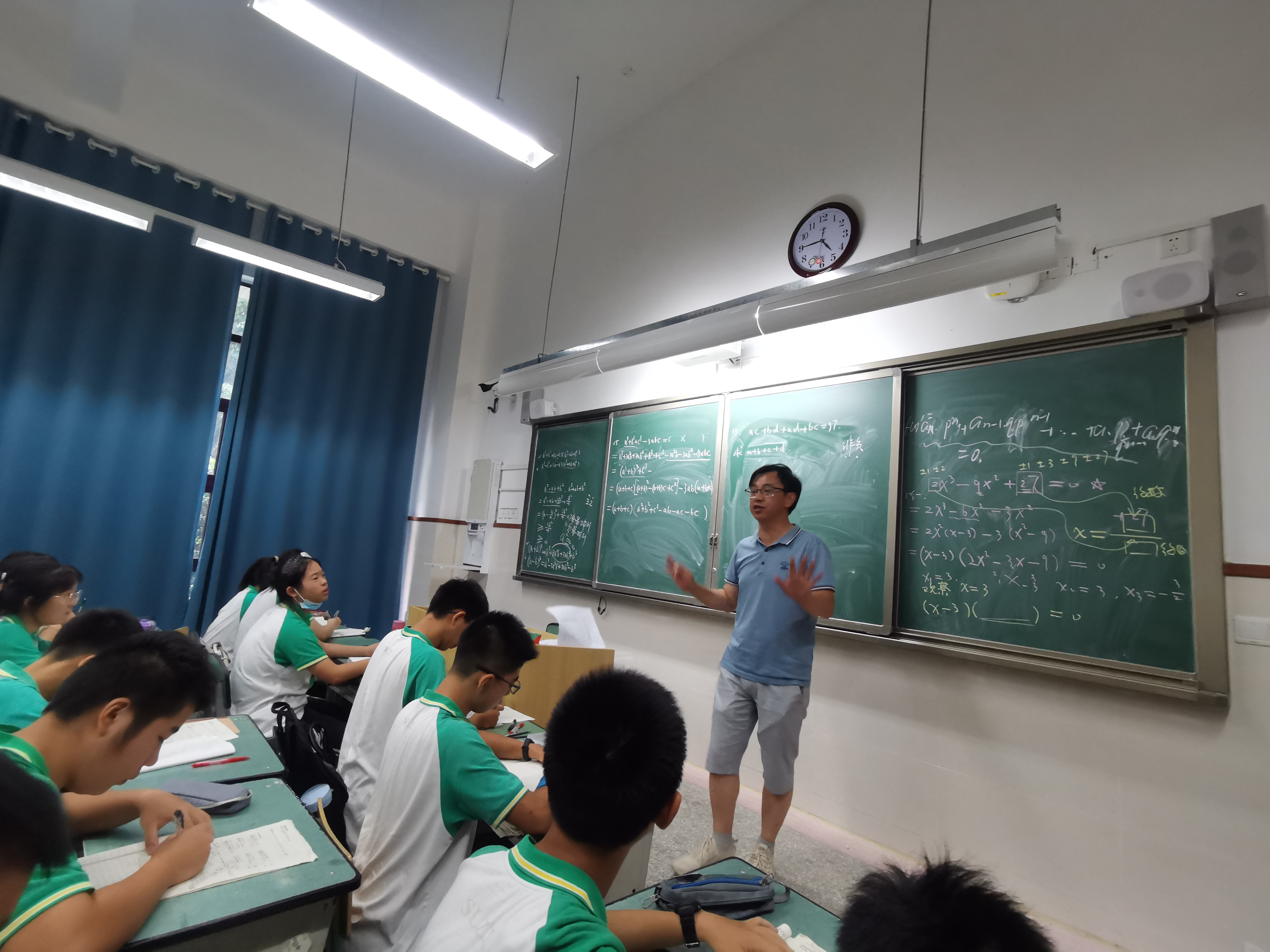 在歷史課堂上,林俊言老師帶我們走了一趟跨世紀(jì)的旅途,巧用比喻,把教室當(dāng)做遺跡,同學(xué)們成了文物,還利用盜墓筆記和真實(shí)考古的對比,讓我們明白兩者的區(qū)別。同學(xué)們個(gè)個(gè)都是興趣盎然,身臨其境,課堂氣氛活躍,知識巧入心中。在語文課堂上,朱建彬老師帶我們走了一趟趣味語文之旅,細(xì)數(shù)同學(xué)們?nèi)∶拇笾v究,又具體講了名與字的關(guān)系,課堂上一句句好詩妙句層出不窮,大家還踴躍積極地為自己取字。在數(shù)學(xué)課堂上,曹軍才老師帶我們走了一趟思維之旅。課上,曹老師豪氣地說:“在我的課堂上,大家可以自由地站起來發(fā)言!”此言一出,思想火花的碰撞更為猛烈,一題多解,簡妙方法,各個(gè)都讓同學(xué)們驚訝不已,連連贊嘆,對數(shù)學(xué)課堂流連忘返,都忘了下課時(shí)間呢!如此優(yōu)秀的教師天團(tuán),如此優(yōu)良的教育師資,俗話說:師傅領(lǐng)進(jìn)門,修行靠個(gè)人,同學(xué)們也要博學(xué)奮斗,砥礪前行,爭做篤志雙中人。