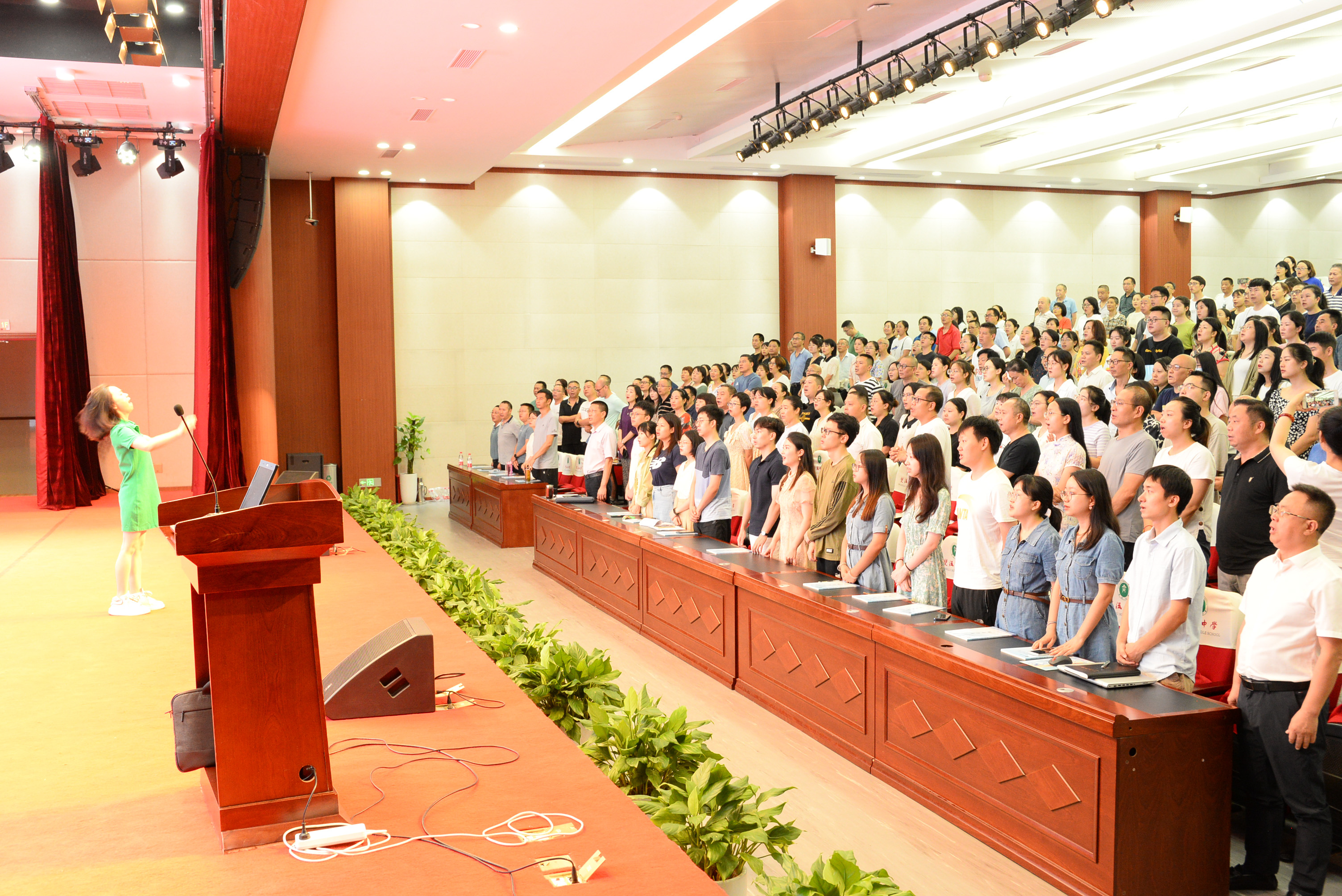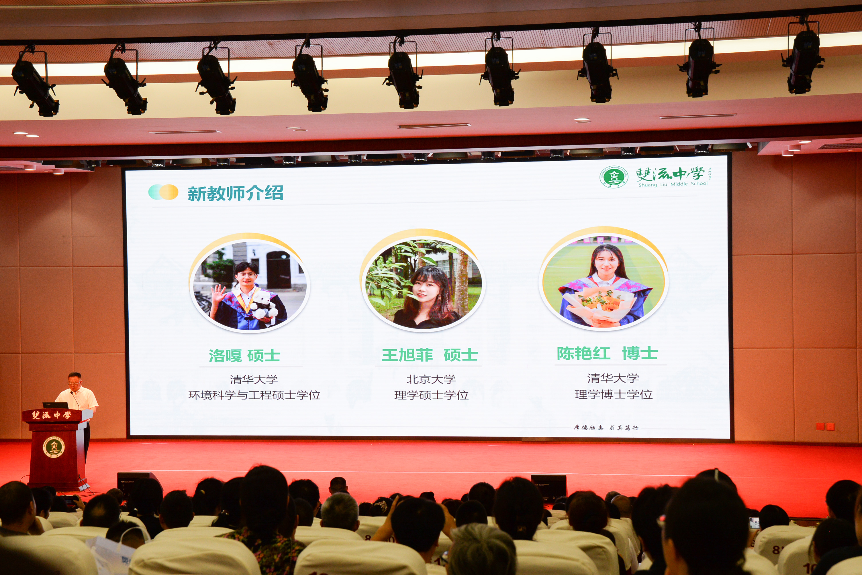 校歌承載了學校的精神與師生的情感,會議伊始,全體教職工在音樂老師覃嘉宣的指揮下,熱情洋溢地齊唱雙中校歌。“努力吧,努力吧,雙中人......”熟悉的旋律在玉蘭廳上響起,這是獨屬于雙中的精神。