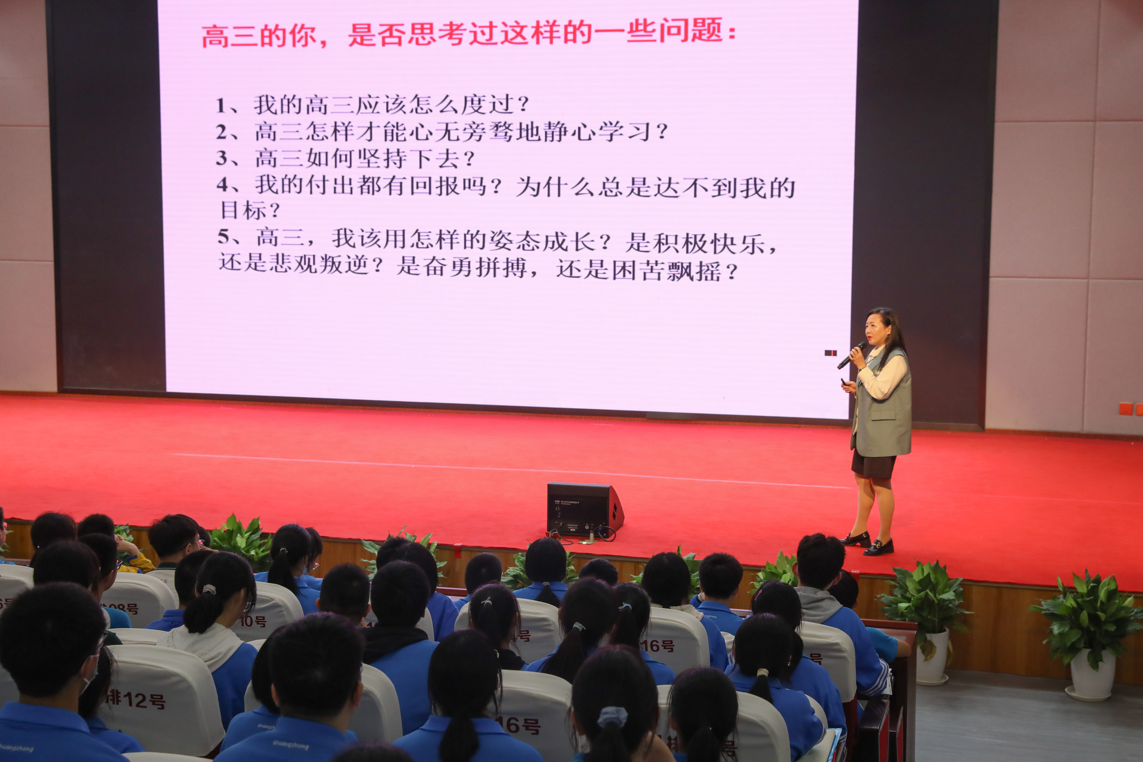 雙流中學(xué)黨委副書記、副校長譚紅對高三學(xué)子進(jìn)行了學(xué)法指導(dǎo)培訓(xùn)會