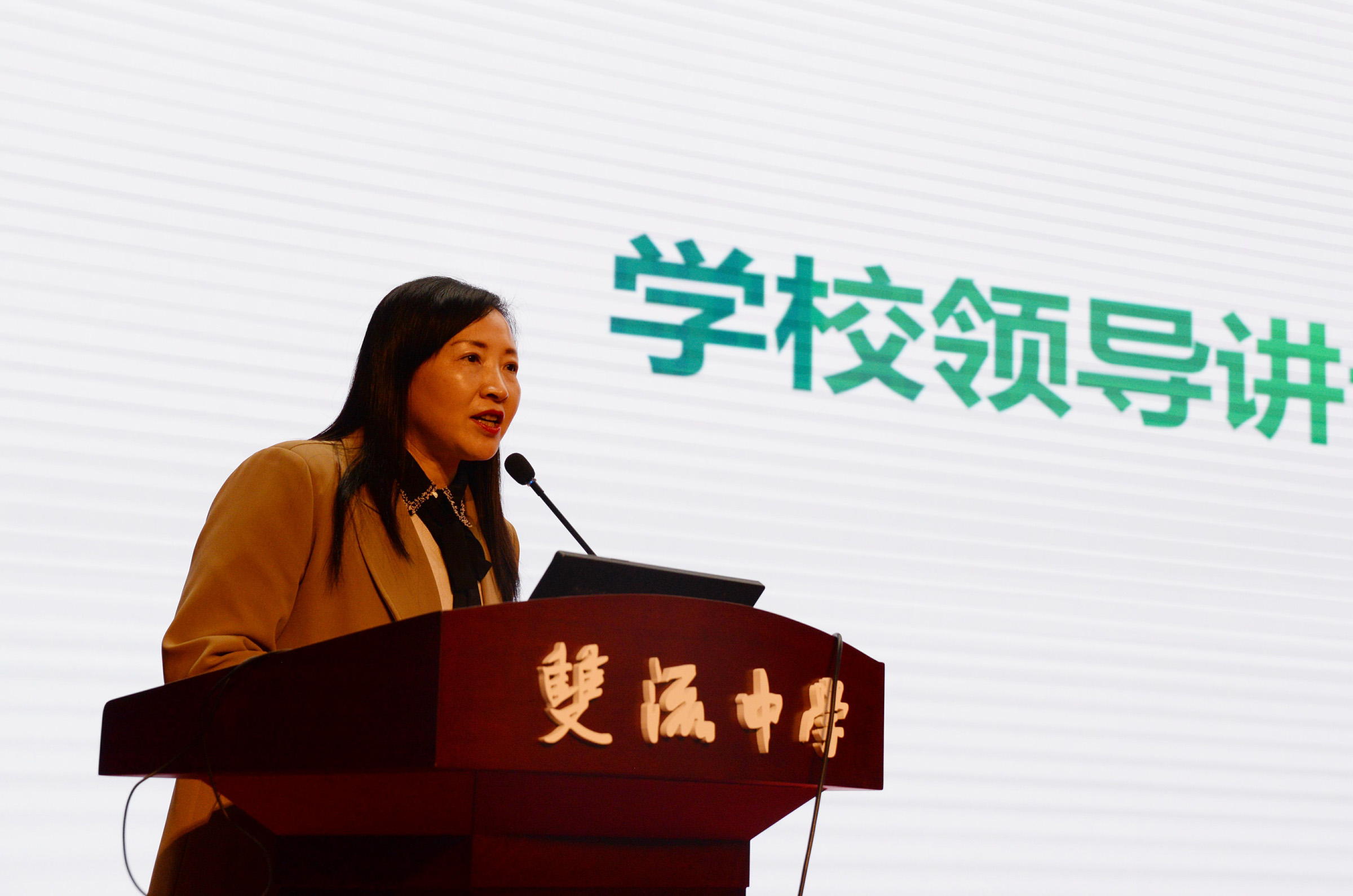 隨即,指導(dǎo)教師代表唐文莉老師帶來了她的發(fā)言。唐老師表示,自己非常榮幸能作為老教師中的一員來這里交流,她定將不負(fù)這份榮譽(yù)和責(zé)任,發(fā)揮好師傅的 “傳、幫、帶”作用,讓雙流中學(xué)老帶新的優(yōu)良傳統(tǒng)能更好地賡續(xù)。唐老師感謝學(xué)校搭建了這個真誠合作,共同促進(jìn)的平臺,并衷心祝愿年青教師們“青出于藍(lán)而勝于藍(lán)“。