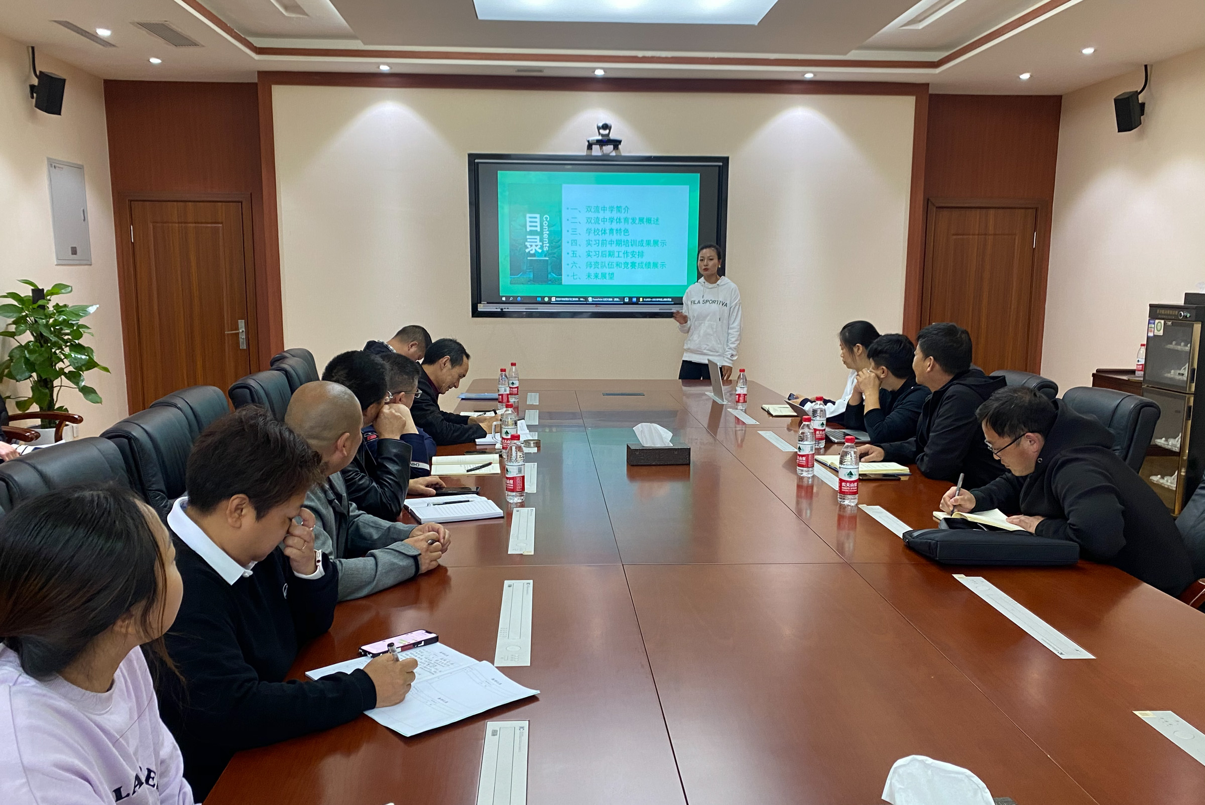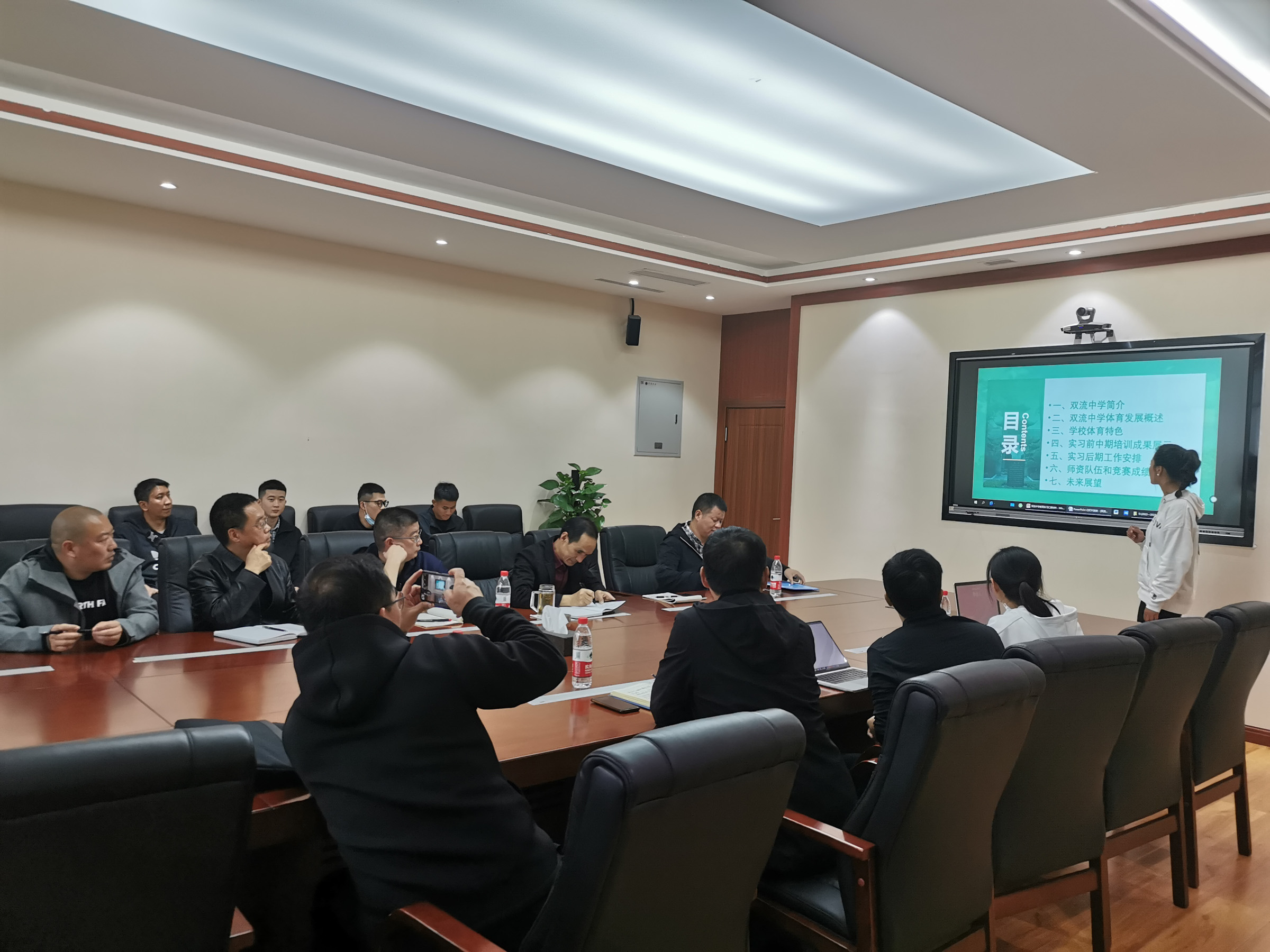 2022年11月2日,成都體育學院體育教育學院院長吳向明、《學校體育學》課程組主任柴云梅、體能訓練中心主任涂宴豪、學管辦主任姚國超一行四人,在雙流區(qū)體育教研員游海峰老師的陪同下,到雙流中學考察教育實習工作。雙流中學藝體處主任張仕貴、外事處副主任譚書華帶領體育組全體教師熱情接待,并組織開展了教育實習座談會。