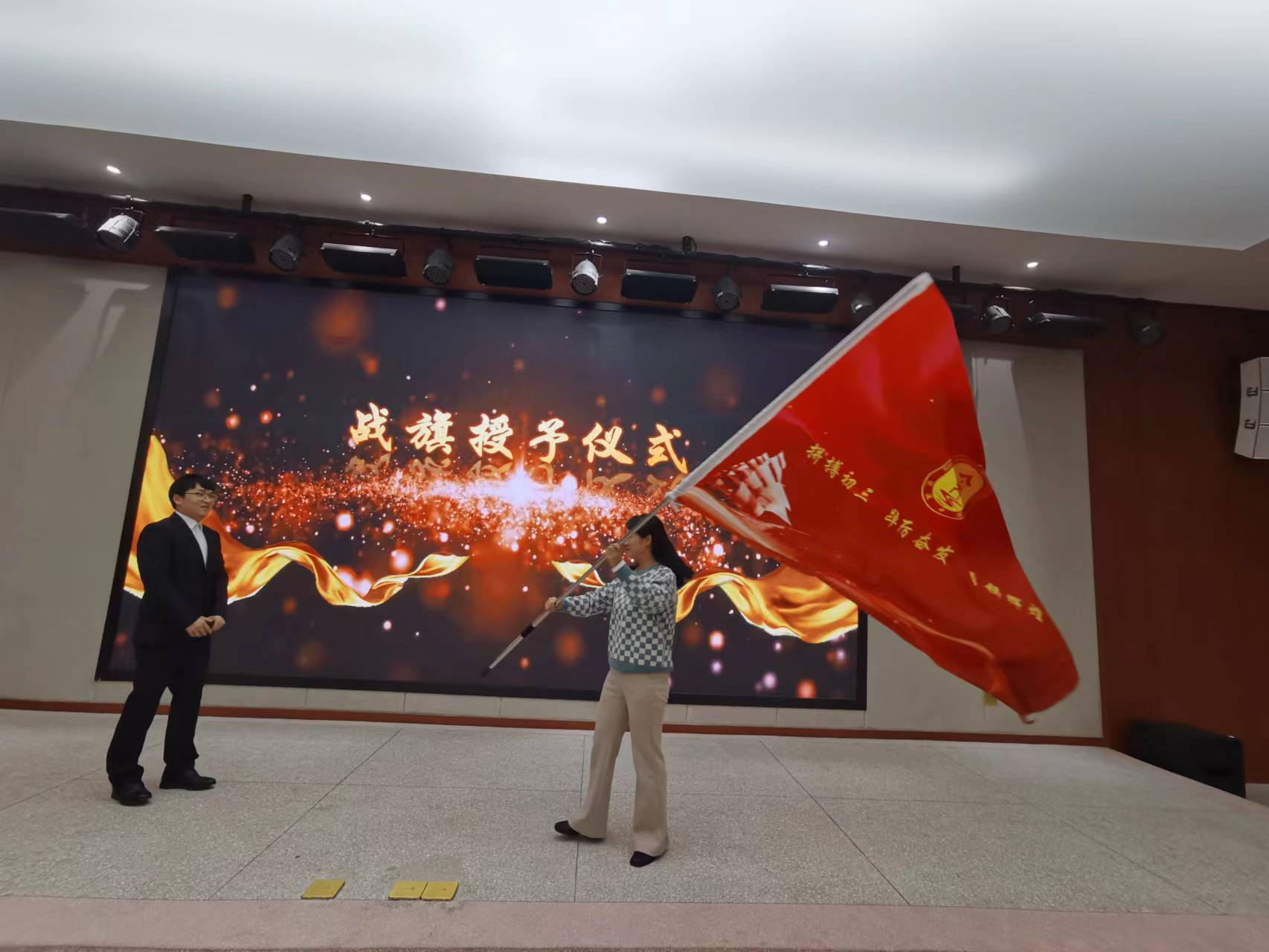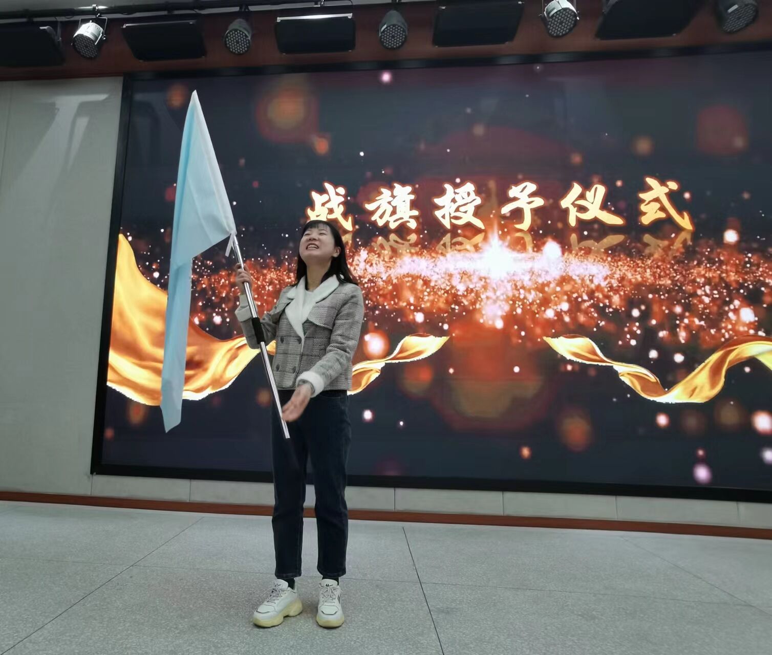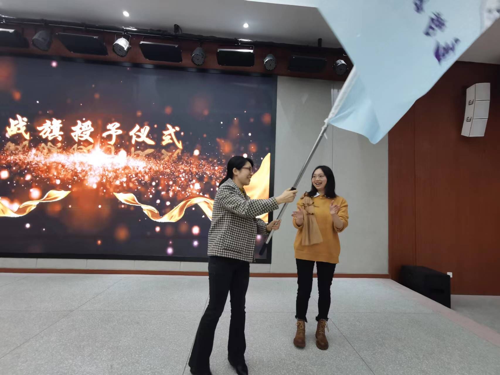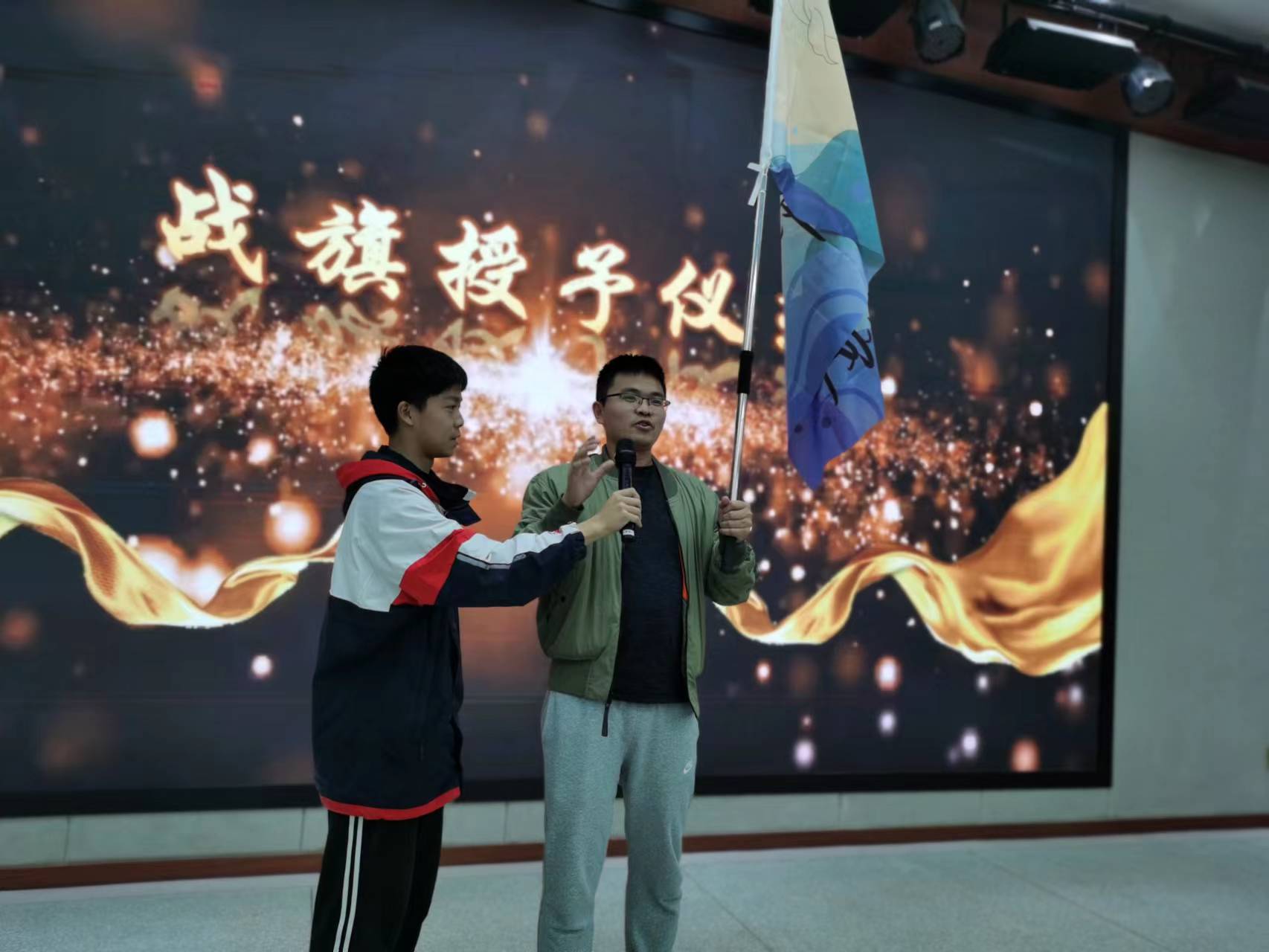 郝主任向九年級(jí)年級(jí)組長(zhǎng)林俊彥授旗