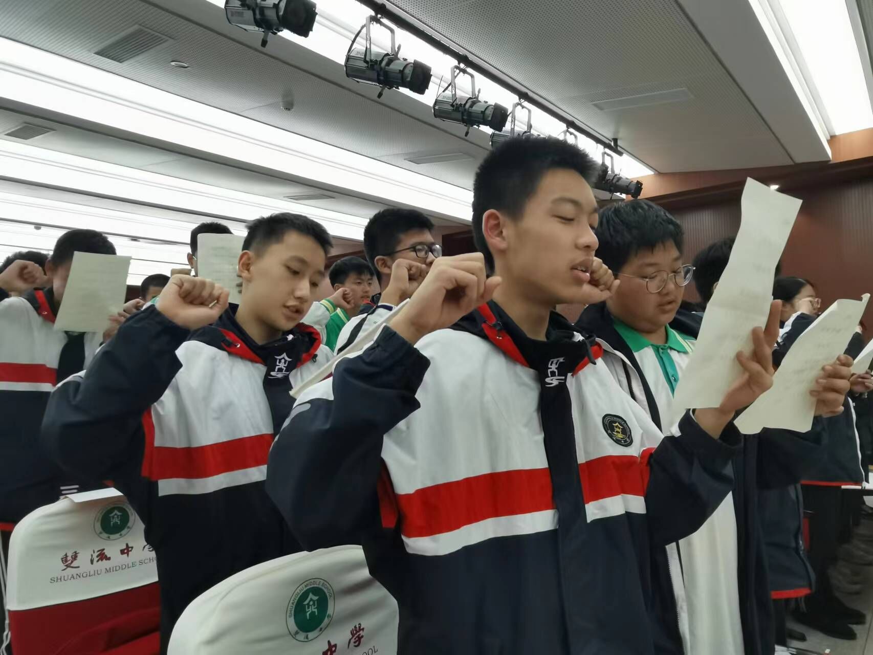 大會(huì)最后,在九年級(jí)一班汪奕多同學(xué)的帶領(lǐng)下,初2020級(jí)全體同學(xué)莊嚴(yán)宣誓: