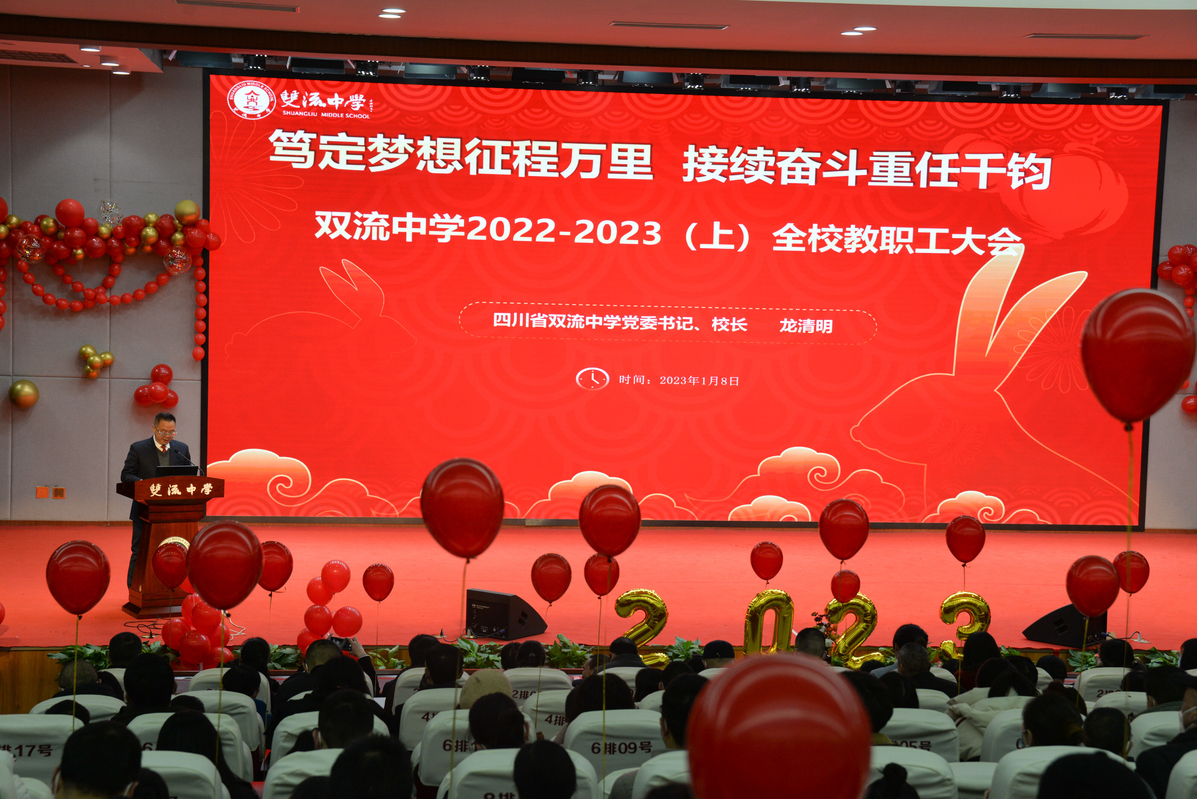 2022年1月8日16:00,雙流中學(xué)于玉蘭廳召開雙流中學(xué)教職工總結(jié)大會暨迎新。全體教職工齊聚一堂,作別波瀾壯闊的2022,攜手喜迎充滿期待的2023年。