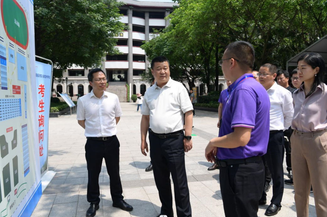 走進(jìn)雙流中學(xué)考點(diǎn),歐昭書記逐一踏勘考點(diǎn)流線設(shè)置情況,走訪考點(diǎn)廣播室、監(jiān)控室、食堂等服務(wù)保障區(qū)域,察看考點(diǎn)布置、安檢、食宿等各環(huán)節(jié)工作情況,聽取考點(diǎn)周邊交通組織、應(yīng)急保障等工作匯報(bào),并慰問一線工作人員。