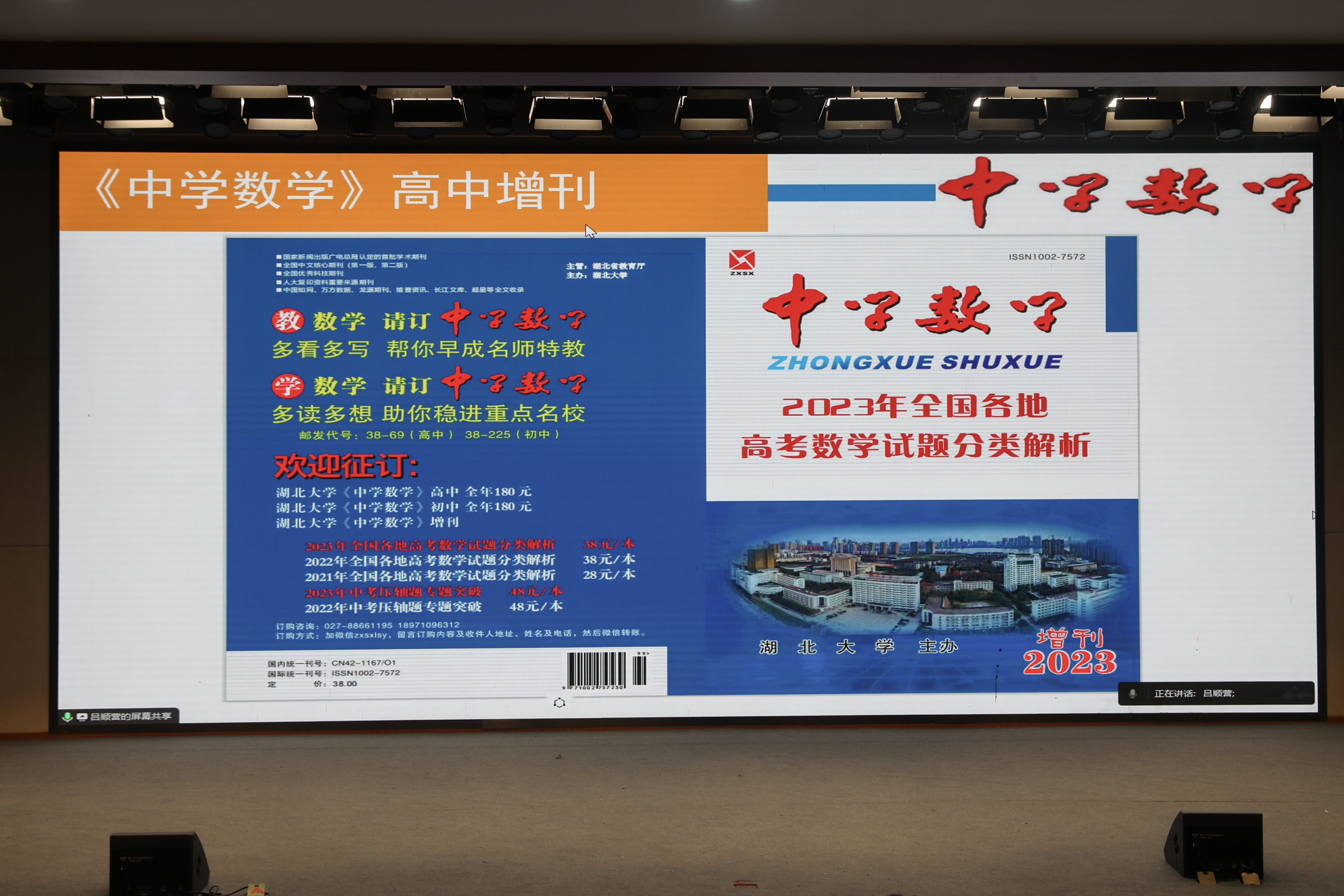然后,湖北大學(xué)《中學(xué)數(shù)學(xué)》雜志社主編呂順營(yíng)教授致辭。呂教授強(qiáng)調(diào),通過(guò)講題比賽的形式,推動(dòng)師生深入研究高考真題,提高教師的教研能力,進(jìn)而提升學(xué)生的解題能力,促進(jìn)學(xué)生綜合能力發(fā)展。解題比賽的質(zhì)量逐年提高,規(guī)模逐年增大,越來(lái)越多的師生投入講題比賽,充分交流解題方法與心得。
