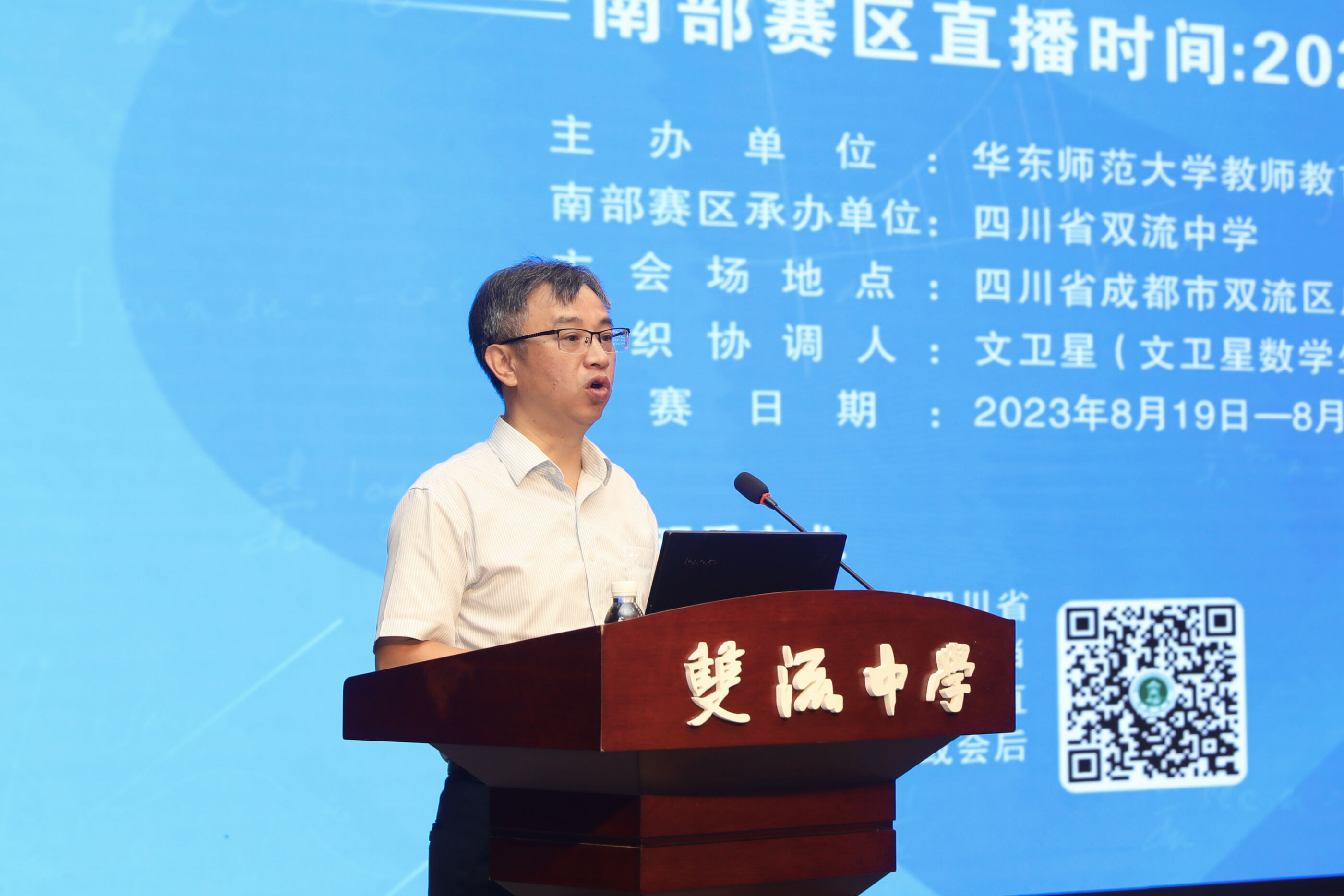 2023年8月19日,由華東師范大學(xué)教師教育學(xué)院和湖北大學(xué)《中學(xué)數(shù)學(xué)》雜志社聯(lián)合主辦的“2023年全國(guó)高考數(shù)學(xué)講題比賽暨高考試卷評(píng)析研討會(huì)”在雙流中學(xué)(南部賽區(qū))舉辦。會(huì)議由上海市知名特級(jí)教師文衛(wèi)星(文衛(wèi)星數(shù)學(xué)生態(tài)課堂公眾號(hào)主持人)組織協(xié)調(diào)。此次會(huì)議共兩天,第一天為講題比賽,第二天為試卷評(píng)析與專家點(diǎn)評(píng)。會(huì)議由四川省特級(jí)教師、雙流中學(xué)數(shù)學(xué)教研組長(zhǎng)曹軍才主持。
