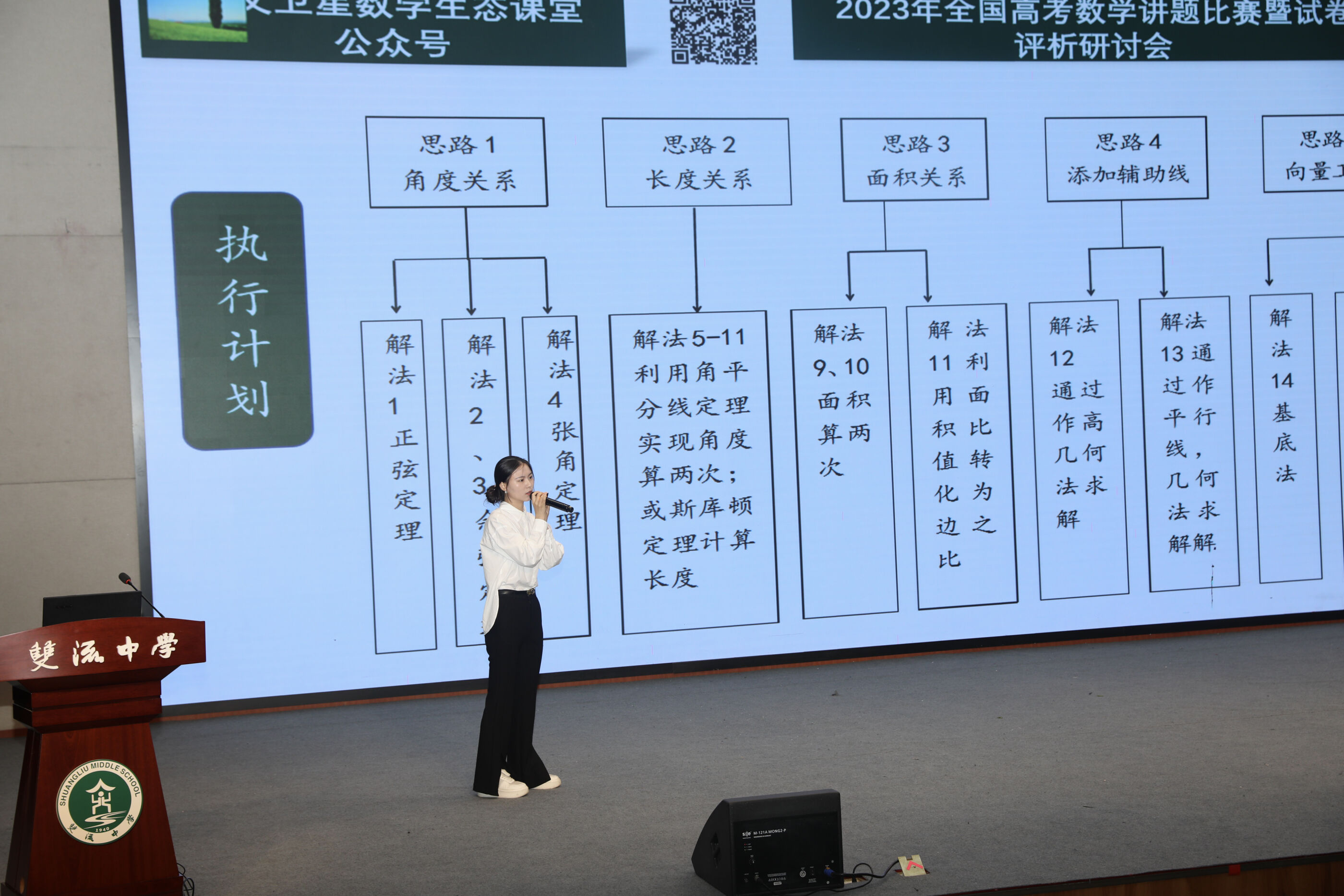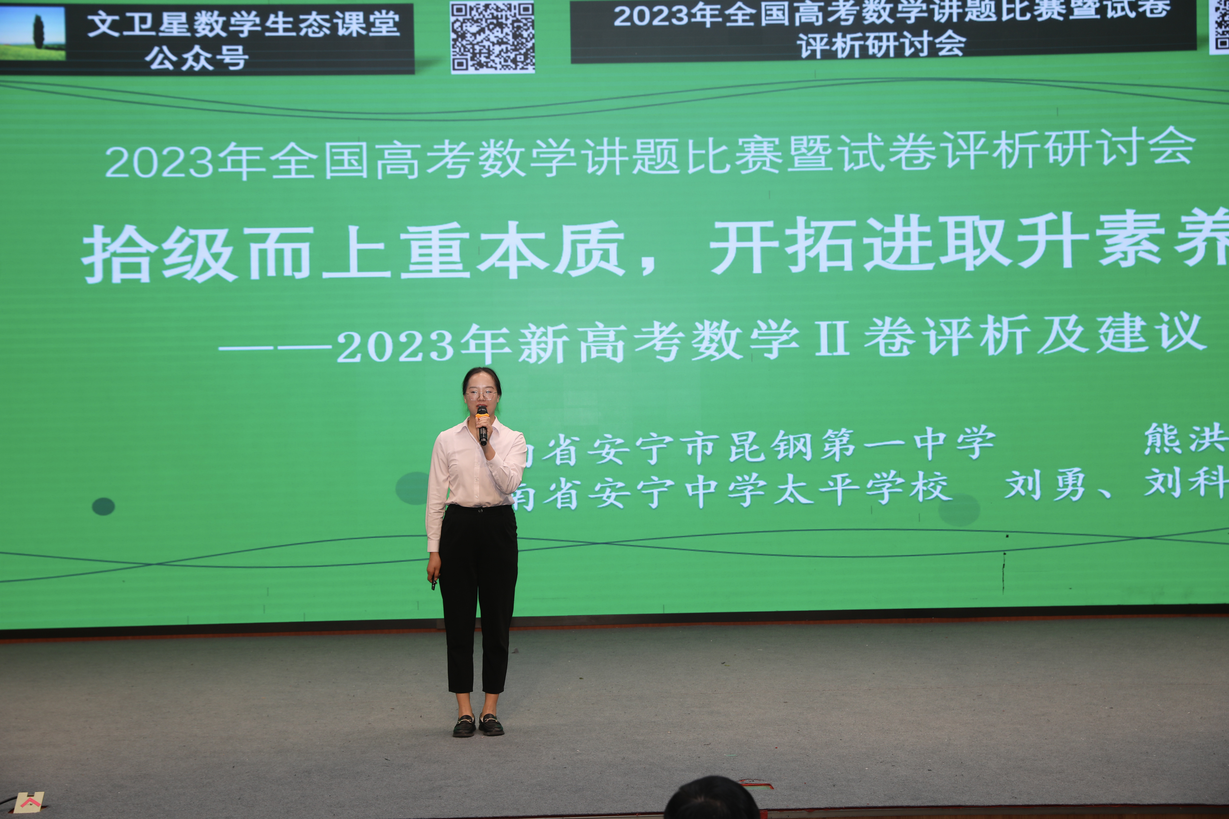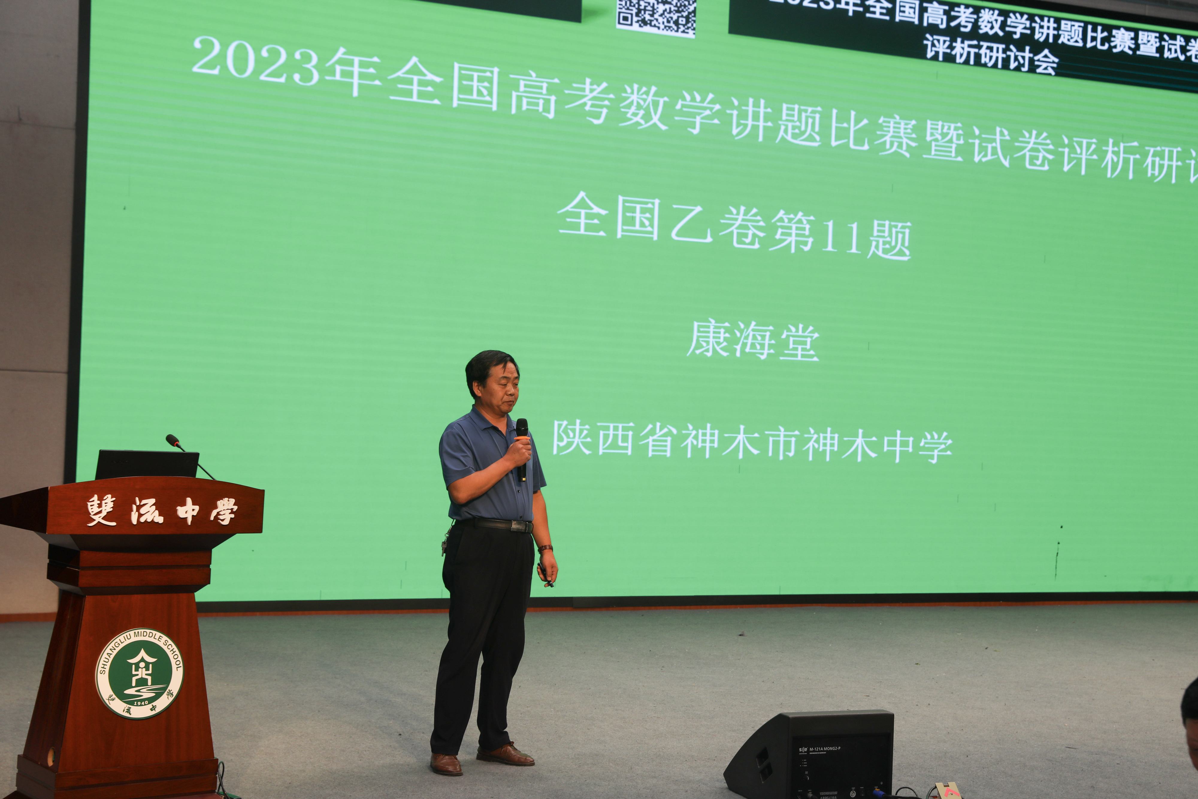 2023年8月20日,由華東師范大學(xué)教師教育學(xué)院和湖北大學(xué)《中學(xué)數(shù)學(xué)》雜志社聯(lián)合主辦的“2023年全國(guó)高考數(shù)學(xué)講題比賽(南部賽區(qū))暨高考試卷評(píng)析研討會(huì)”在雙流中學(xué)繼續(xù)舉行。會(huì)議由上海市知名特級(jí)教師文衛(wèi)星(文衛(wèi)星數(shù)學(xué)生態(tài)課堂公眾號(hào)主持人)組織協(xié)調(diào)。此次會(huì)議共兩天,第一天主要為講題比賽上半部分,第二天為講題比賽下半部分和試卷評(píng)析與專家點(diǎn)評(píng)、公布獲獎(jiǎng)代表隊(duì)。第二天的會(huì)議由四川省特級(jí)教師、雙流中學(xué)數(shù)學(xué)教研組長(zhǎng)曹軍才老師主持。
