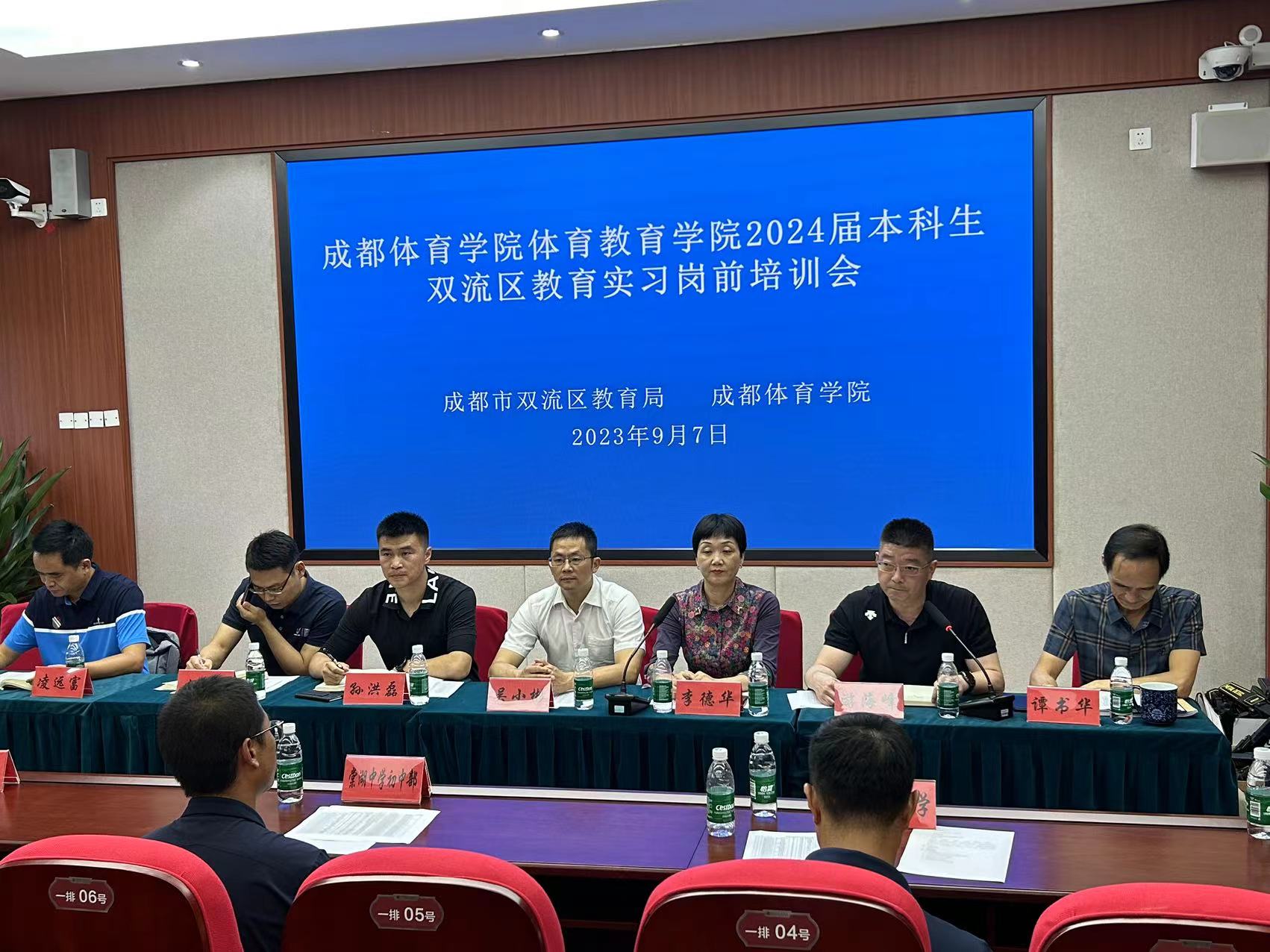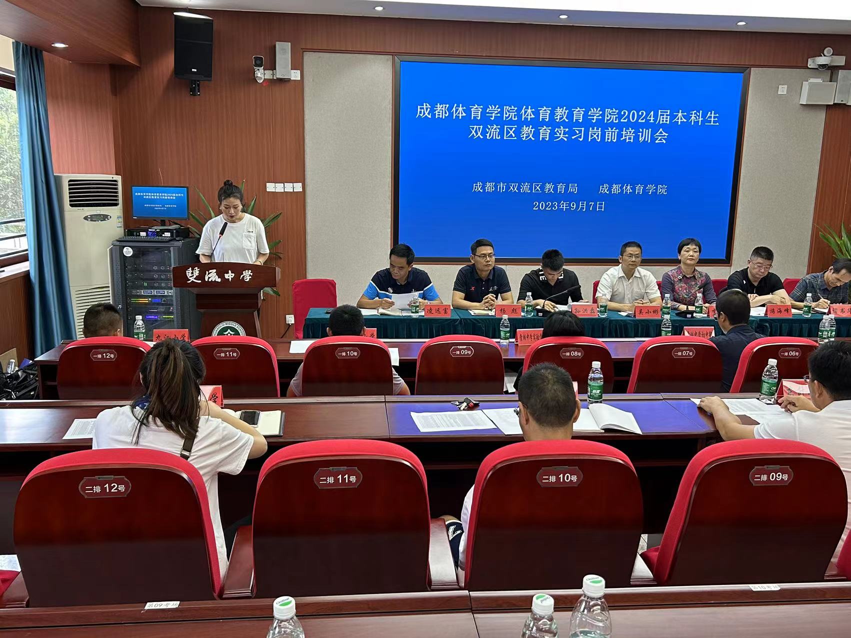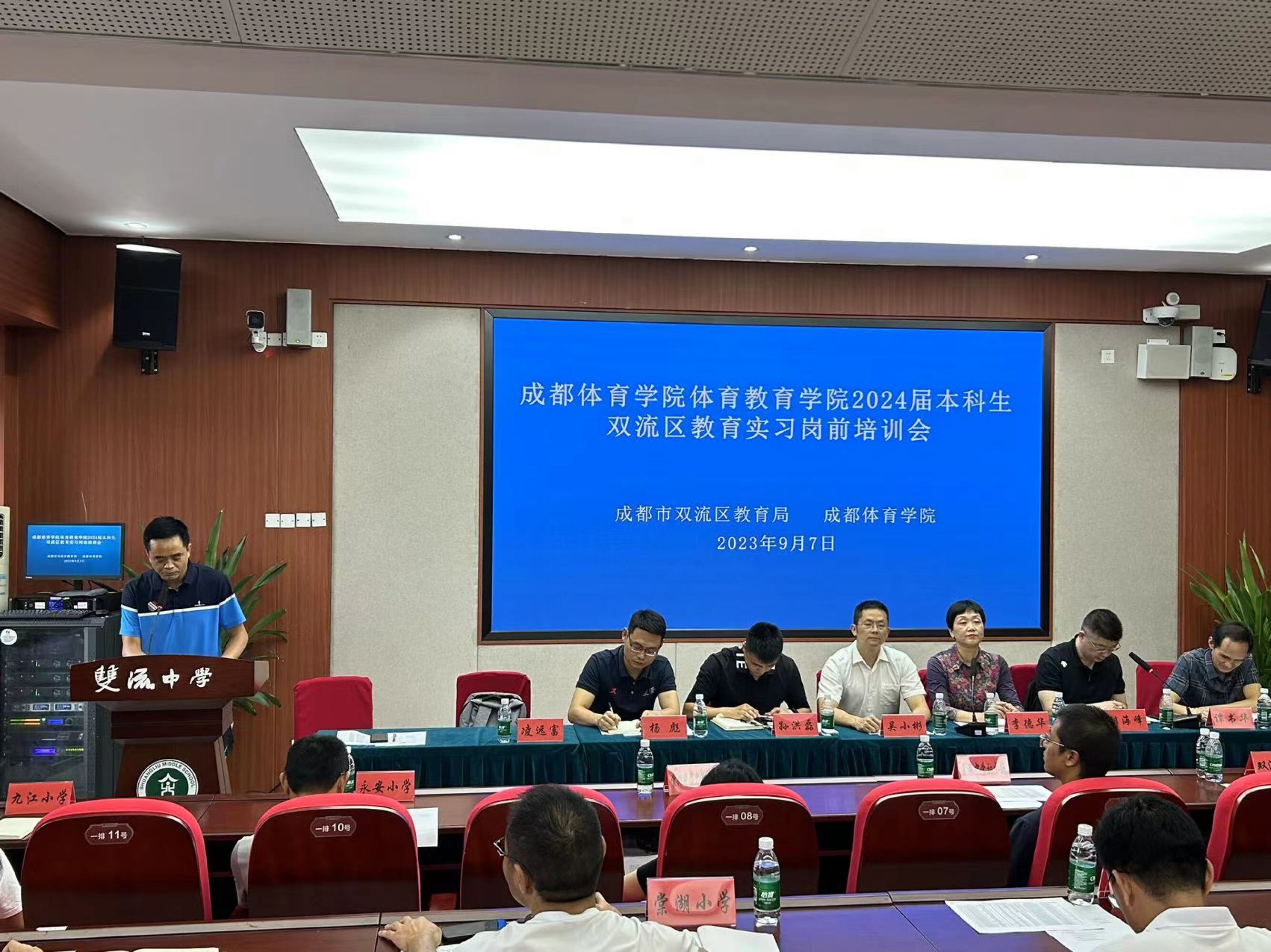 2023年9月7日,成都體育學(xué)院體育教育學(xué)員2024屆本科生雙流區(qū)教育實習(xí)崗前培訓(xùn)會在雙流中學(xué)舉行。