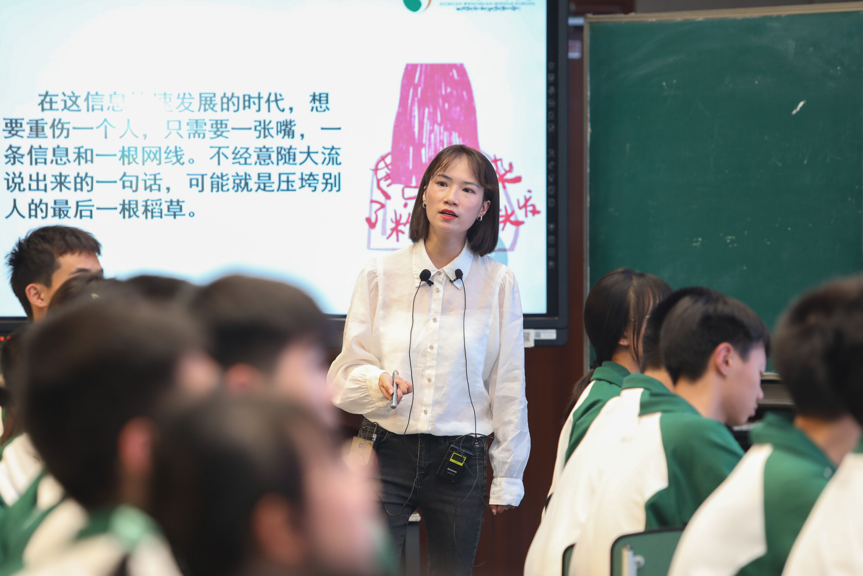 汶川中學(xué)蔣艾岑老師的展評課《云上花蕾——積極應(yīng)對網(wǎng)絡(luò)語言暴力》