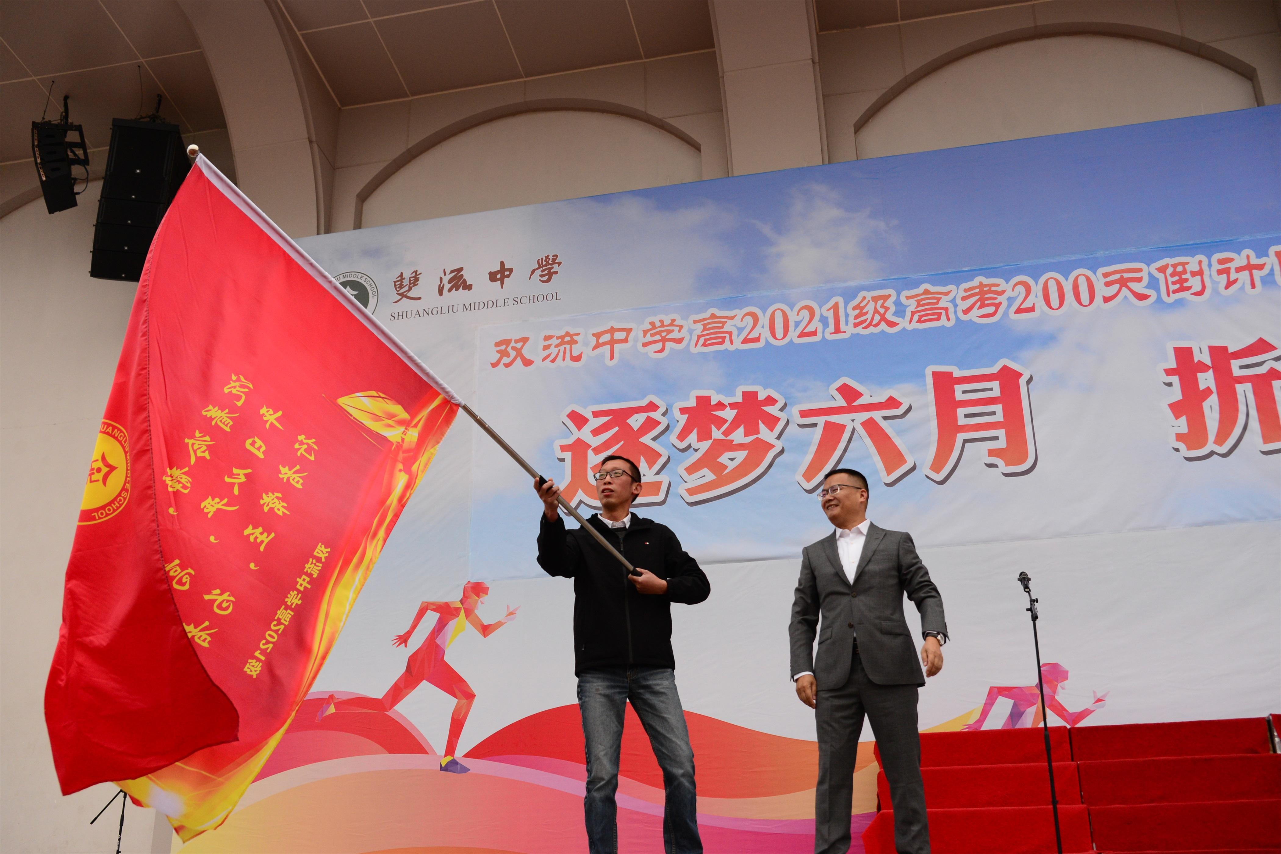 伴隨著響遏行云的鼓聲,校長黃超慷慨激昂地宣讀了旗幟宣誓旗。新的旅途,新的征程,授旗是高三動員大會的傳統(tǒng)項目。旗幟由黃超校長手中傳遞至高三年級姚光橋主任手里,這是極大的認可和信任,更是一份沉甸甸的期望與責任。姚主任揮舞著旗幟,揮舞出了激昂的信心,揮舞出了必勝的決心,師生們的信念、力量亦凝聚在其中。我們堅信高2021級學子定能在2024年的高考中為我校再續(xù)新的輝煌。