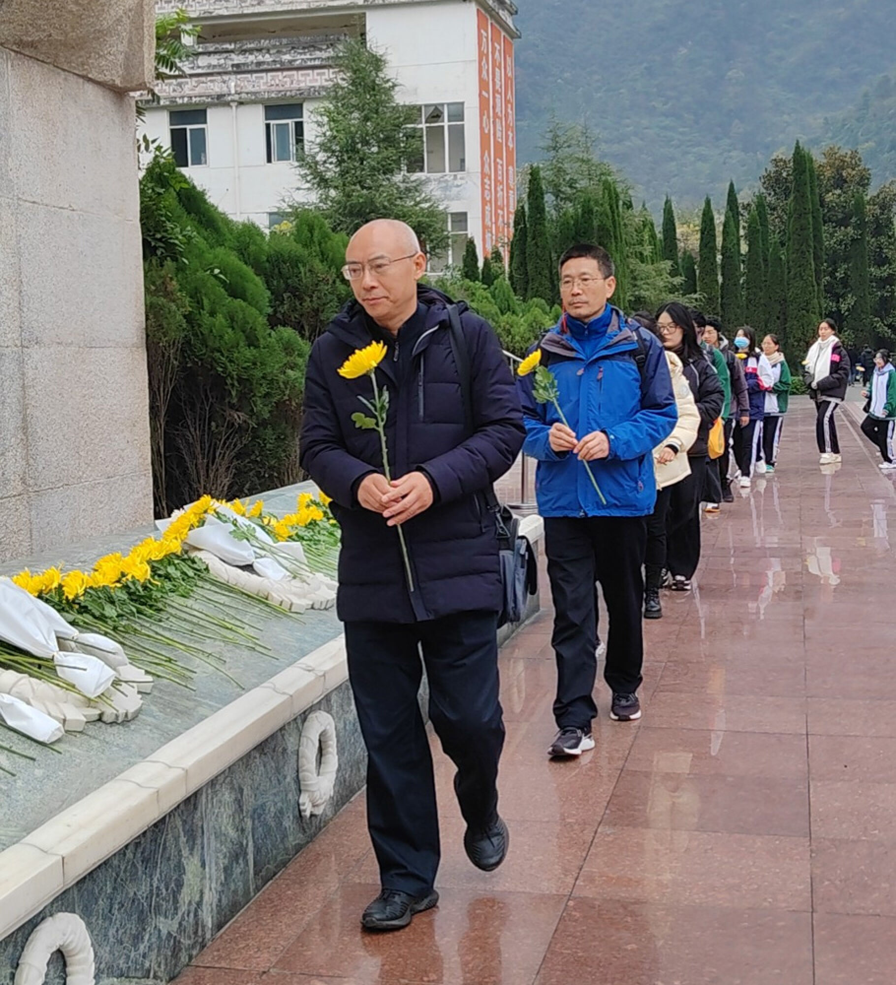 圖片5 在漩口中學遺址祭奠、獻花