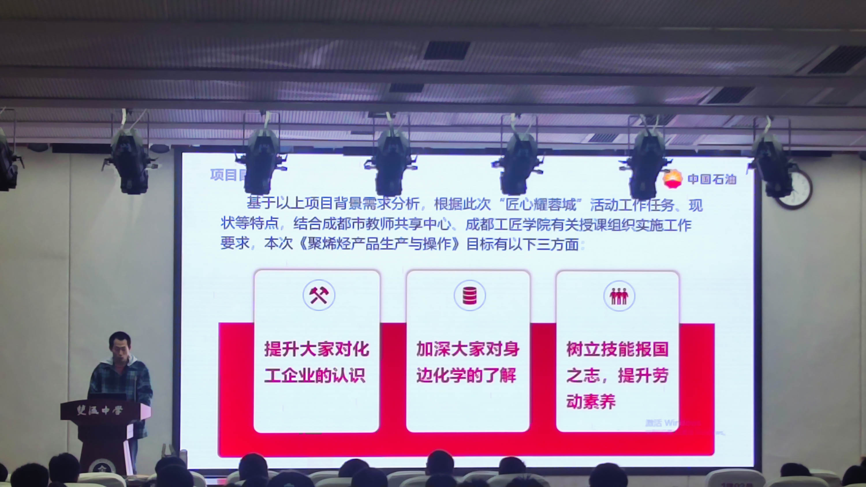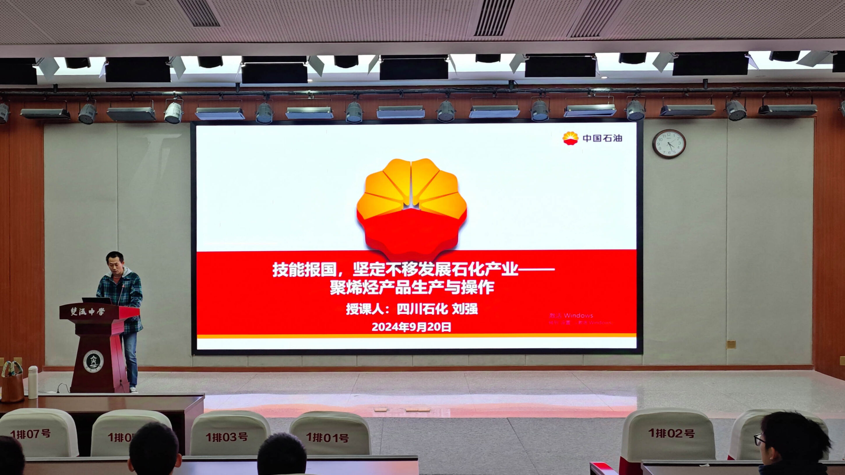 本期“玉蘭講堂”以“匯才共享,匠心耀蓉城”為主題,特邀四川石化劉強(qiáng)先生為高二同學(xué)帶來《技能報(bào)國,堅(jiān)定不移發(fā)展石化產(chǎn)業(yè)——聚烯烴產(chǎn)品生產(chǎn)與操作》的講座。