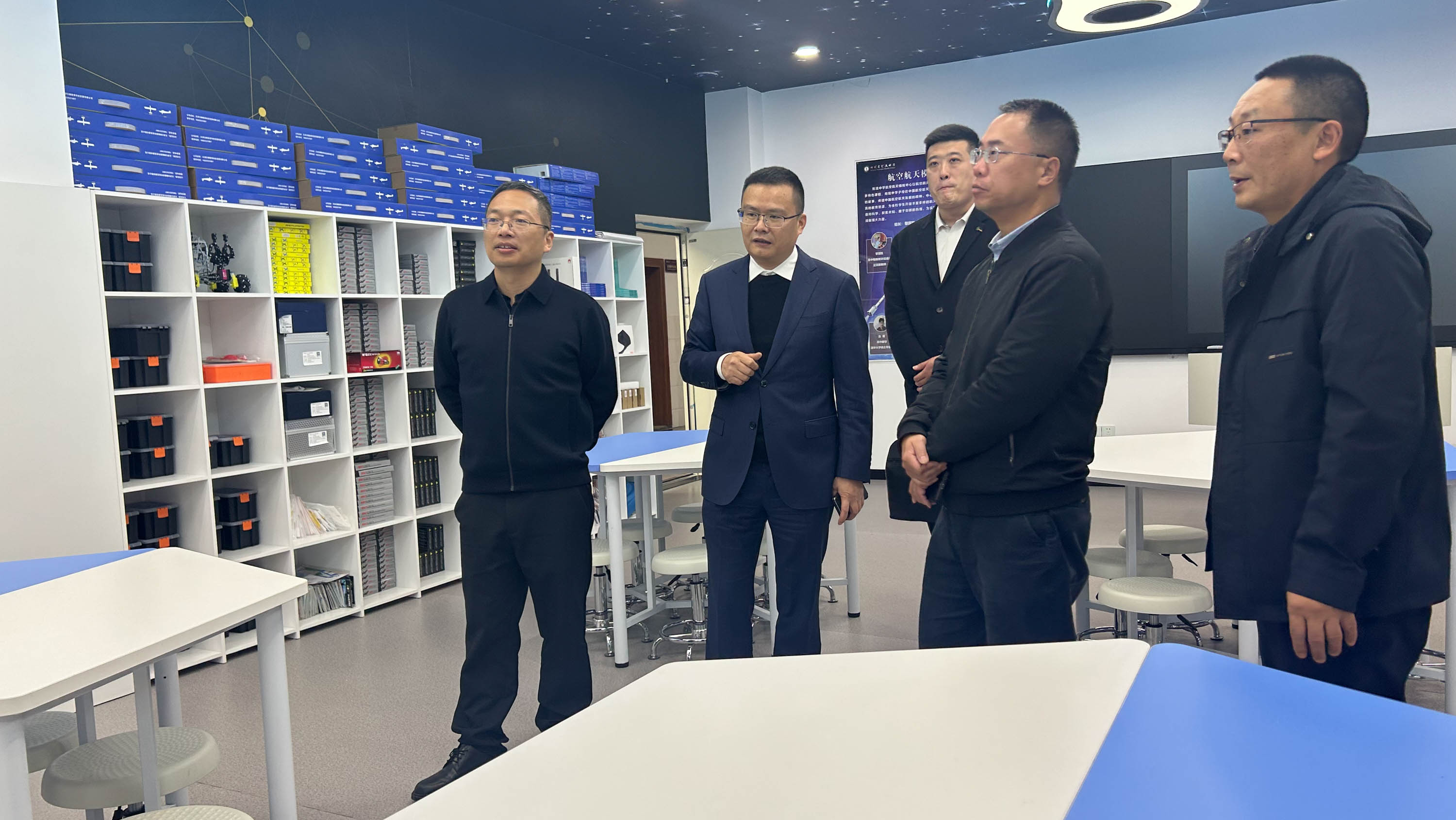 調研的序章,在雙流中學的三大中心——航天航空中心、天問中心與心理發(fā)展中心奏響。航天航空中心,仿佛一扇通往浩瀚宇宙的門戶,精密的模型、先進的設備,無不彰顯著雙流中學在航空教育領域的深厚底蘊與前瞻布局。天問中心如同一顆璀璨的星辰,引領著學生們探索未知的奧秘,激發(fā)著他們對科學的無限熱愛。心理發(fā)展中心,則是學生們心靈的港灣,溫馨的環(huán)境、專業(yè)的指導,為他們的成長保駕護航。譚忠毅處長一行對雙流中學在航空教育方面的創(chuàng)新與實踐給予了高度評價,并期待未來能在招生與人才培養(yǎng)方面開展更深層次的合作與交流。