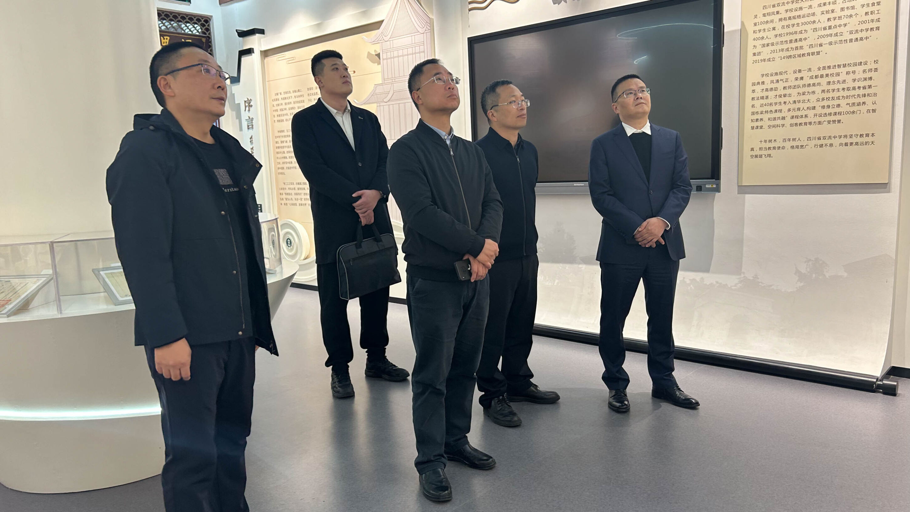 隨后,一行人移步至雙流中學校史陳列館,這里珍藏著學校自創(chuàng)立以來的珍貴史料與榮譽勛章。在黃超書記的介紹中,來賓們仿佛穿越時空,親歷了雙流中學從初創(chuàng)到輝煌的每一個歷史瞬間。校史陳列館不僅是對過去的回顧,更是對未來的期許。它激勵著每一位師生,不忘初心,砥礪前行,為航空事業(yè)貢獻自己的力量。譚忠毅處長對雙流中學的歷史傳承與輝煌成就表示由衷的敬佩,并期待雙方能在未來的合作中,共同書寫新的輝煌篇章。