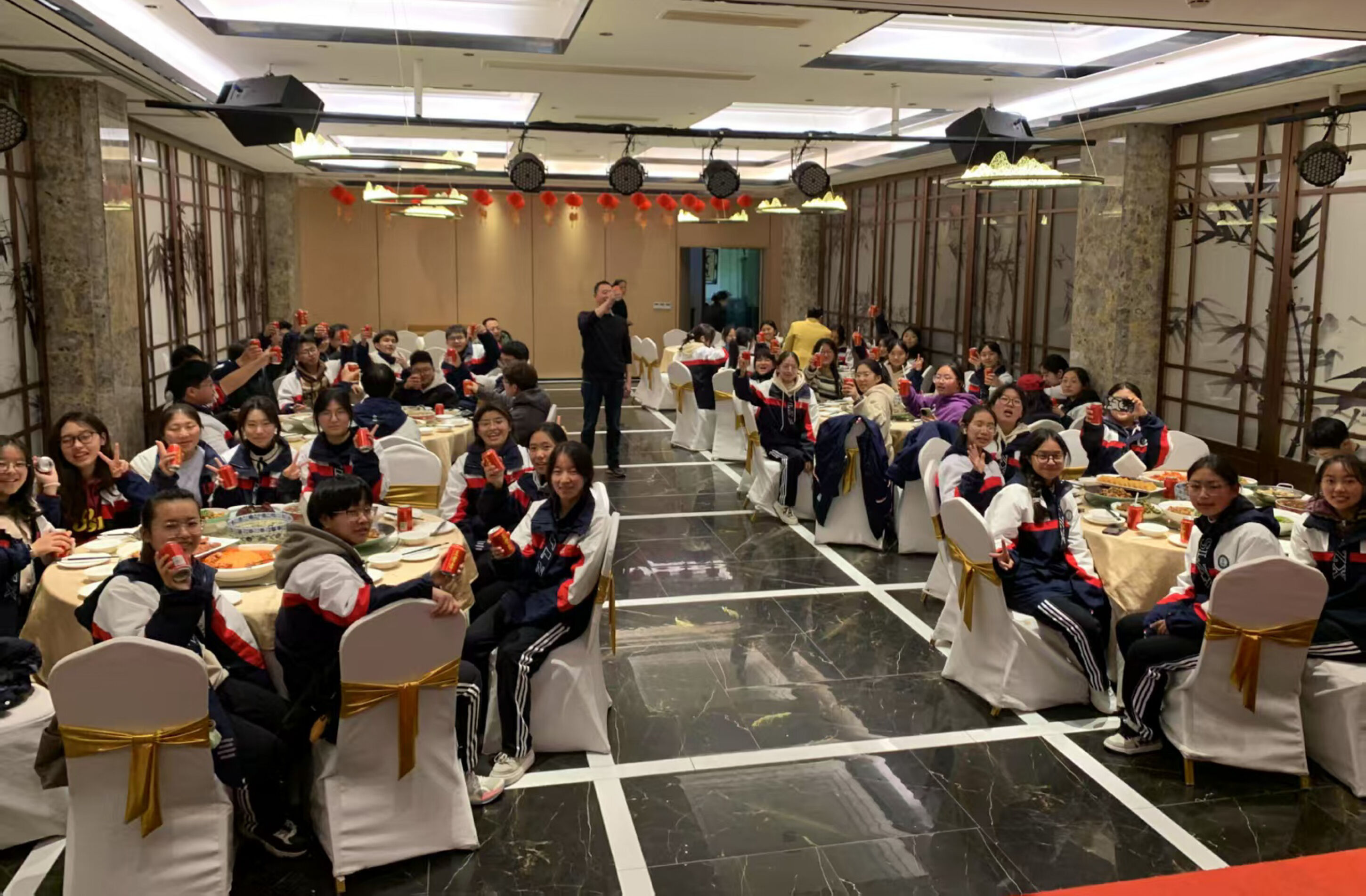 下午,學(xué)校組織同學(xué)們?cè)谒囆g(shù)樓音樂教室開展聯(lián)歡會(huì)活動(dòng),盡情釋放節(jié)日的歡愉情緒,即使遠(yuǎn)離家鄉(xiāng),但同學(xué)們?nèi)阅芨惺艿綄W(xué)校的關(guān)懷,老師的關(guān)心及家庭的溫暖。聯(lián)歡會(huì)活動(dòng)中,同學(xué)們合唱藏族歌曲,齊跳藏族鍋莊舞,伴著歡快輕巧的音樂,同學(xué)們載歌載舞,臉上都洋溢著新年的快樂笑容?,F(xiàn)場(chǎng)充滿歡聲笑語,氣氛溫馨浪漫。