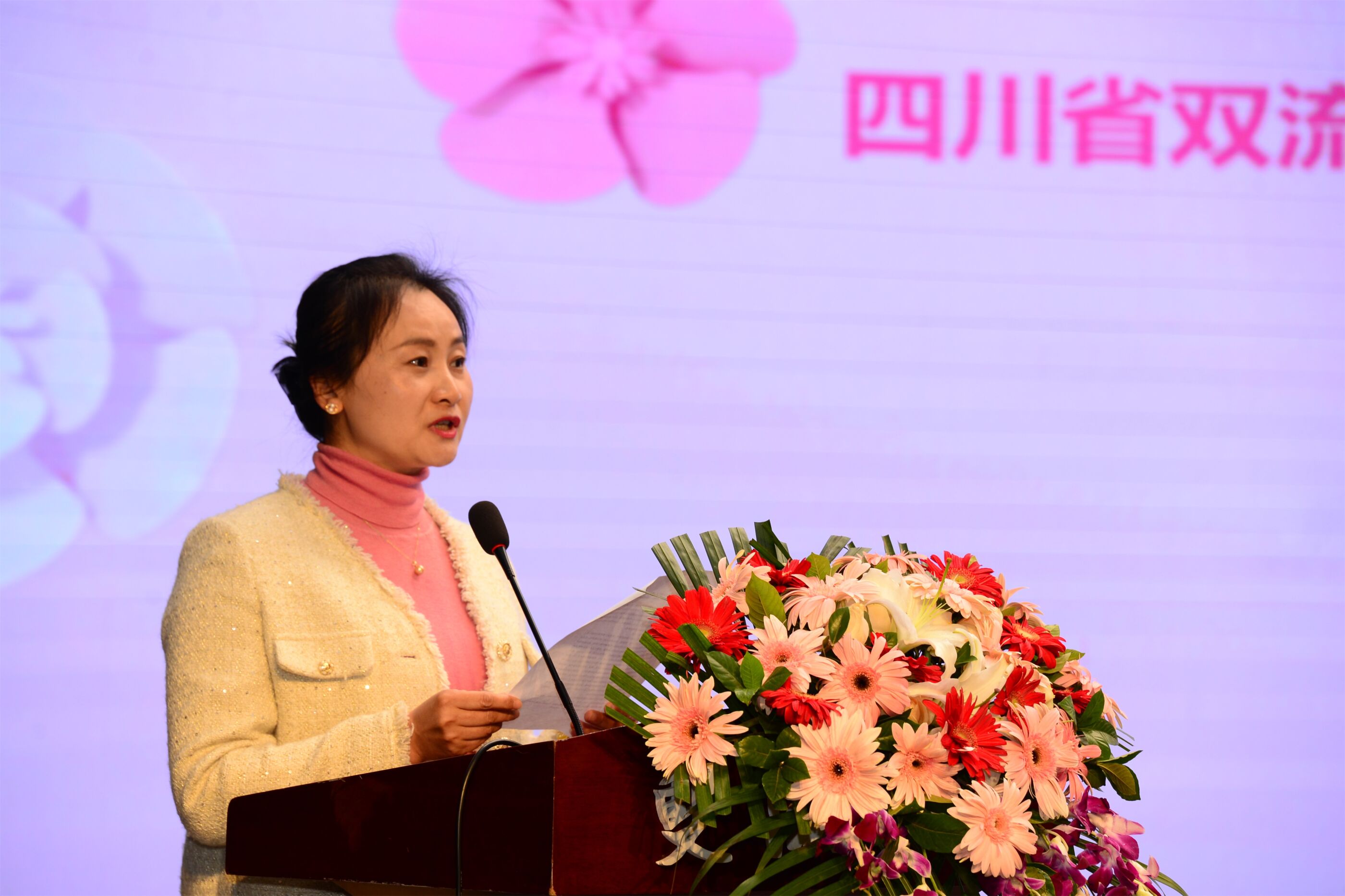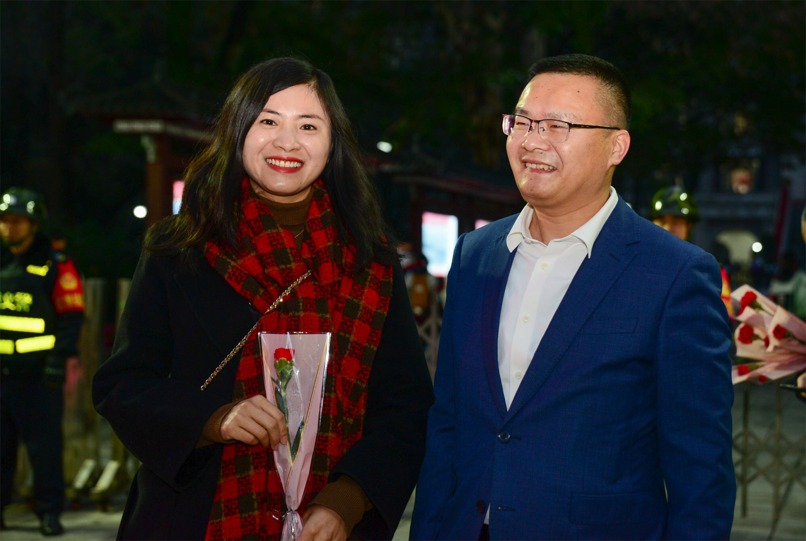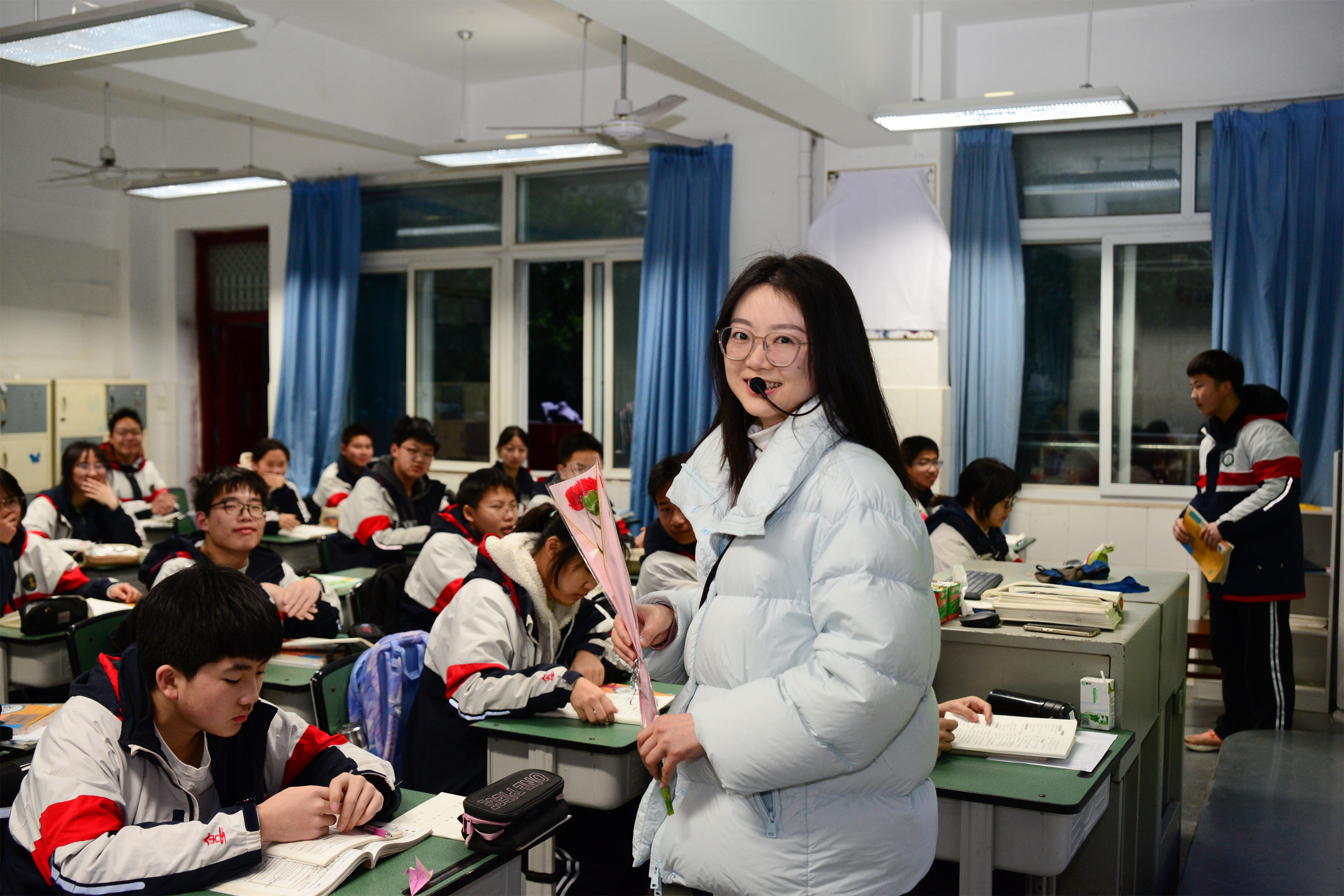 雙流中學(xué)副校長(zhǎng)杜江濤為女教師送花