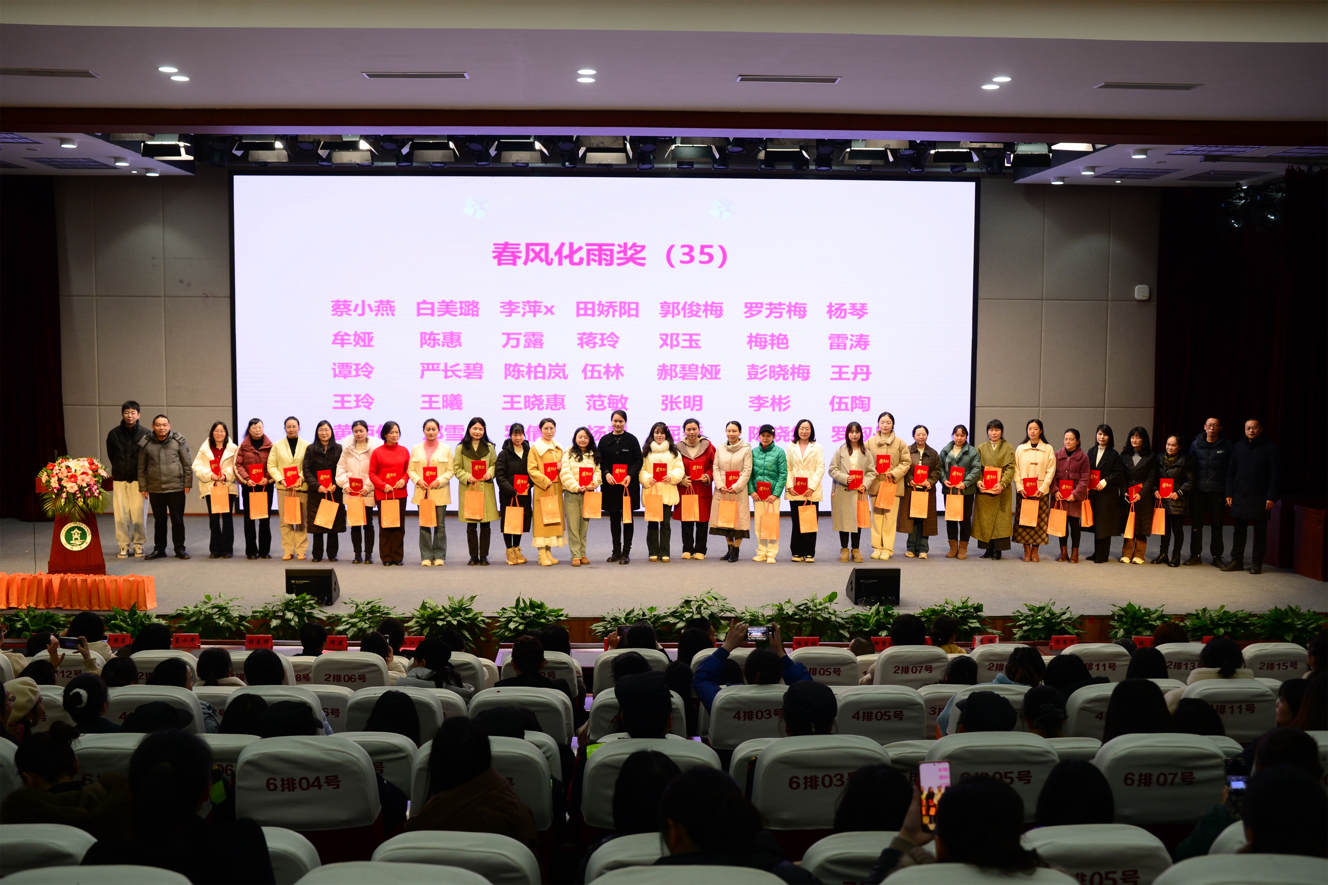 下午3點(diǎn),玉蘭廳內(nèi)掌聲如潮,“巾幗文明崗”優(yōu)秀代表表彰儀式開啟。聚光燈下,女教職工代表們依次登臺(tái),接過(guò)榮譽(yù)證書。她們是三尺講臺(tái)的耕耘者,亦是教育創(chuàng)新的引領(lǐng)者。希望她們?cè)诟髯詬徫簧侠^續(xù)發(fā)光發(fā)熱,展現(xiàn)新時(shí)代女性的卓越風(fēng)采。