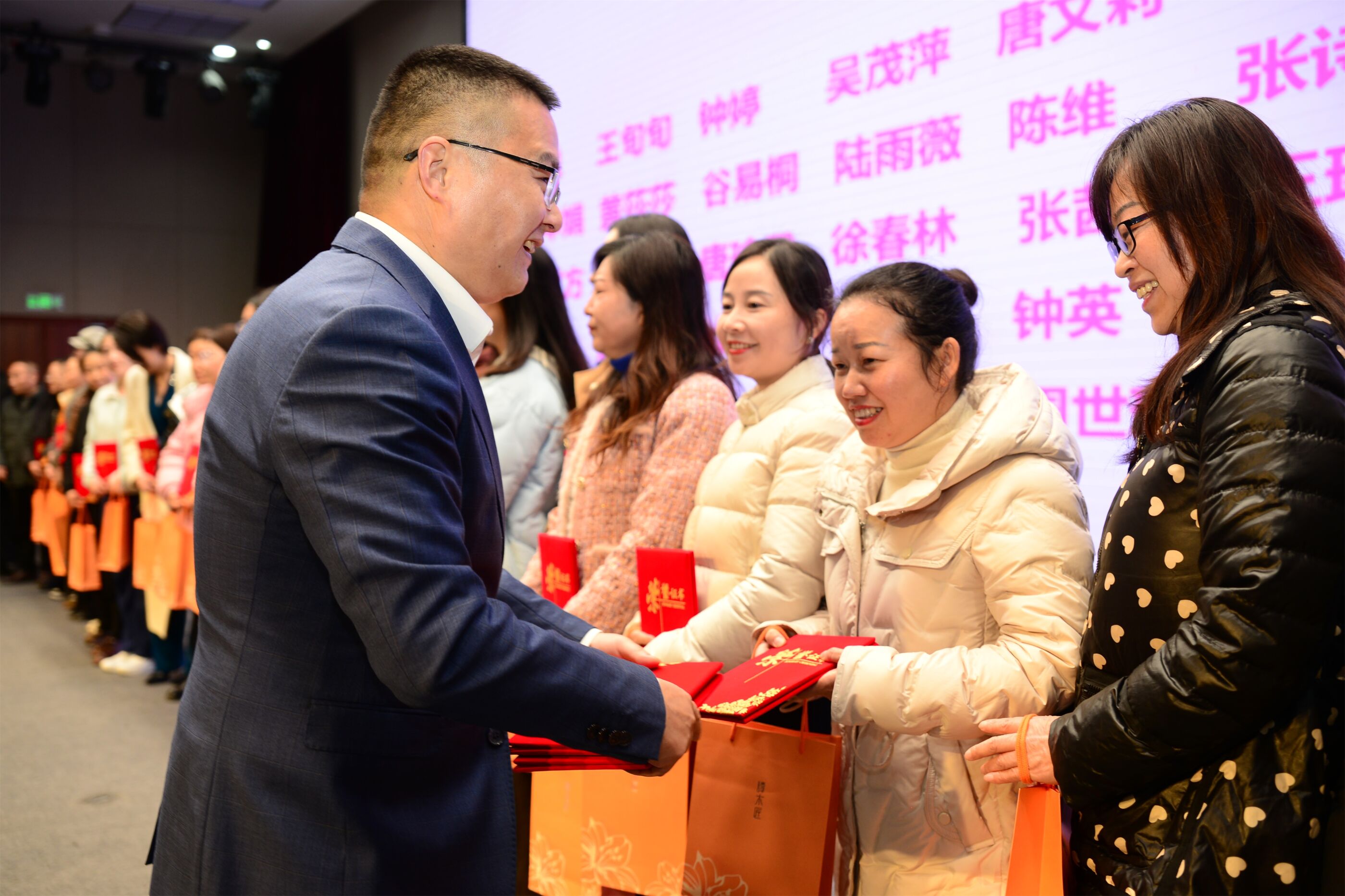 流中學(xué)黨委書記黃超為女教職工頒發(fā)榮譽(yù)證書