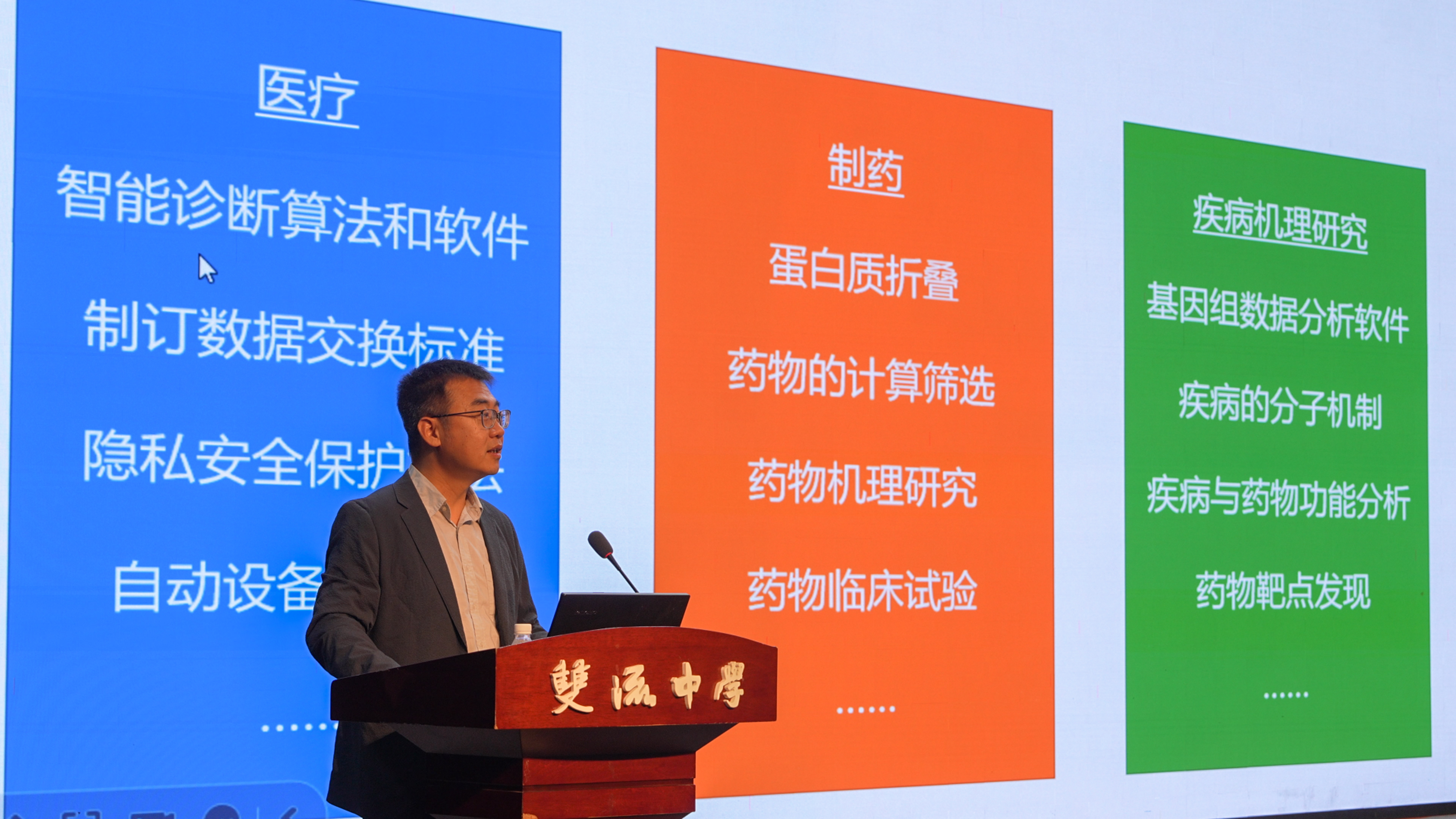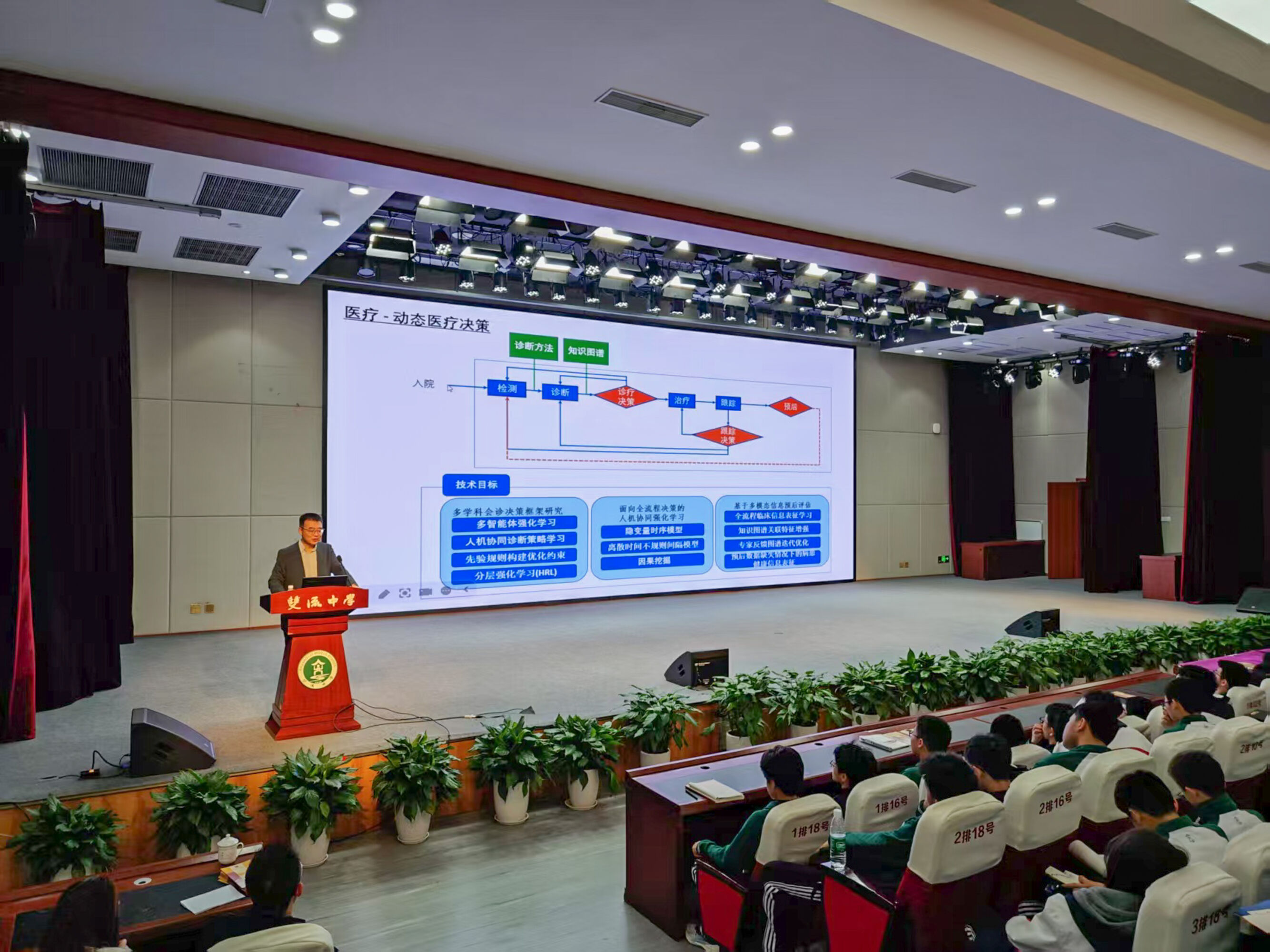 講座中,于教授以生物領域人工智能應用為引,深入淺出講解人工智能理論,從 “智能的本質(zhì)” 切入,梳理其發(fā)展脈絡,借醫(yī)療影像診斷、藥物研發(fā)等實例,直觀呈現(xiàn)科技為醫(yī)療行業(yè)帶來的變革。他進一步闡述數(shù)據(jù)科學家在醫(yī)療領域的關鍵作用,涵蓋疾病研究、算法開發(fā)等多個環(huán)節(jié),并深入解讀動態(tài)醫(yī)療決策前沿技術,展現(xiàn)智慧醫(yī)療的無限潛力。