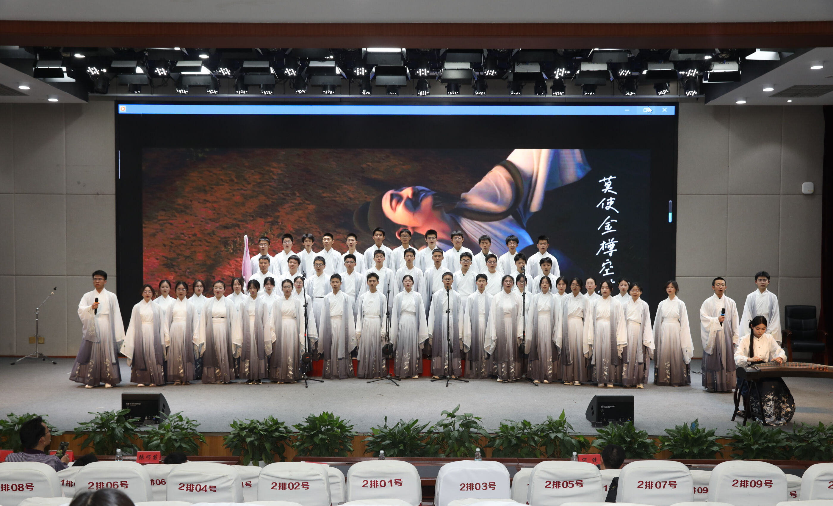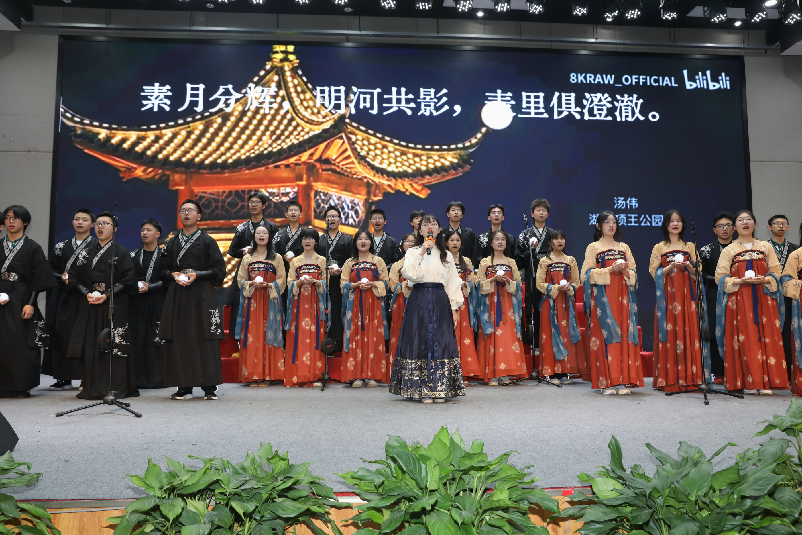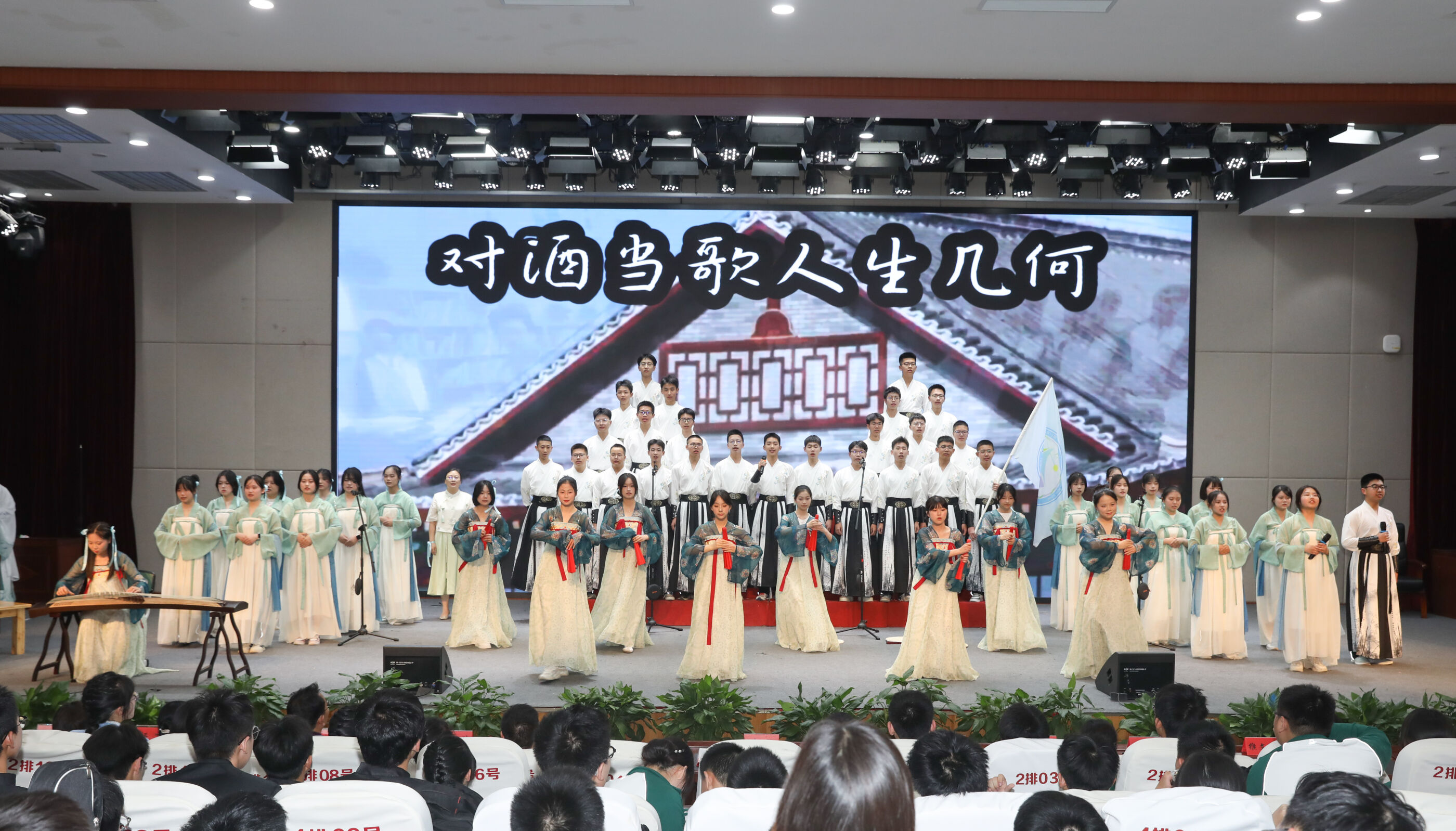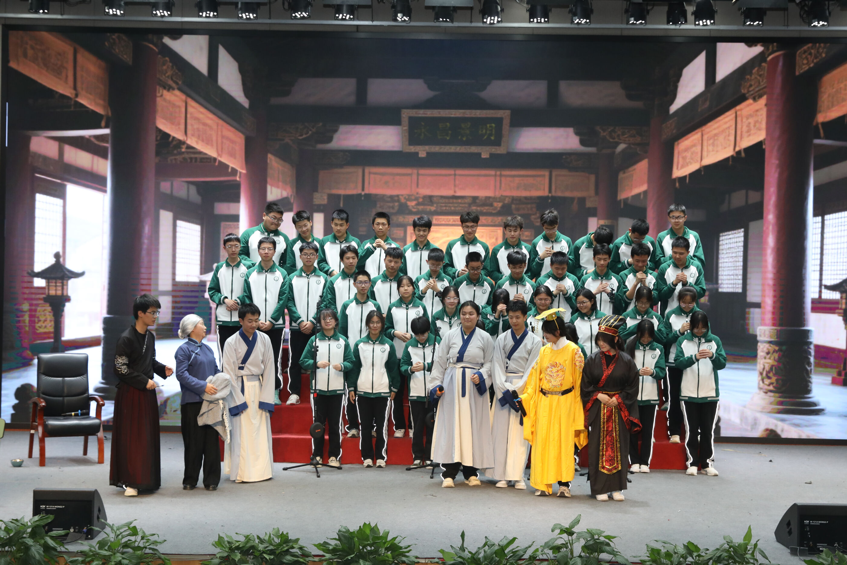 青衿學(xué)子聚華堂,瑯瑯聲里溯流光。少年們以聲為舟,以情為楫,溯流而上,展開一場跨越千年的文化對話。金樽對月,《將進(jìn)酒》的豪情在少年鏗鏘的誦讀中激蕩云天;鞠躬盡瘁,《出師表》的赤誠隨抑揚(yáng)頓挫的字句叩擊心扉。苔痕草色,《陋室銘》的一室清輝映照千古德馨;琵琶弦動,《琵琶行》的江州月色隨婉轉(zhuǎn)聲韻浸濕青衫……少年們或峨冠博帶,或素衣翩翩,以鏗鏘之聲、婉轉(zhuǎn)之韻,將千年文脈娓娓道來,精彩展現(xiàn)了中華古詩詞之美,用創(chuàng)新詮釋了傳統(tǒng)文化的永恒魅力。臺下師生凝神靜聽,時而為慷慨陳詞熱血沸騰,時而因纏綿詞句沉醉動容。這一刻,經(jīng)典不再是泛黃的書頁,而是流淌在少年血脈中的文化基因。