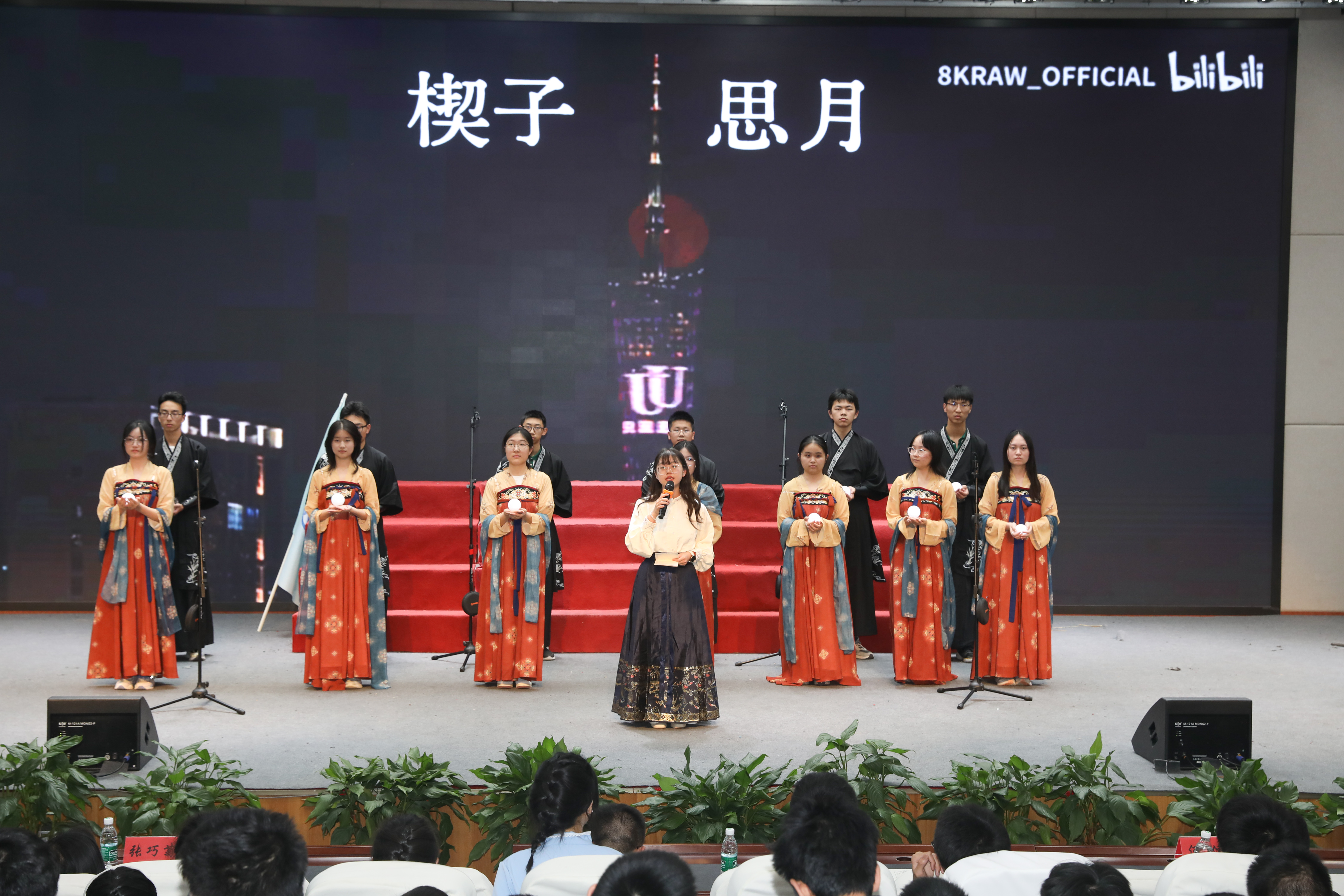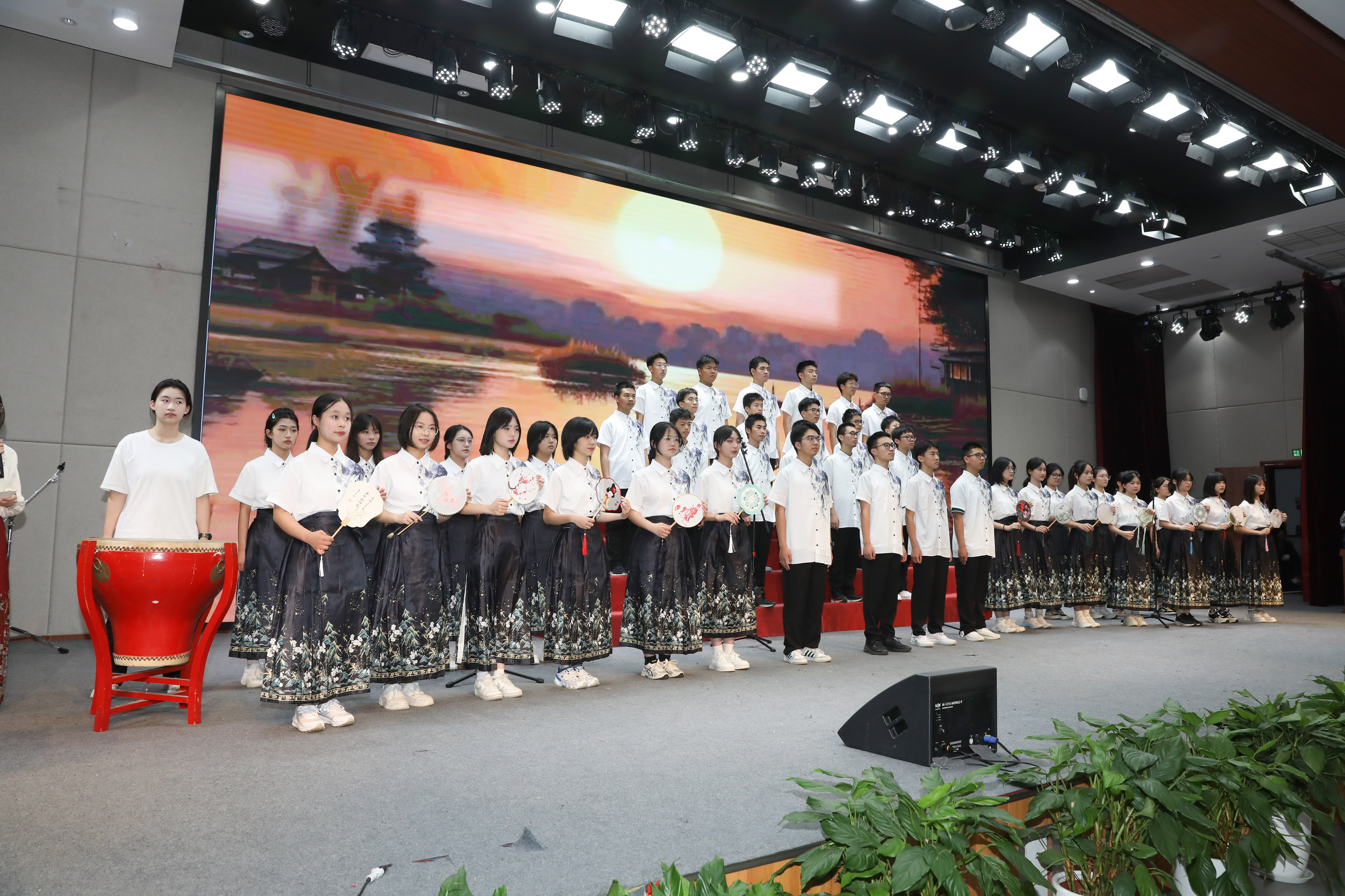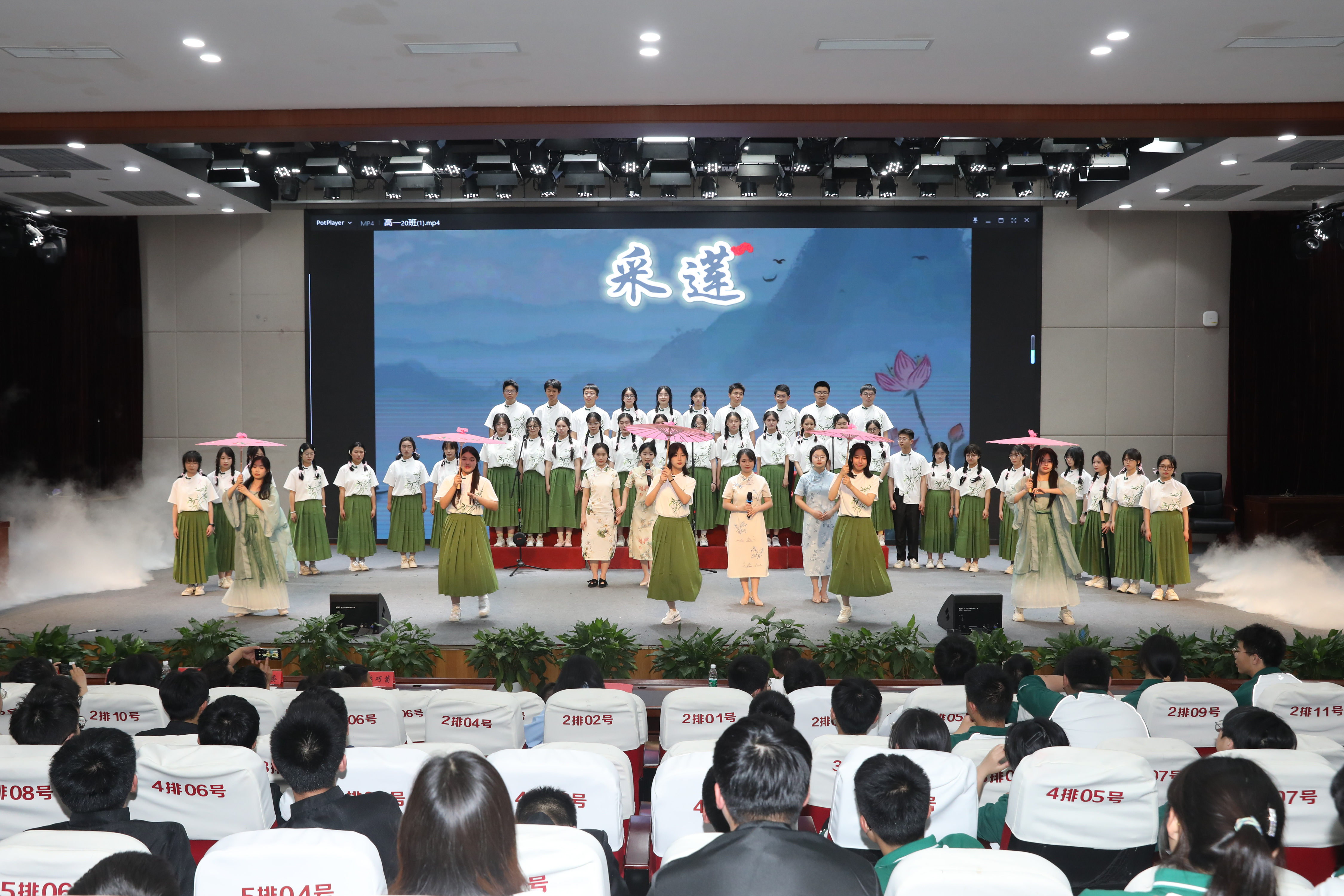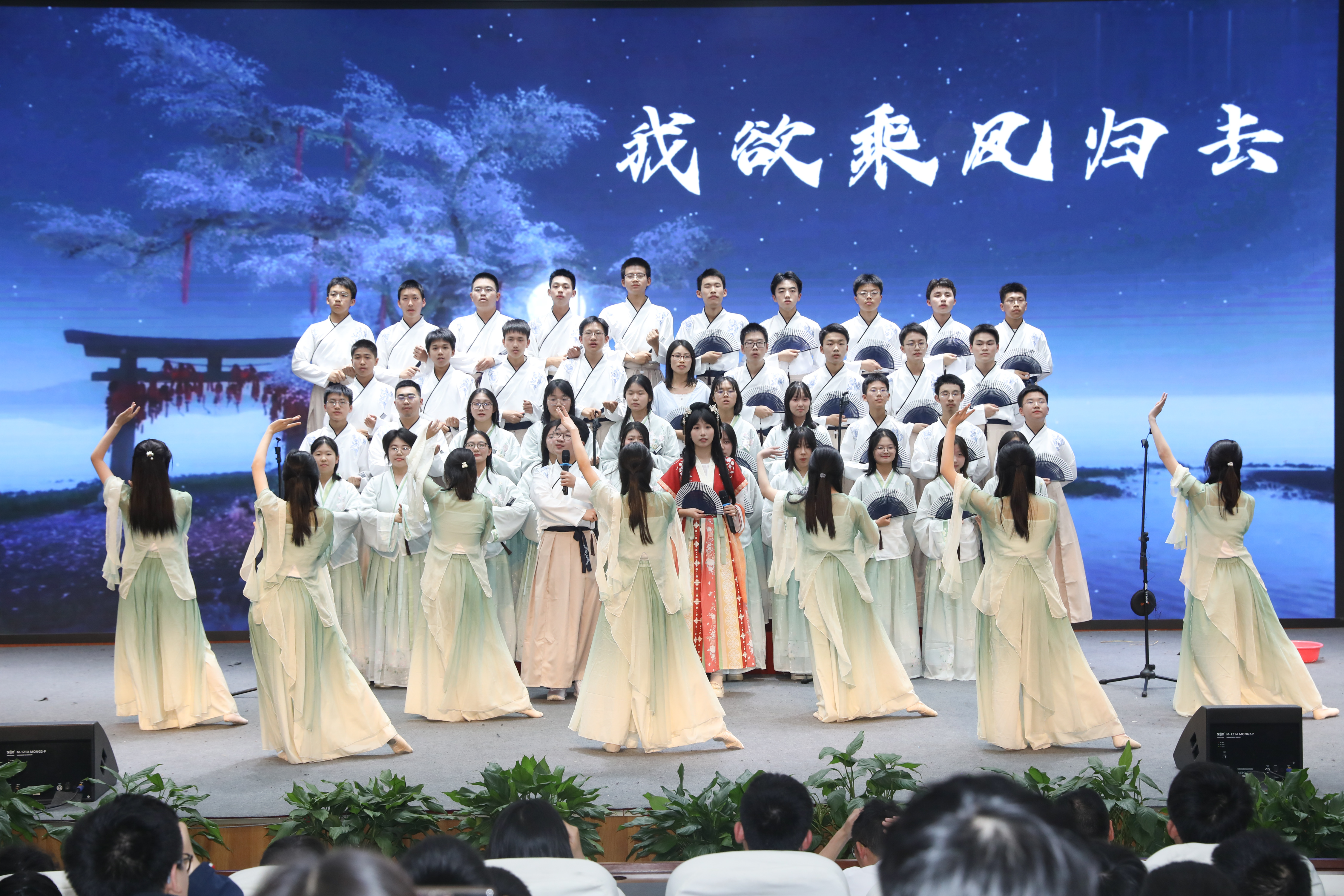 青衿學(xué)子聚華堂,瑯瑯聲里溯流光。少年們以聲為舟,以情為楫,溯流而上,展開一場跨越千年的文化對話。金樽對月,《將進(jìn)酒》的豪情在少年鏗鏘的誦讀中激蕩云天;鞠躬盡瘁,《出師表》的赤誠隨抑揚(yáng)頓挫的字句叩擊心扉。苔痕草色,《陋室銘》的一室清輝映照千古德馨;琵琶弦動,《琵琶行》的江州月色隨婉轉(zhuǎn)聲韻浸濕青衫……少年們或峨冠博帶,或素衣翩翩,以鏗鏘之聲、婉轉(zhuǎn)之韻,將千年文脈娓娓道來,精彩展現(xiàn)了中華古詩詞之美,用創(chuàng)新詮釋了傳統(tǒng)文化的永恒魅力。臺下師生凝神靜聽,時而為慷慨陳詞熱血沸騰,時而因纏綿詞句沉醉動容。這一刻,經(jīng)典不再是泛黃的書頁,而是流淌在少年血脈中的文化基因。