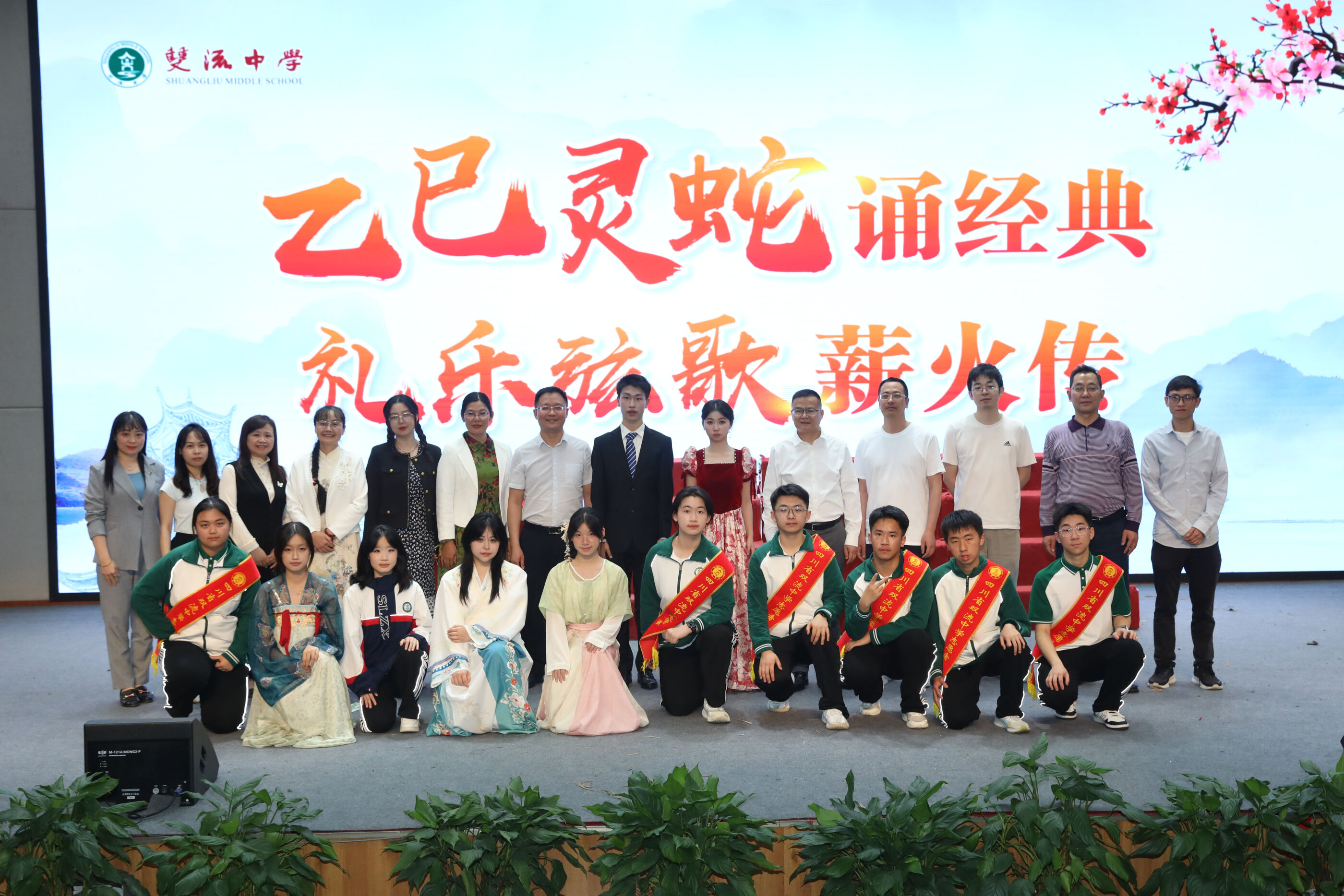為弘揚(yáng)民族文化,傳承華夏文明,落實立德樹人,踐行五育并舉,2025年4月28日晚,雙流中學(xué)高2024級在玉蘭廳舉行了以“乙巳靈蛇誦經(jīng)典,禮樂弦歌薪火傳”為主題的國學(xué)經(jīng)典朗誦比賽。此次比賽由校團(tuán)委和高一語文備課組精心組織和籌備,雙流中學(xué)黨委書記黃超,黨委副書記、副校長(主持行政工作)杜江濤,黨委副書記、副校長向發(fā)友,副校長張巧菊,德育安全處主任郝碧婭等行政及評委老師出席了本次活動。