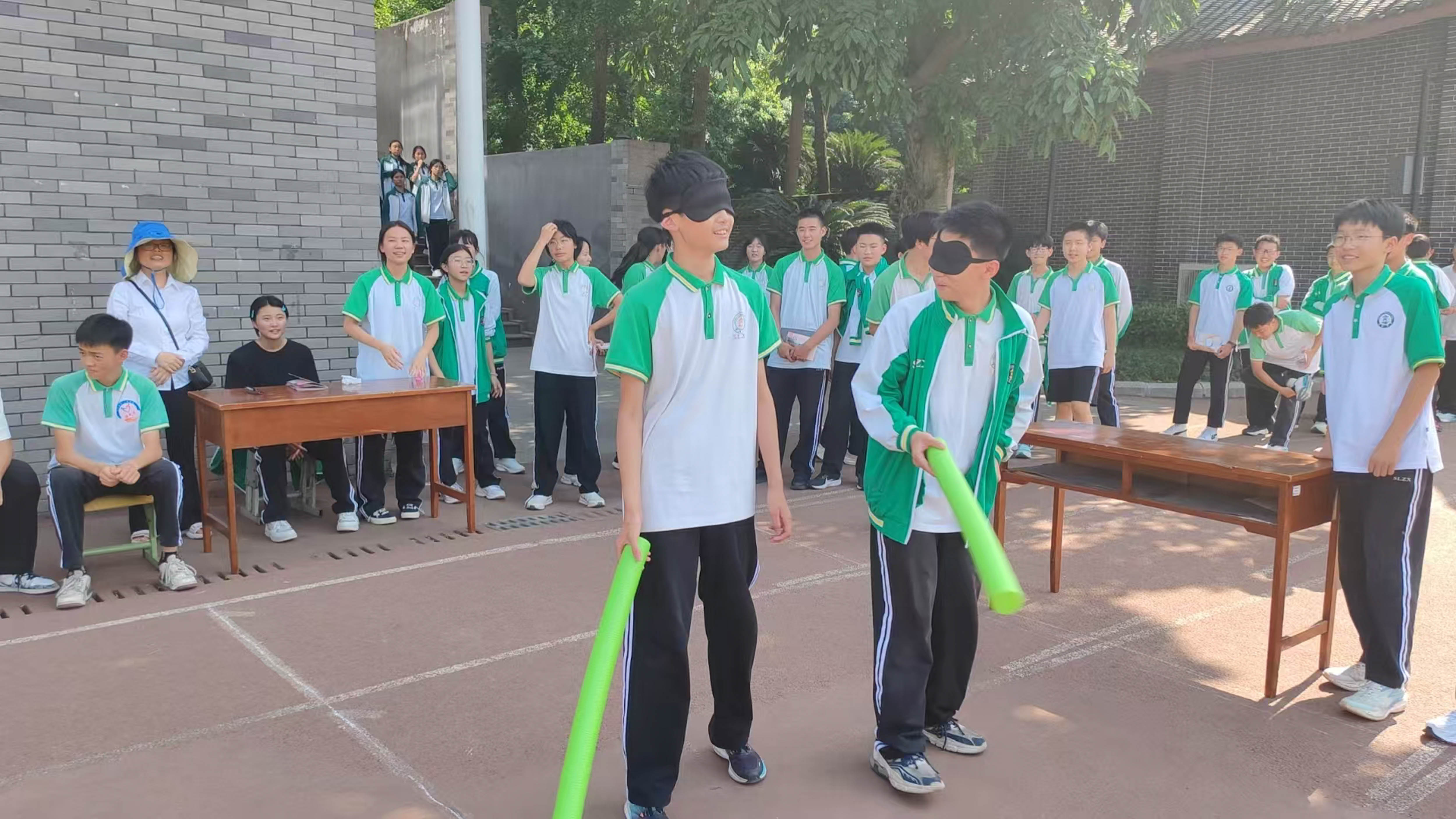 八年級和高二的同學(xué)們在“坐地起身”“搶凳子”“蒙眼大亂斗”等游戲里笑出眼淚。有人在“兩人三足”前駐足,邀請自己親愛的小伙伴共赴挑戰(zhàn),在不斷的調(diào)整中和伙伴達成默契合作;有人在“口是心非”攤位前,一步步陷入stroop小游戲的“陷阱”中。陽光、笑聲、彩色的氣球,組成了這個五月最治愈的畫面。